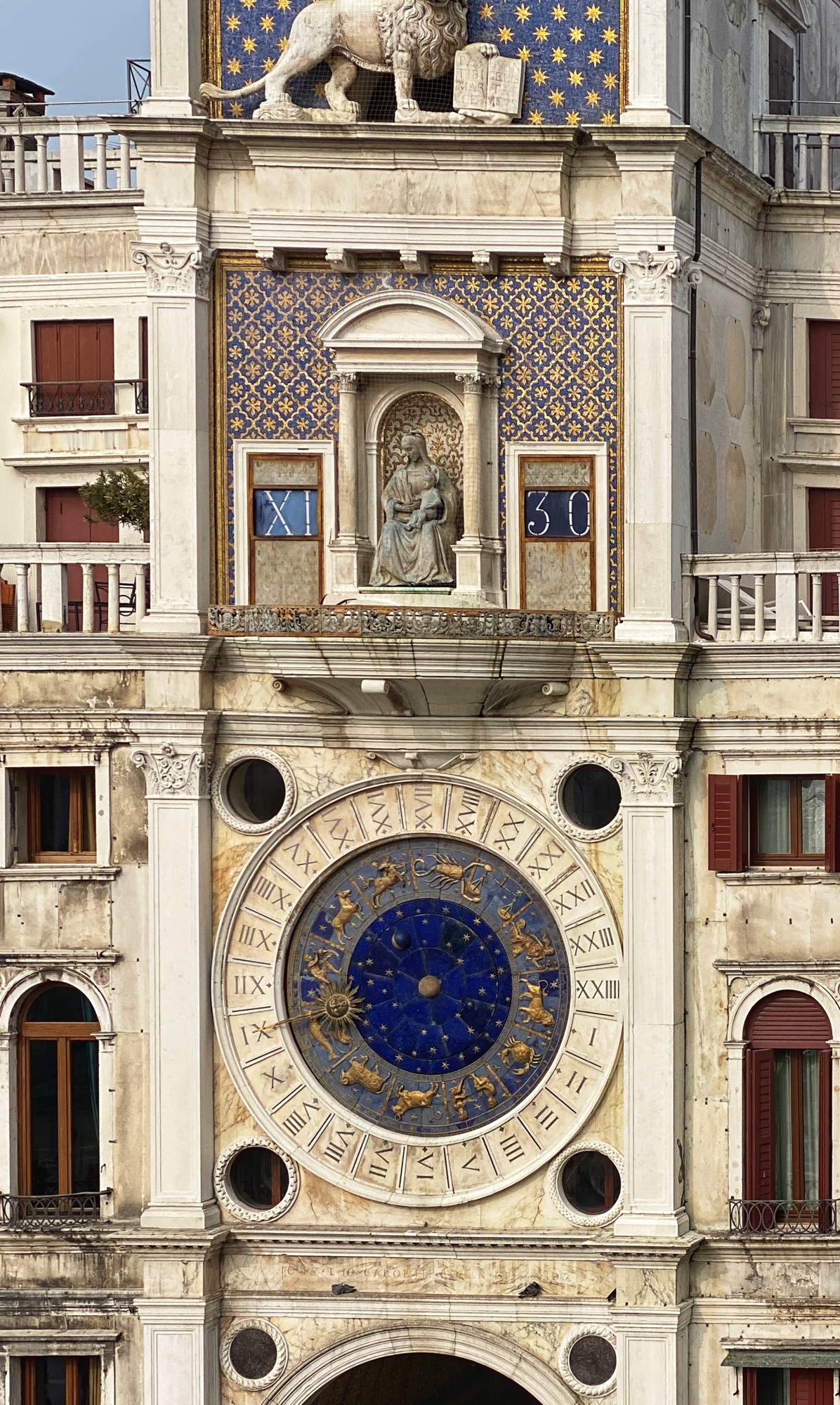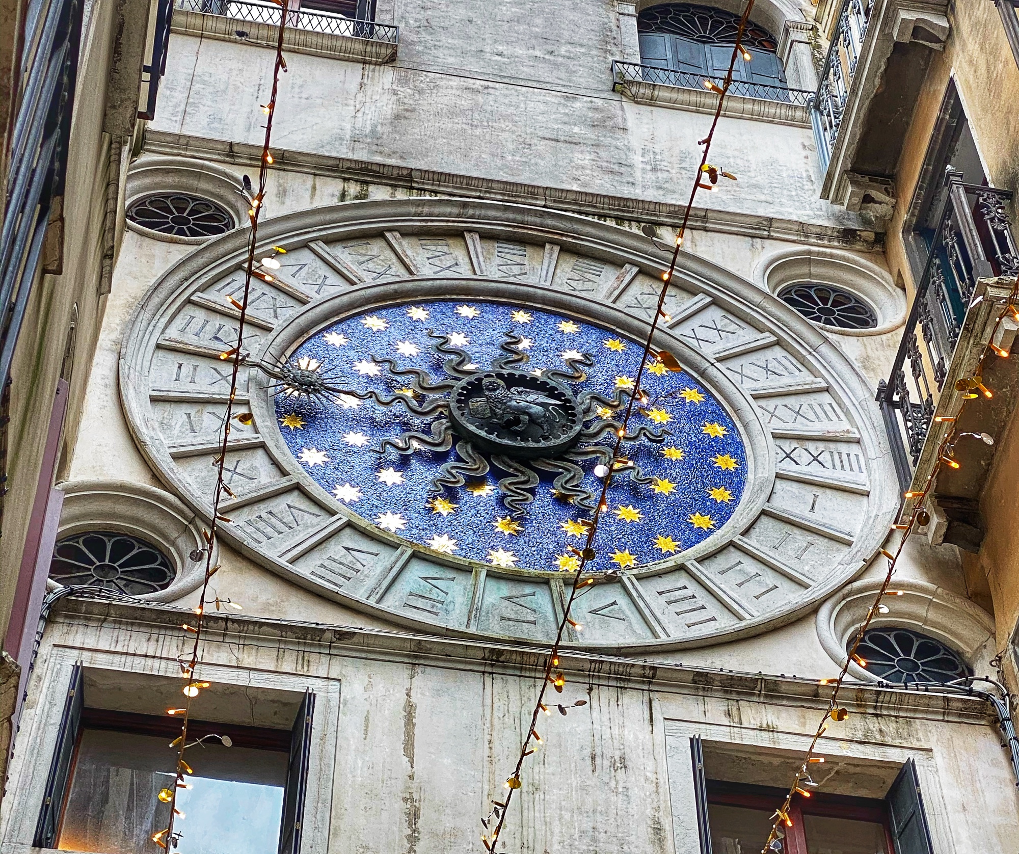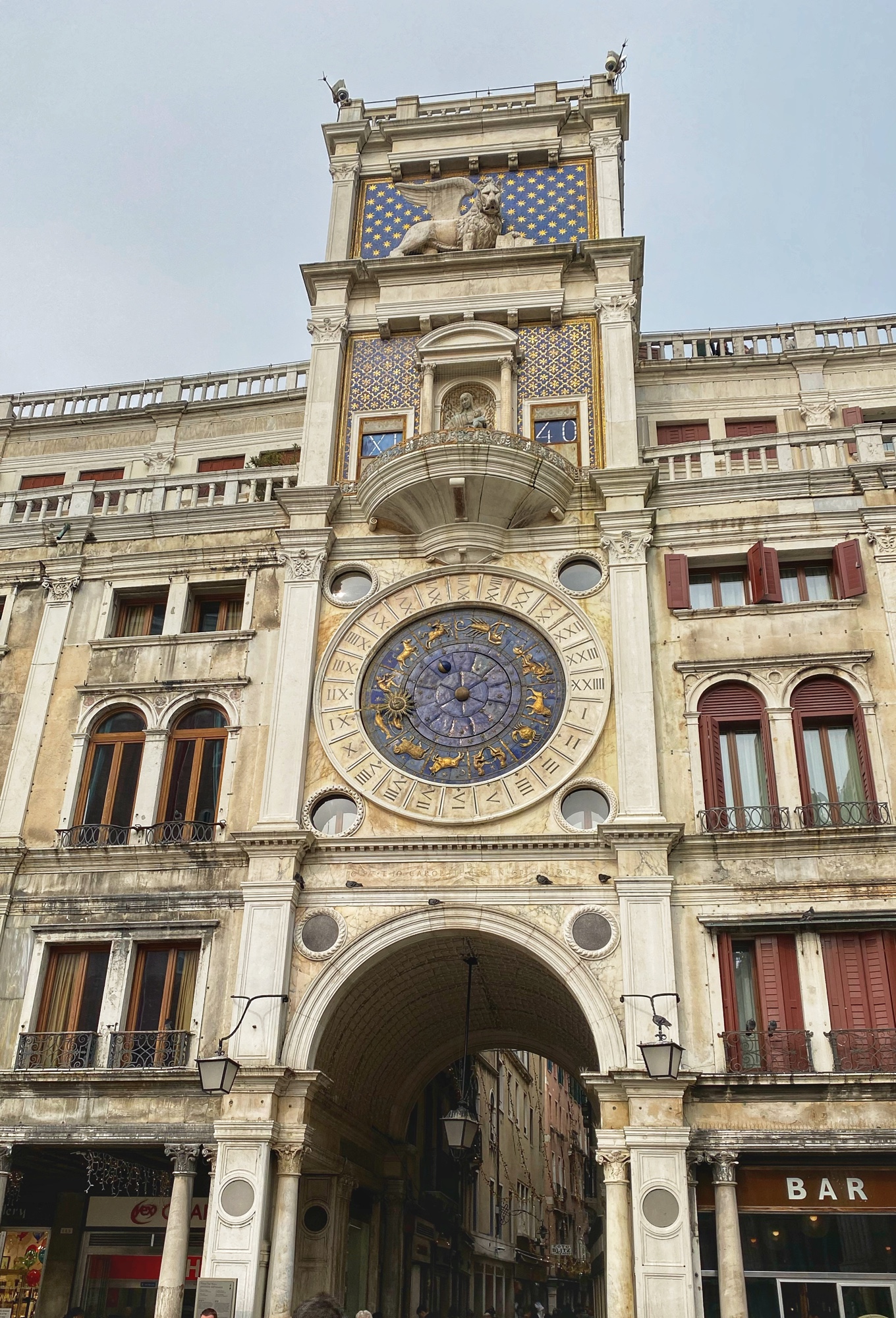 My favorite part of the square is the smaller tower with intricate celestial clock – Torre dell’Orologio. We all enjoyed a lovely view of St. Mark’s square from the outside Basilica terrace. Bro and cuz went up St. Mark’s Tower via elevator to get a bird’s eye view of the famous fish-shaped archipelago we call Venice. This is such a colorful place with mosaics everywhere, it was hard not to get a sinking feeling (pun intended) imagining the incredible works of art and architecture that would be destroyed in the next hundred years or so due to a slowly sinking city and the rising tides of climate change.