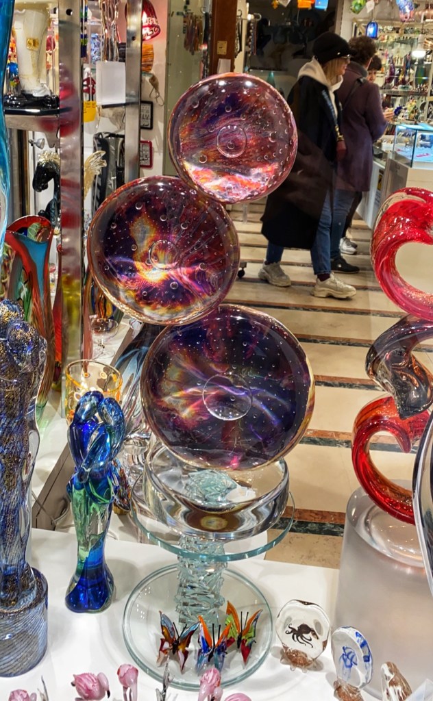 As the sun began to descend in the sky, we walked back to San Marco square and waited patiently for the water taxi to take us to Constitution Bridge and our bus back to the parking lot just outside of town. What a fun day in Venice we had – wandering narrow streets endlessly, smelling all sorts of smells, tasting yummy foods, and packing up terrific souvenirs.