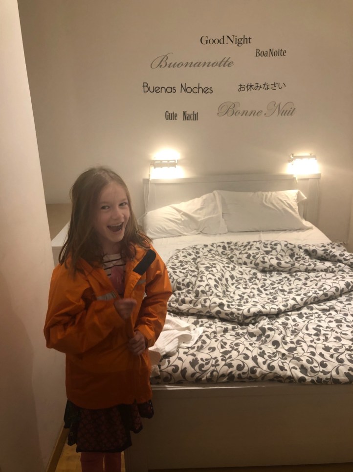 Thanks to a friend who clued me into the “Rick Steves’ approved” suggestion of parking for free in Orvieto and taking the train into the city, it was a no-brainer. We found a lovely place to stay (here), where our view from the bathroom was the ancient skyline of Orvieto, and made our way into town. Our host Giulio was quite possibly the most generous and friendly host we have ever had at an apartment. He didn’t speak much English, but we communicated well with google translate. We expected to park in the free parking lot and take the funicular up into town, but instead he insisted we follow him to HIS private, gate-controlled parking spot right on the side of the hill, where he gave us his key card and even guided through town for a bit. He was so sweet – he even took us to the train station in the morning to make sure we made it on time to the right train to Rome. He certainly went above and beyond. This Orvieto option ended up saving us valuable time and money as well as the convenience of not having to have a vehicle in the depths of Rome. Plus the kids got to ride the train – a great experience for them!