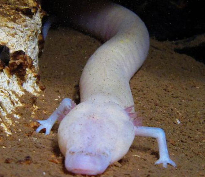Unlike the salamander, it is entirely aquatic, and is a cave-dwelling-only amphibian that resembles a short snake with very underdeveloped, almost useless legs. The proteus evolved to live inside of caves, and is therefore a very unique animal. It can grow up to 16″ long, has three toes on its front feet and two toes on its back, and can barely see as it is used to the darkness of caves. They rarely move, unless mating or eating, and are tricky to spot! The proteus (olm) has no pigment in it’s skin, and has evolved to endure long periods without food – in some cases up to 10 years! It is estimated that they can live up to 100 years, but most live to their mid 60’s. They are an incredible animal, and also very rare, so they are protected in Slovenia and other cave systems in Europe. We all thought they were kind of cute.
