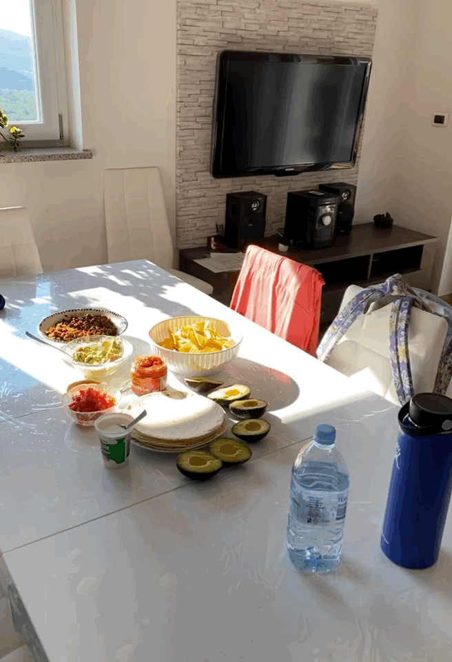 On the way back to the apartment we stopped again at the grocery store, and this time got stuff to make tacos. Man, after the long day at the beach and all that walking, those tacos sure tasted delicious!