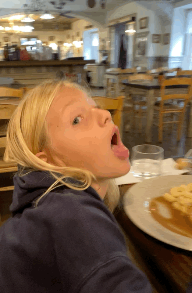 It was clear that just past our spot was the nude section of the beach, so the girls followed suit and went with half their swimsuits too! We let the day linger on, again with snacks and bakery items to tide us over, and relaxed until mid afternoon.