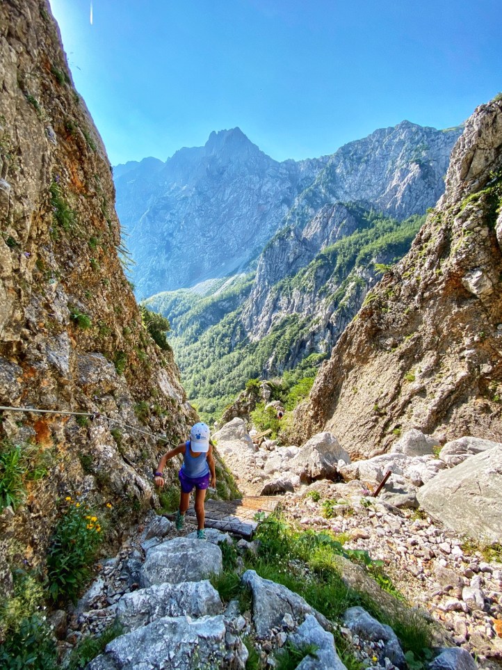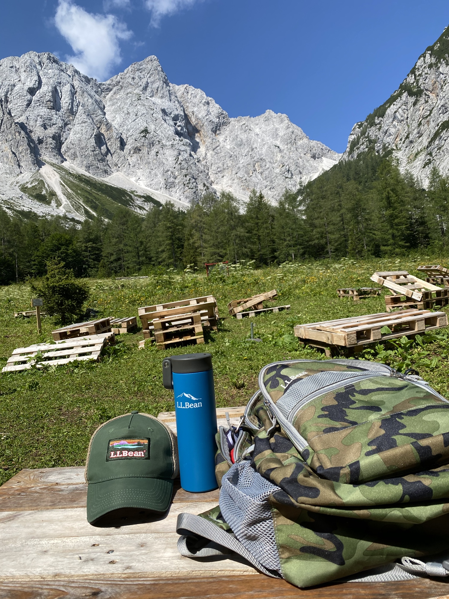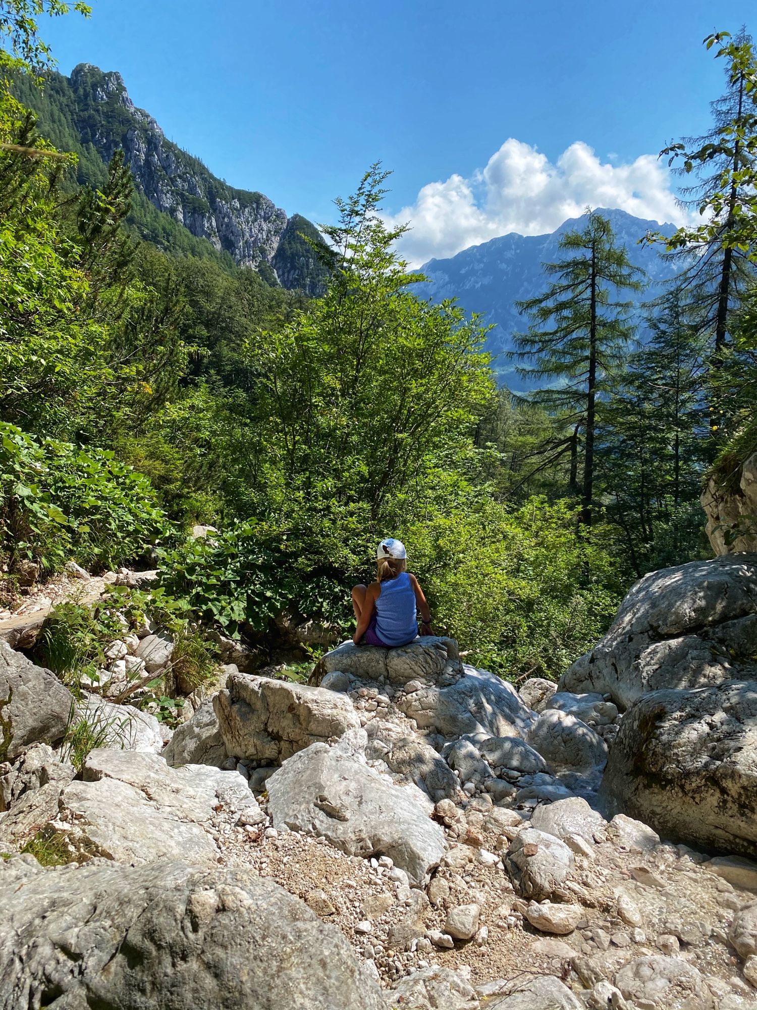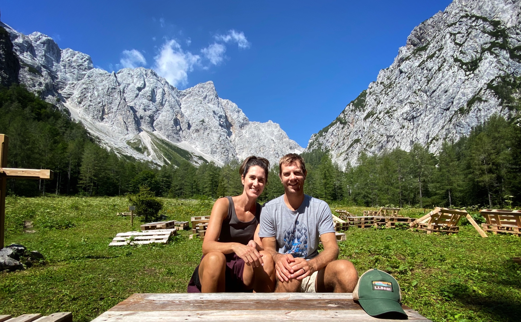 We made it to our little apartment in nearby Solčava on the Juričef river, and were immediately charmed. Nestled in the mountains, this little apartment was situated right on the river, with several little waterfalls rushing right outside our windows and making the most glorious sound! We didn’t need our sound machines thanks to the sound of the water. Our hosts even made a beautiful meal for us of fresh grilled whole fish and squid one of the nights – fantastic. By the time we got to the valley we were pretty pooped from our morning swimming in Lake Bled, a detour through Ljubljana for tacos, and the road trip in general, so we were content just hanging out with the goats in the backyard of the apartment and getting good rest for the big hike the next day.
