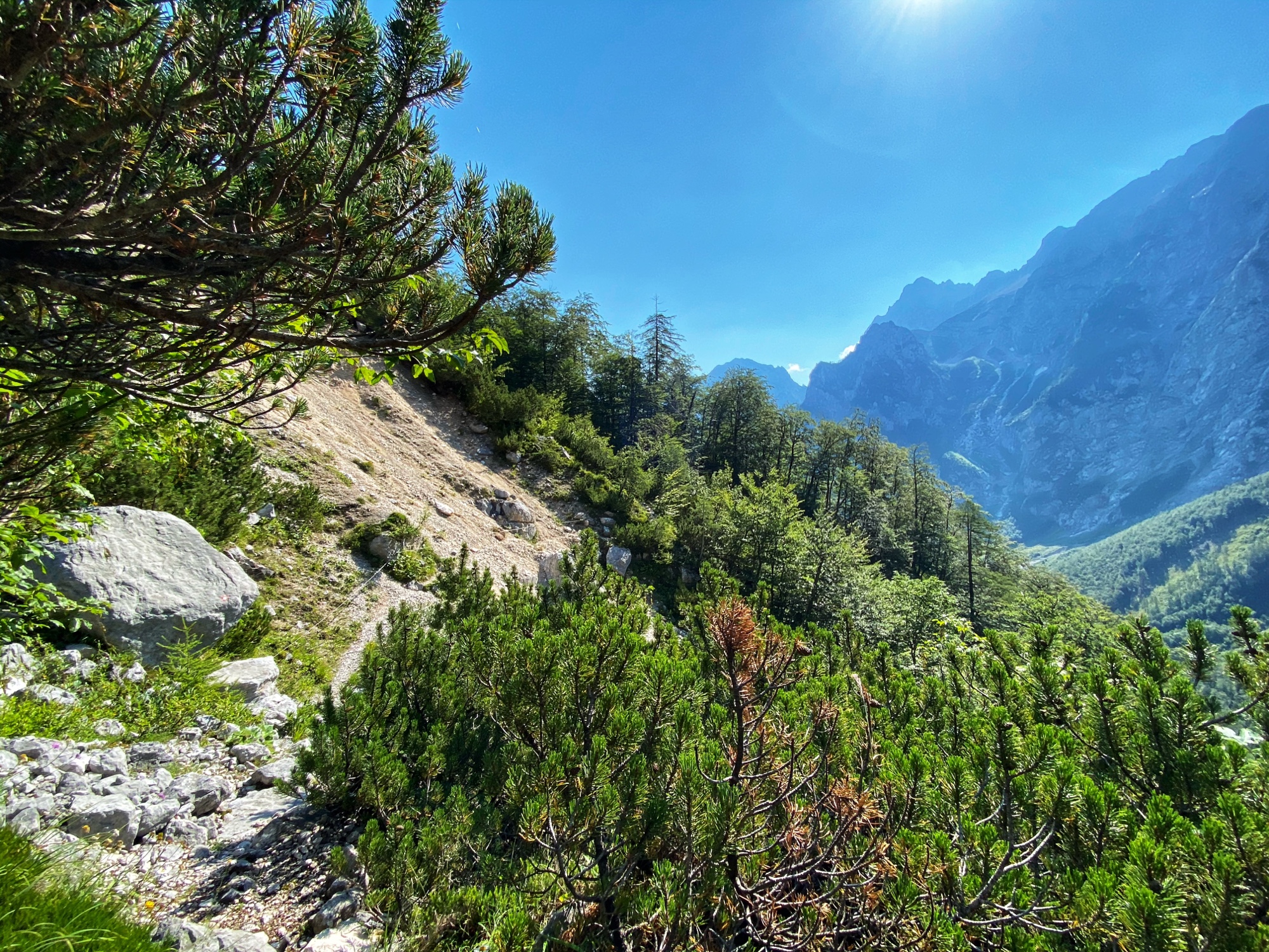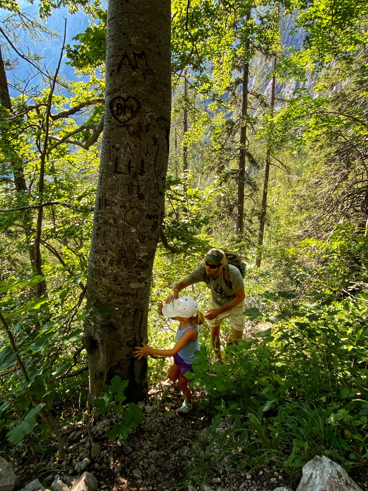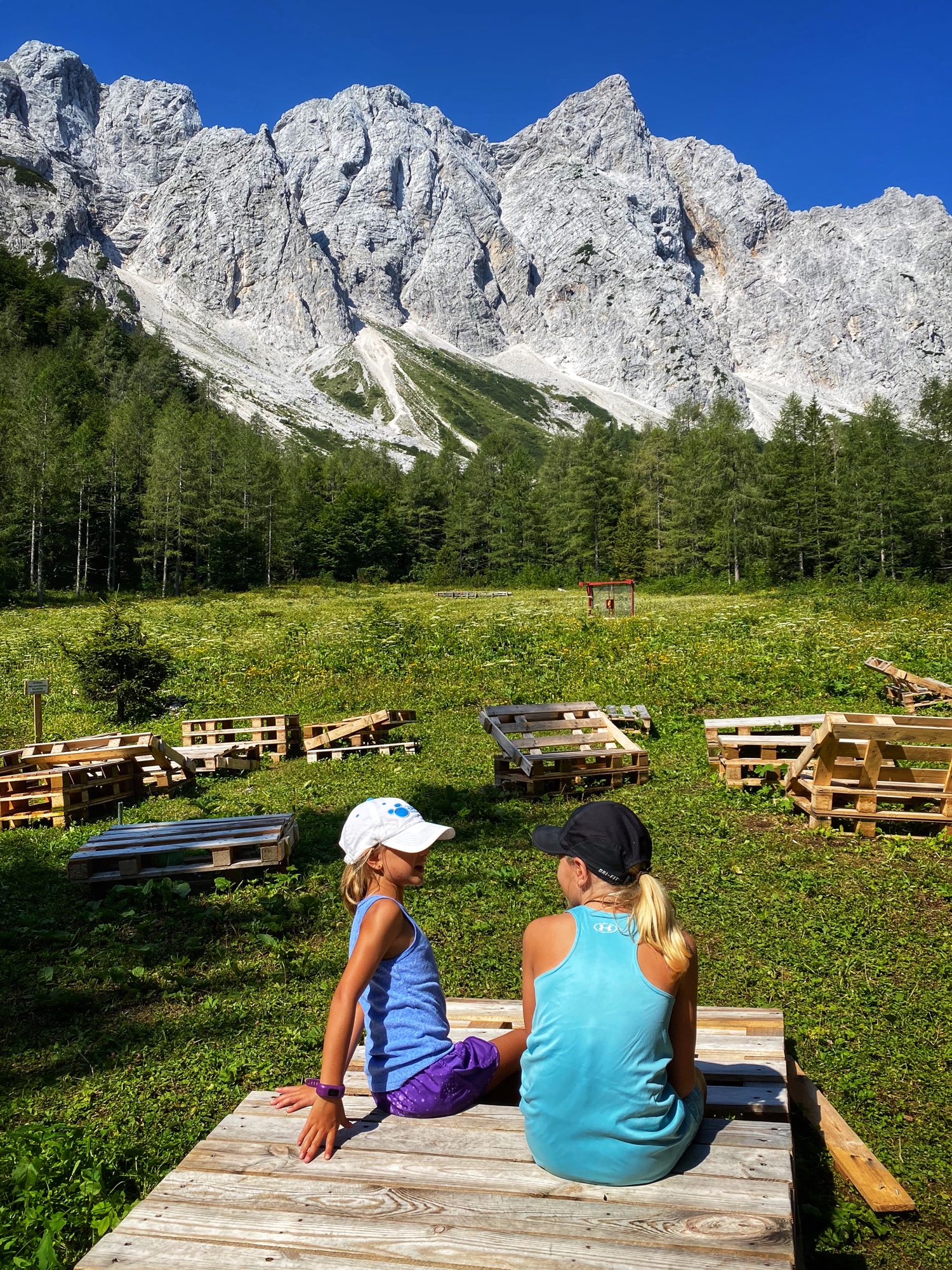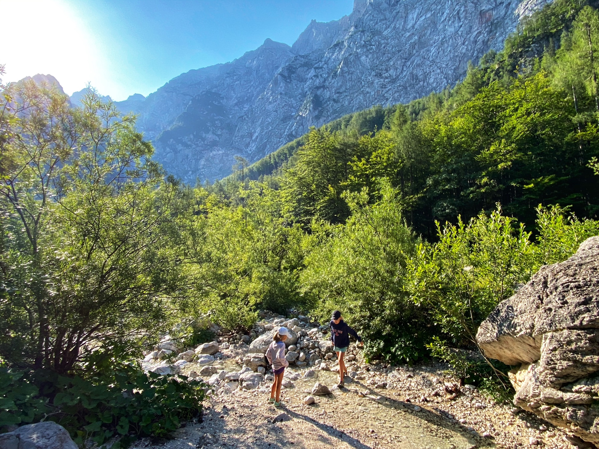 I’m not positive, but I think the point we decided to stop was this valley here. As we looked at the map, we realized it was going to take too long to get to our original destination at Kaminška saddle lodge, one of the most beautiful alpine valleys in Slovenia. With wobbly legs, we decided this was far enough. The kids were pretty spent at that point, and we still needed to hike down, so we played it safe. Maybe when they’re older we’ll make the all day trek to the top! Regardless, this was a really fun and positively gorgeous hike that we highly recommend! It took us almost 2 hours to get to the valley from the parking lot, but that includes time to stop at the waterfall and plenty of breaks as we climbed up the mountain to the valley rest stop.