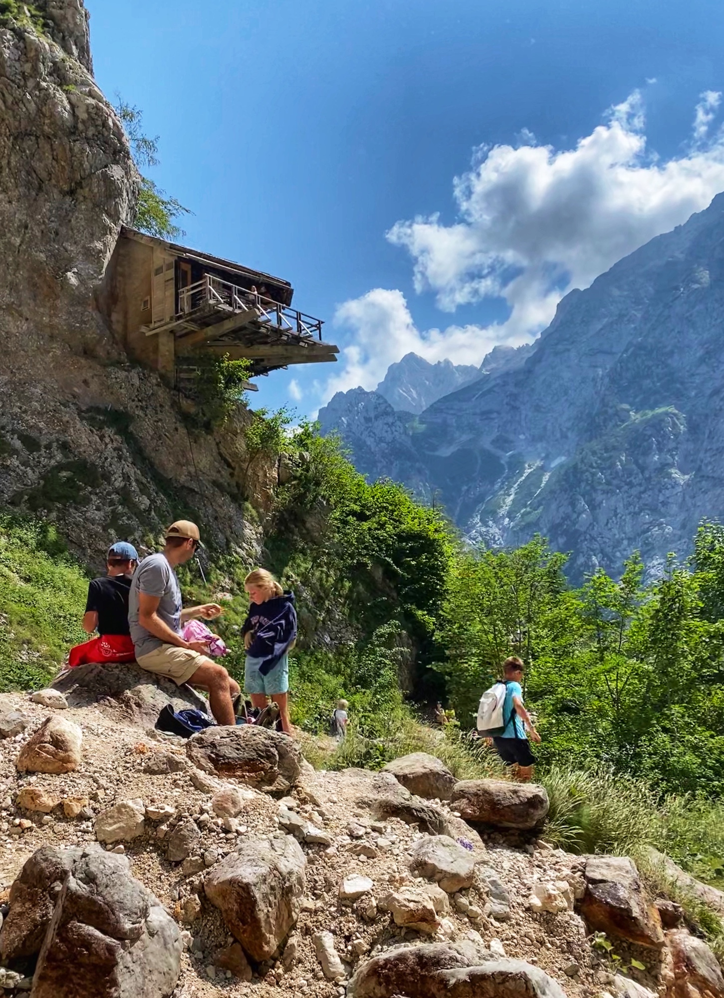 This incredible waterfall sits at one end of the Logar Valley and is worth the visit just for this short hike and views of the slap and surrounding Kamnik mountain range. This is also a fairly easy hike (to the falls) and once you get there, the steep steps up to the viewing lodge will take your breath away! As usual, we were among the first to arrive (smart move if you are trying to avoid crowds) so we had the trails and “treehouse cabin,” as the kids called it, all to ourselves.