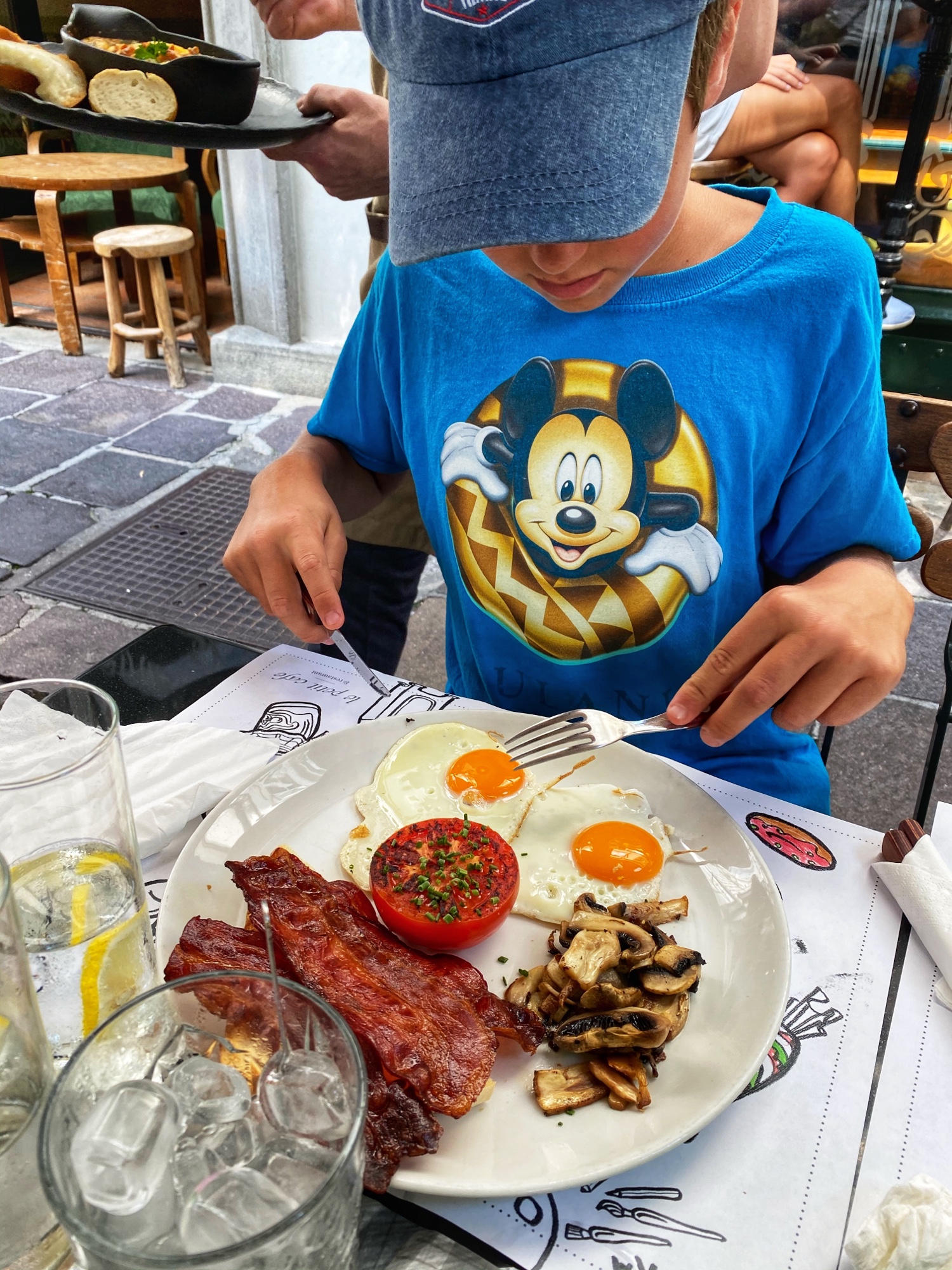 We would’ve loved to explore more in Celje, but the weather just wasn’t cooperating. We went to dinner at Koper Spageterija & Pizzeria, a cute little brick oven place downtown. It was a decent meal, and a fun place to reflect on our super fun time in Slovenia. We were heading home the next day, so we asked the kids what their favorite parts of the trip were. Big bro said he loved swimming in the lakes, sis loved hiking behind the waterfall and the castles, and little sis said she preferred our days at Lake Bohinj. I loved our mountain hikes and the cave, and daddy’s favorite was of course Lake Bohinj.