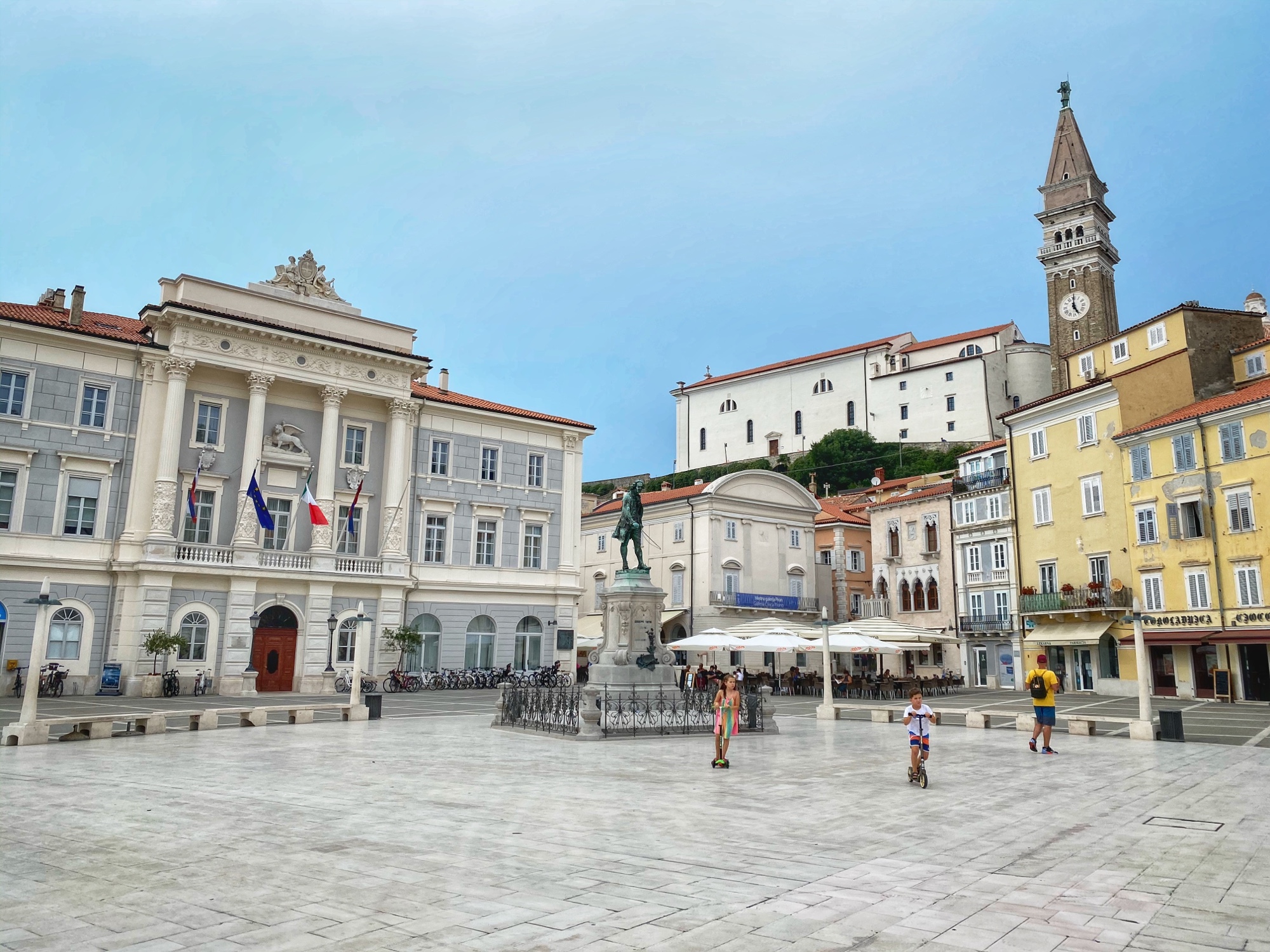 From our detour in Ljubljana, we took our full bellies to the coast. We checked into our next apartment, this time in Črni Kal at apartment Čeh, and dropped off Bonsai so we could continue onto Piran. We highly recommend the apartment – the price was great, it was new, clean and very spacious, and the views were terrific.
