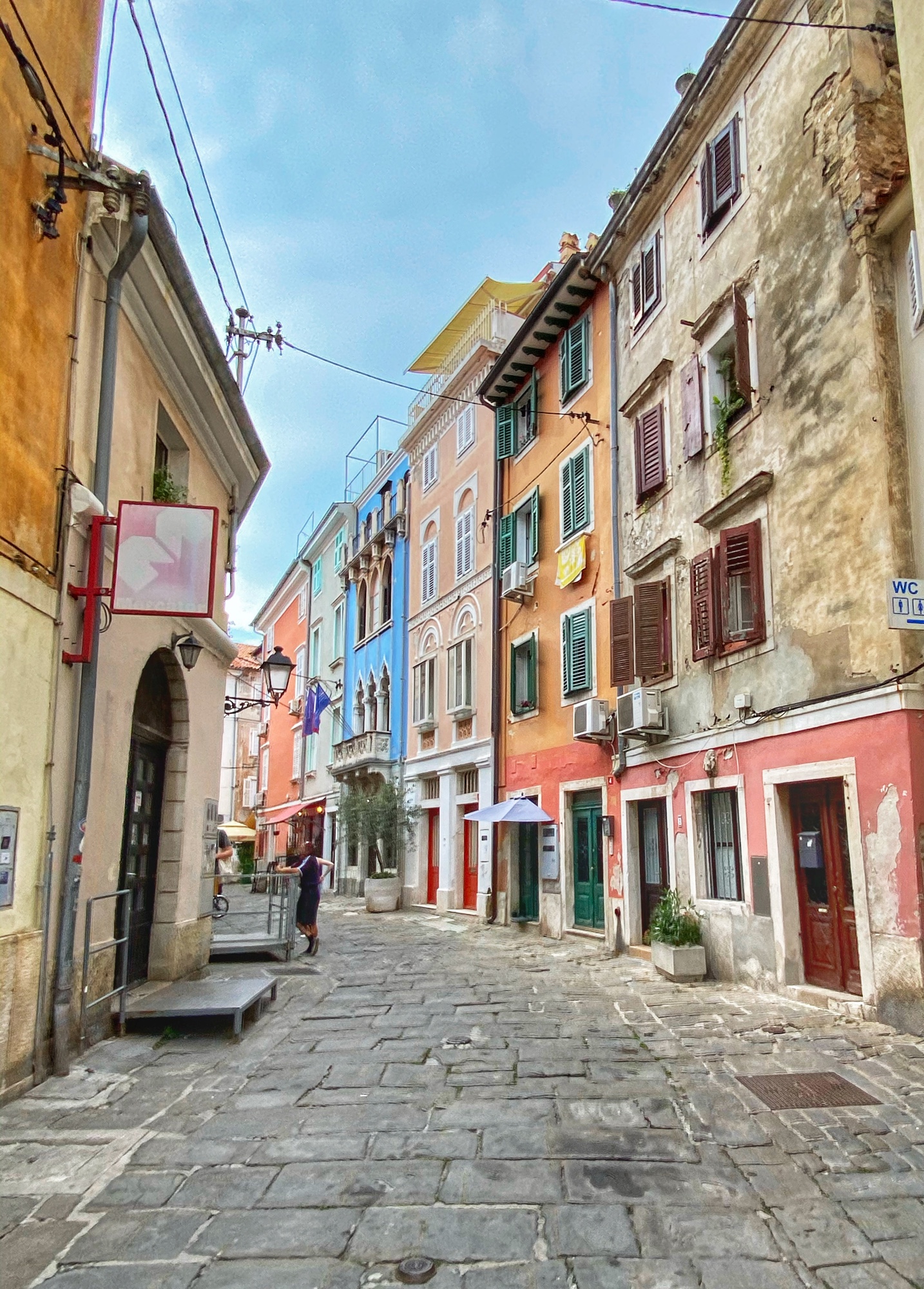 We hadn’t heard much about Piran, but we had an idea it might be similar to some of the other coastal towns along the Adriatic. The coastline of Slovenia is very short – only about 29 miles long – but it has several cities and plenty of areas for swimmers. When we arrived and miraculously found a parking spot (hint: there’s not much parking available, and summertime is busy here), we started walking down through town to the coast. We realized quickly this place doesn’t really compare to Zadar, Split, Hvar, or any of the other Croatian waterside cities we have visited. Instead, Piran seemed tired, and on the grungy side. Walking the maze of streets (and the smell) actually reminded us a little bit of Venice, but not as clean.