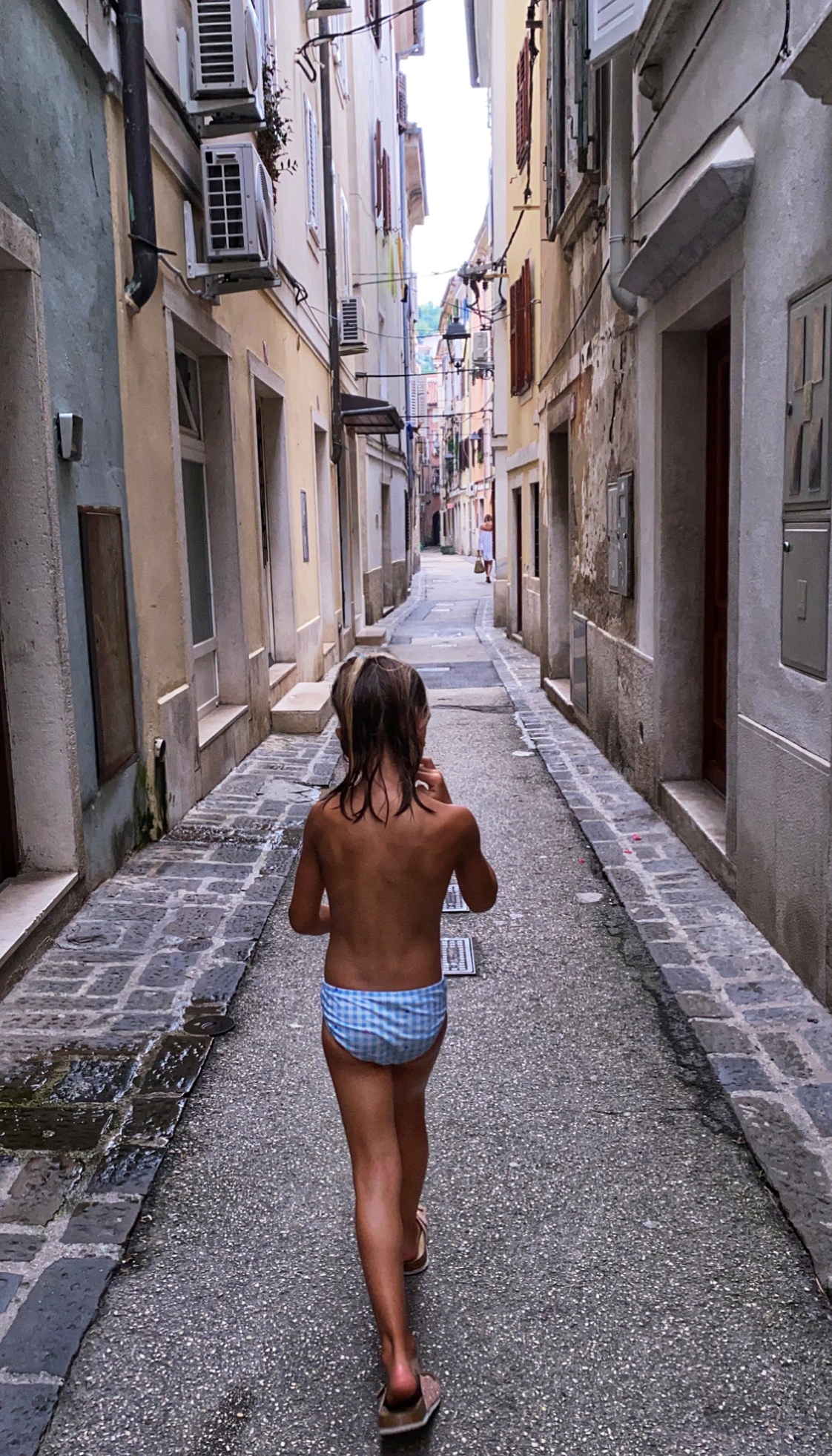 We were aiming to take a dip since we hadn’t gone swimming in over a day (imagine! What kind of vacation is this?!) and we knew the “beaches” in the coastal cities of Slovenia were different than what we are used to, but it was still pretty jarring to see how people in Piran just walk down to the boardwalk, strip down and climb over the rocks into the water.