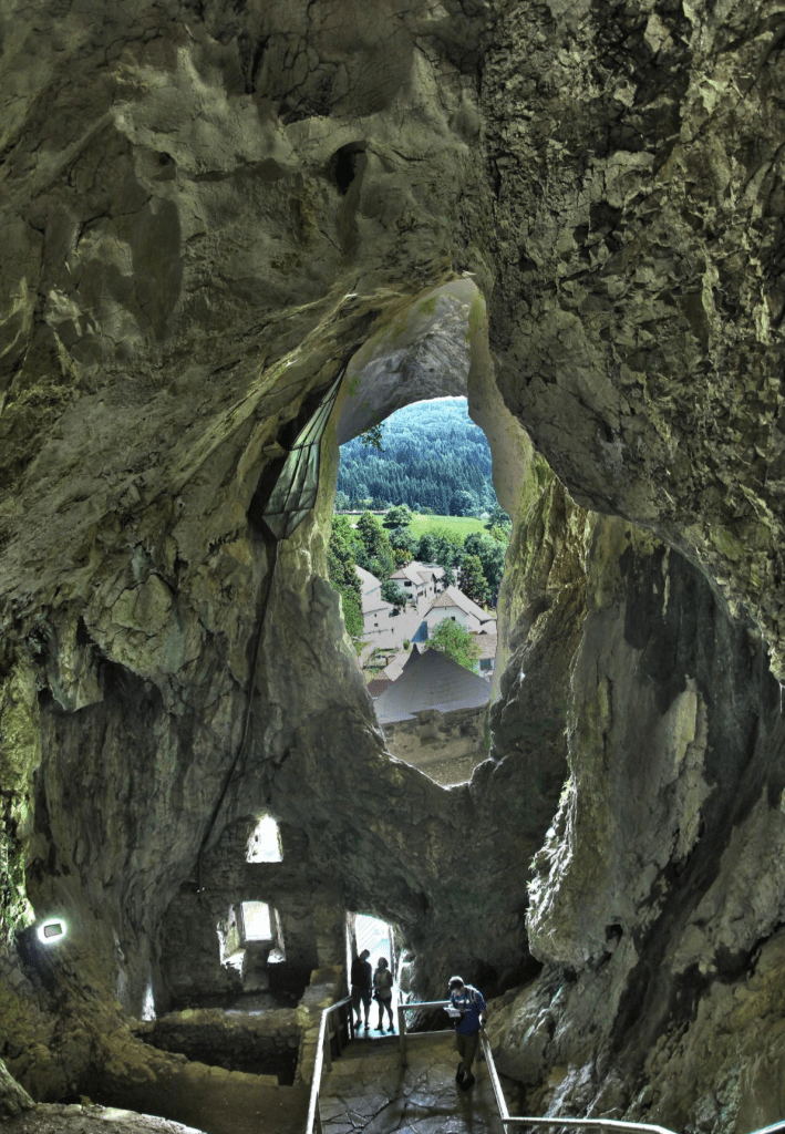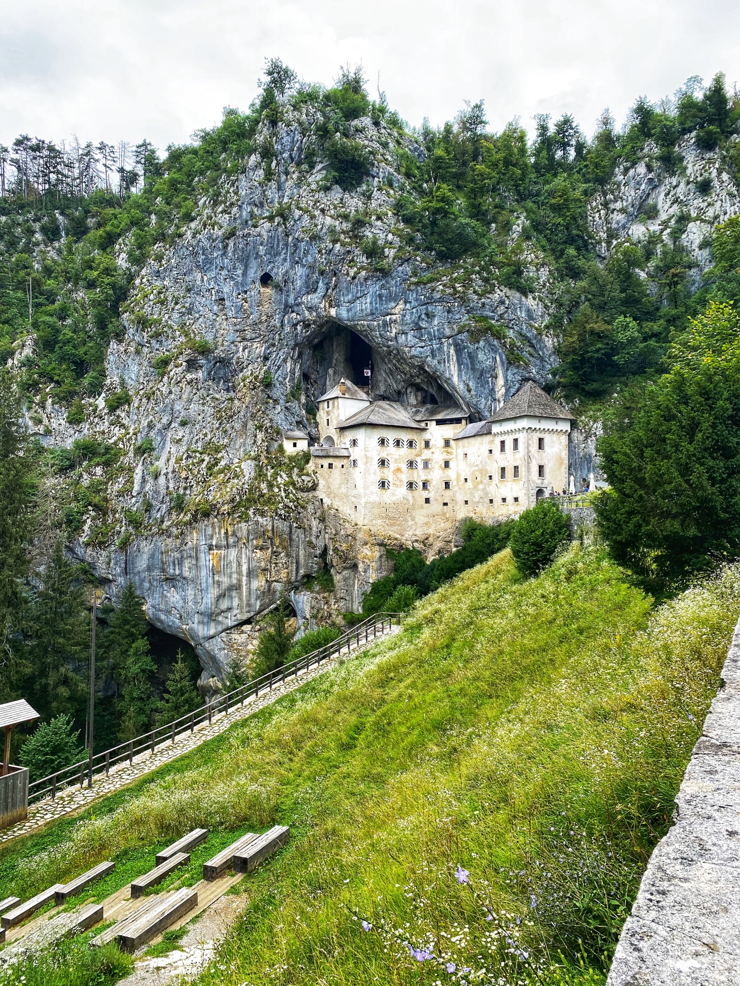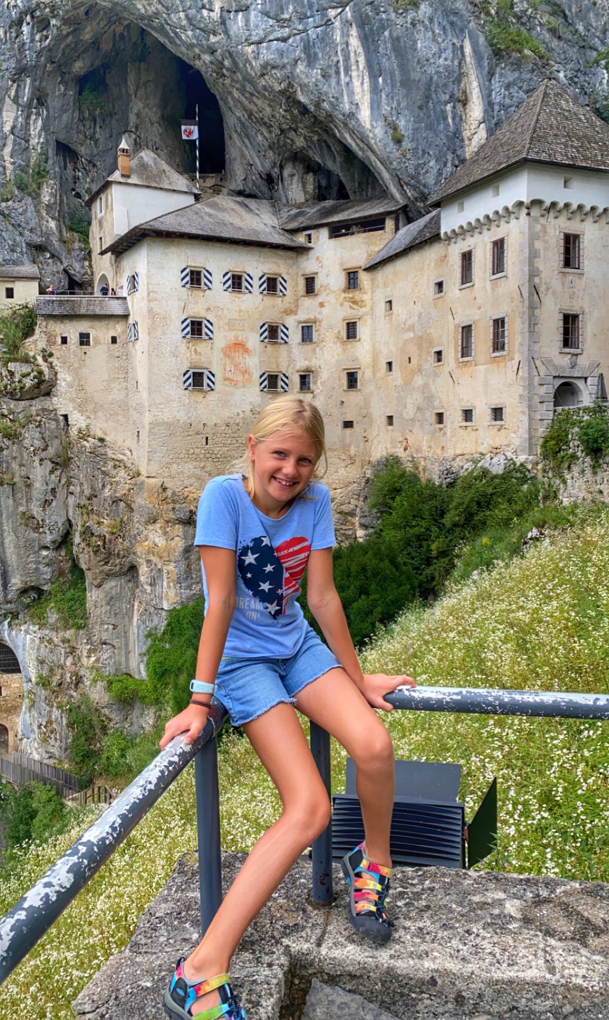 Not far from the cave lies Predjama castle. After a long day in the caves, we decided not to tour the castle, but we wanted to be sure to see it. Middle kiddo and I made our way up the path from the parking lot to the lovely entrance area that had eateries and souvenir shops. Just below the castle there appeared to be a jousting arena, and as we looked up at the castle we could see the movement of people inside holes in the cliff rock face. Inside must be super cool. We just didn’t have time that day to check it out. This photo from Pinterest gave us an idea, though, of what the largest cave-castle looks like inside.