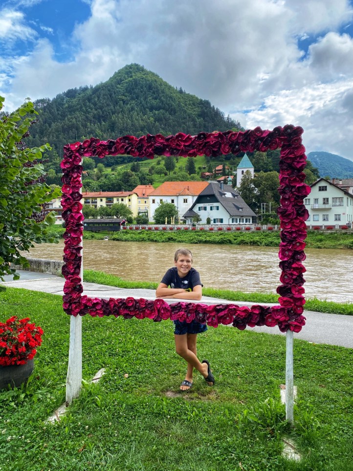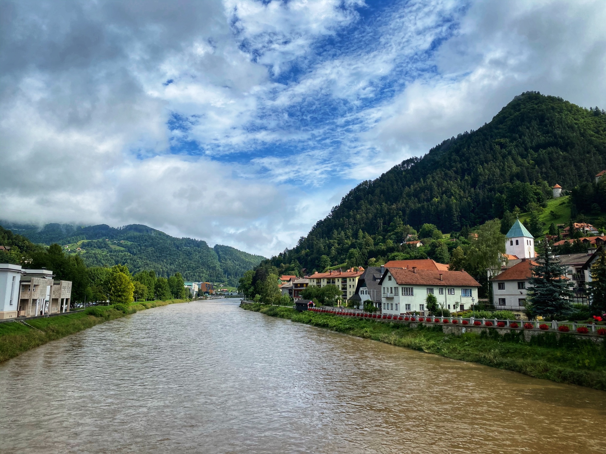 Lasko is such a cute little town! When we arrived it was pouring rain, and over the next couple of days we were dodging thunder storms, but we were very cozy in our little apartment in the boutique hotel. We noticed the river was uncharacteristically brown – something unusual for Slovenia – and guessed that it must be due to all the rainfall and runoff. Sure enough, on one of our drives in the rain, we saw sections along the river flooded and all of the culverts positively gushing with dirty water straight into the river. We even saw a car stuck in the flood! There were rescue workers there and everything seemed to be fine, but still – it was unnerving!