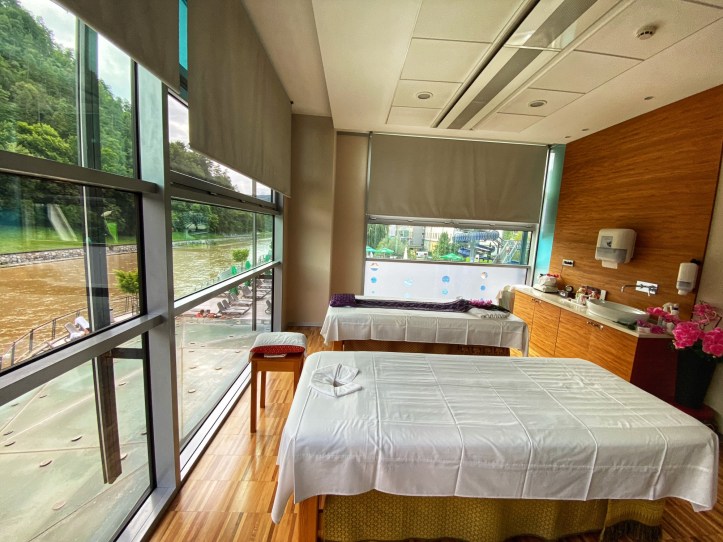 Hotel Thermana Park Superior thermal pool complex is quite the destination. There is a full spa, sauna, and indoor-outdoor thermal water park capped by a magnificent glass dome that can open up in good weather. It was such a treat to play here all morning with the kiddos, and I even got to have a Thai massage – much needed after all that hiking. There were plenty of slides, various hot tubs, and even a wave pool, plus a full medical side of the complex for people who need physical therapy.
