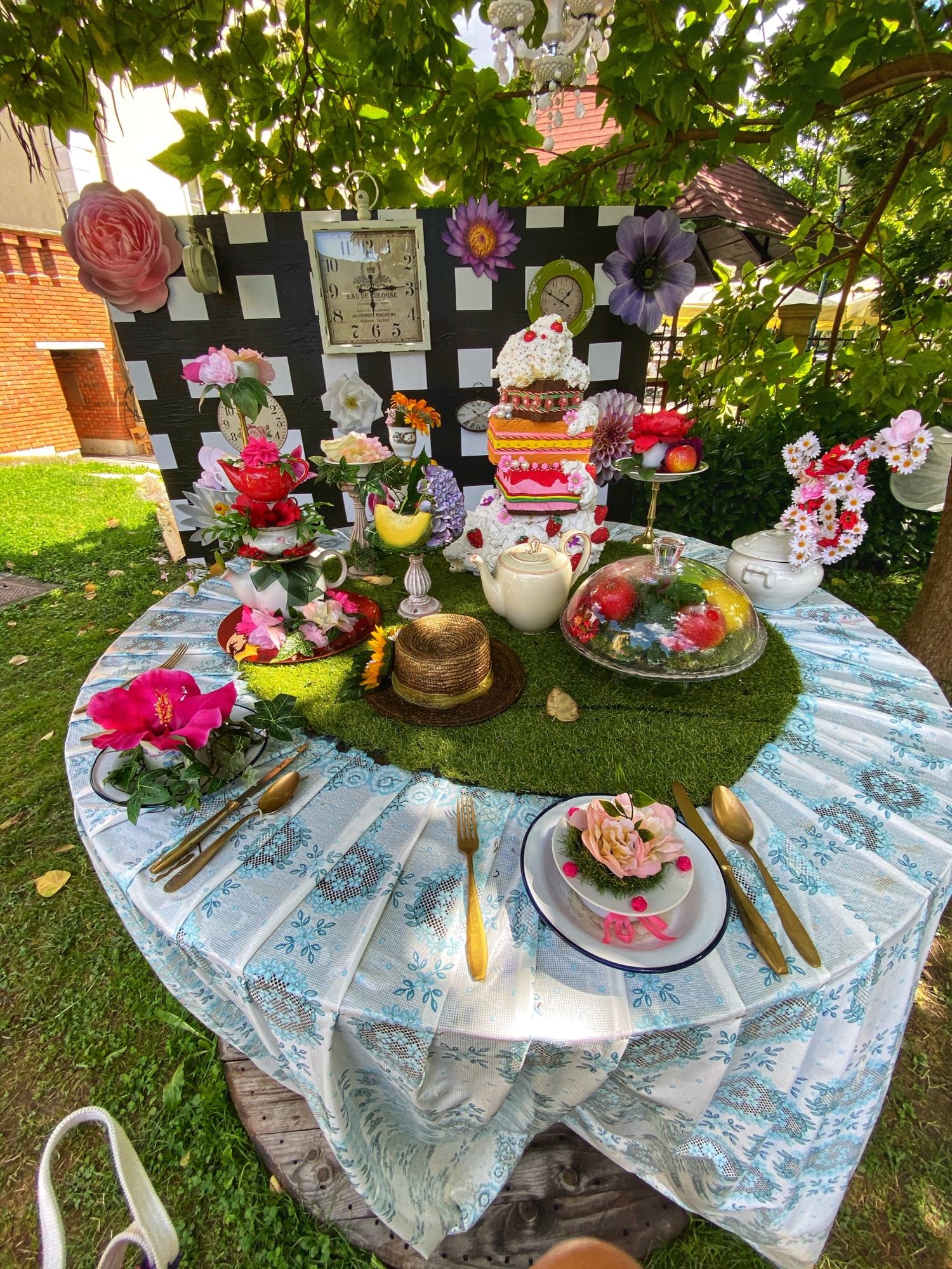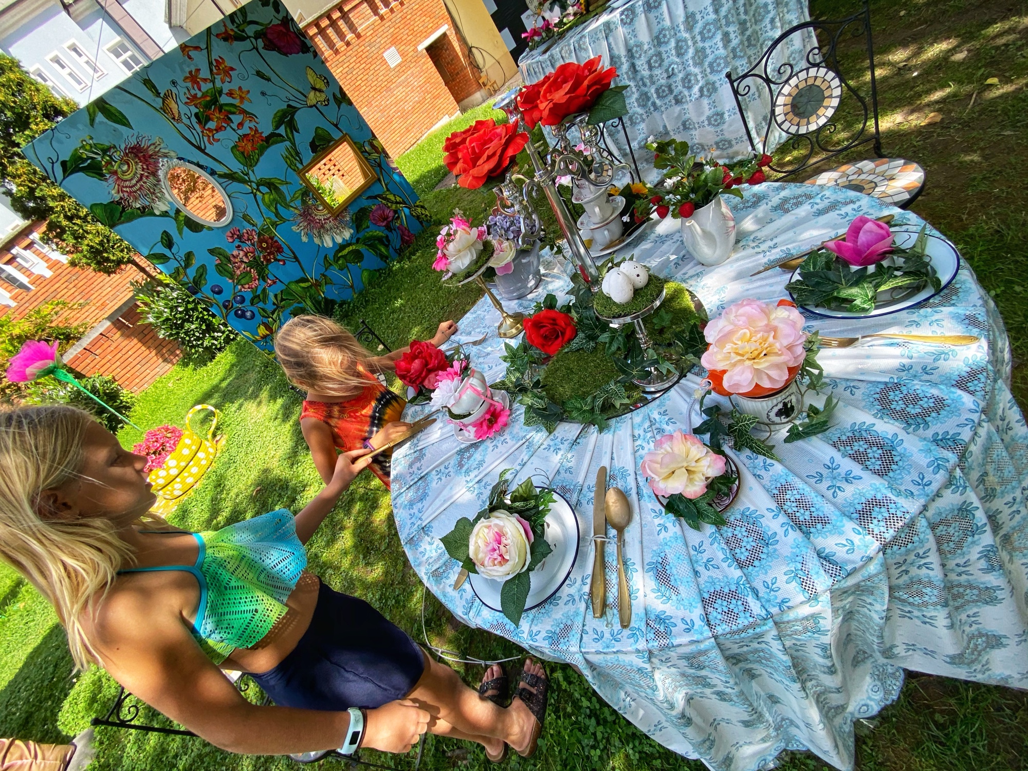 While the boys ran to the bakery, the girls and I explored this super cool Alice in Wonderland pop up in the park. It was so creative and it really peaked their imaginations!