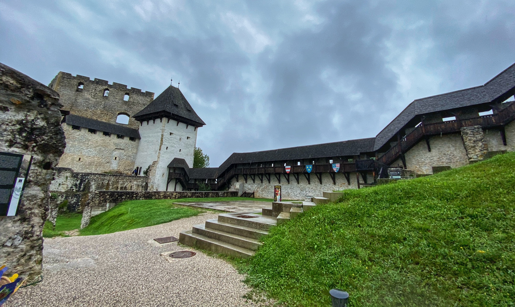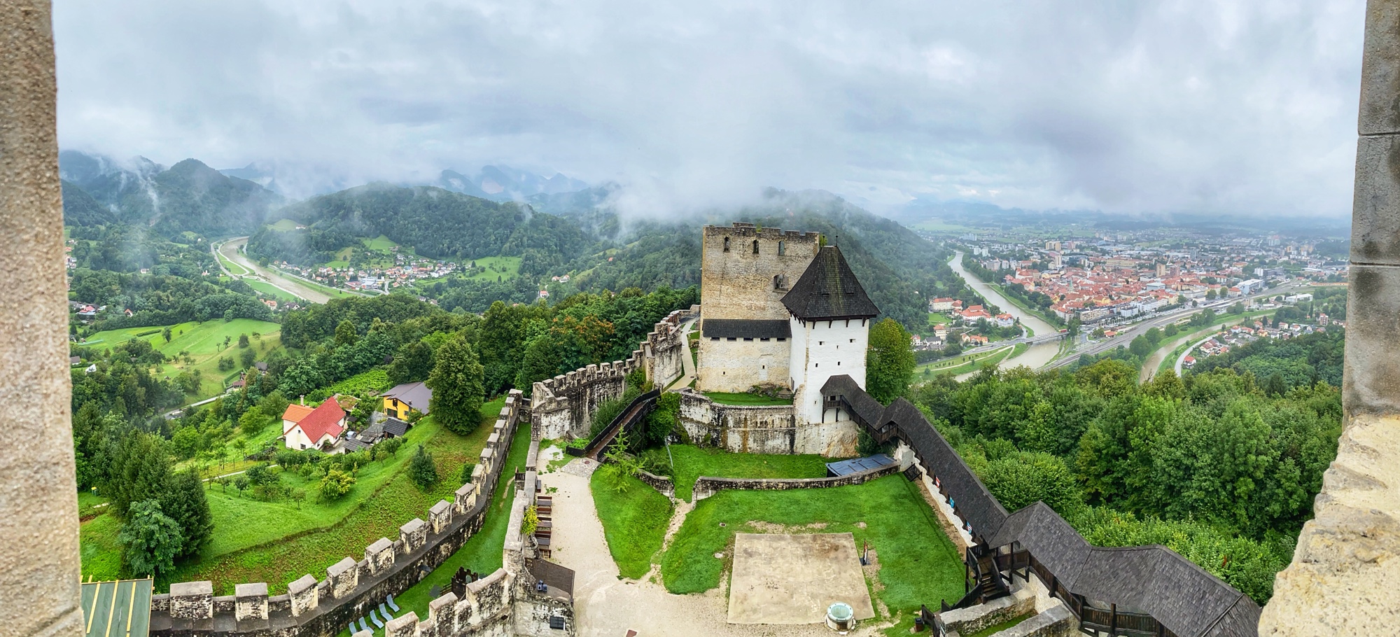 The next morning I insisted on visiting the medieval Stari Grad Castle in Celje before we headed for home, even though the weather was medieval too (misty and stormy)! The girls were up for it, so the boys stayed in the car to keep Bonsai company and we headed up to see what we could see.