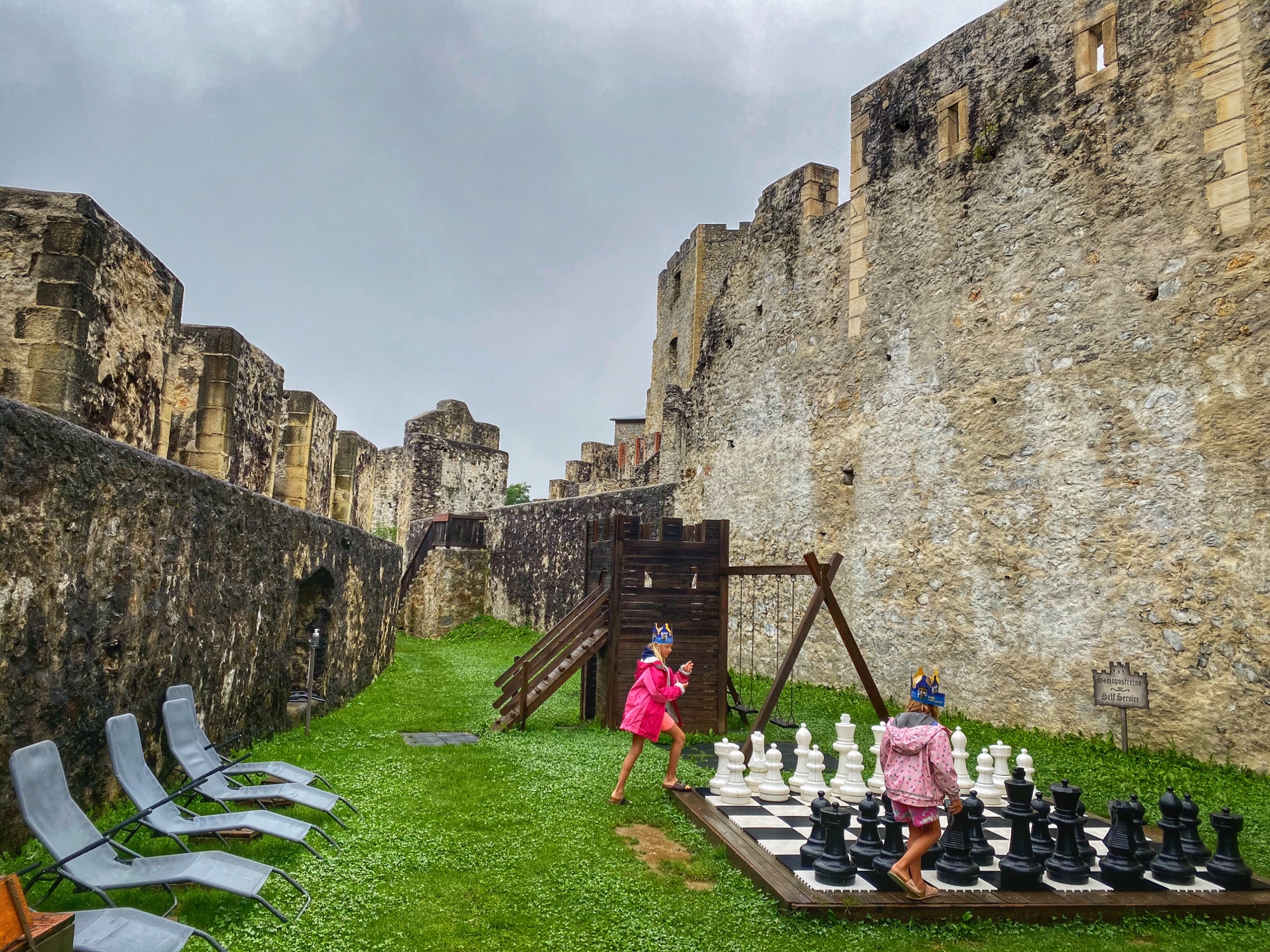 This castle is impressive, overlooking the city of Celje. On a clear day you can see far into the mountains. This day we couldn’t see far, but it was still a great view. The castle is known as the seat of the Counts of Celje, and there is quite the history and many dramatic stories of these counts. In the basement of the main tower there is an impressive exhibit of medieval torture devices – the girls were fascinated by it and also grossed out. We only spent about 45 minutes here bopping around, but I had to peel the girls off the giant chess set. The main tower made it worth the trip for me. And of course, thanks to the weather, we had the whole place to ourselves.
