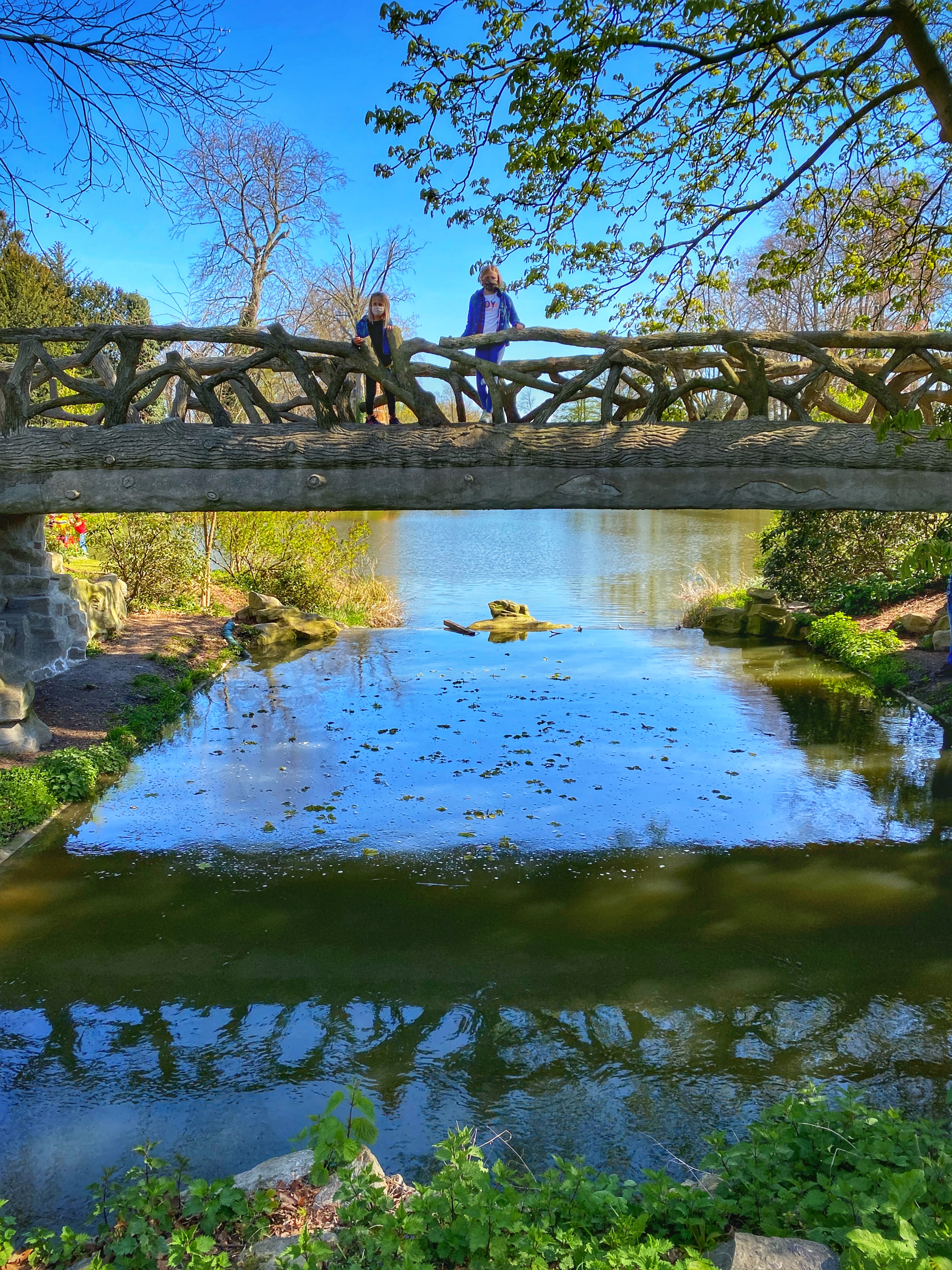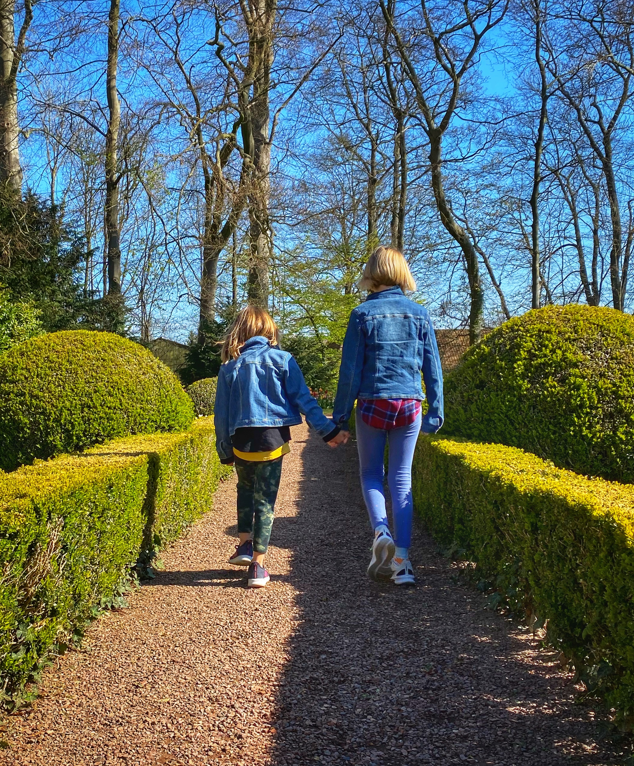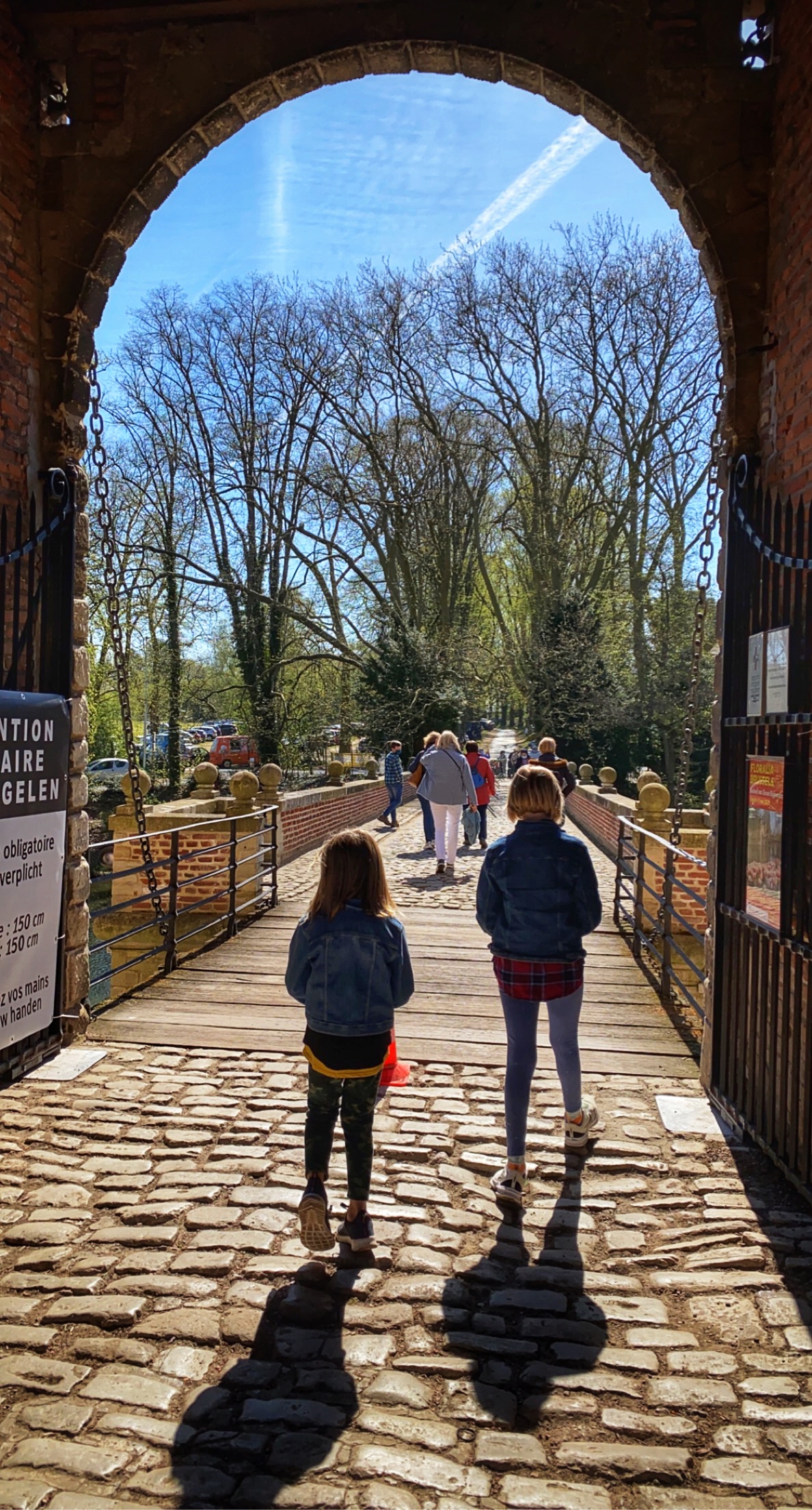 Past the huge Donjon tower and crossing the creek bridge s a garden that feels like you’re taking a walk through the forest. The trees are so tall, and the tulips were in full bloom!