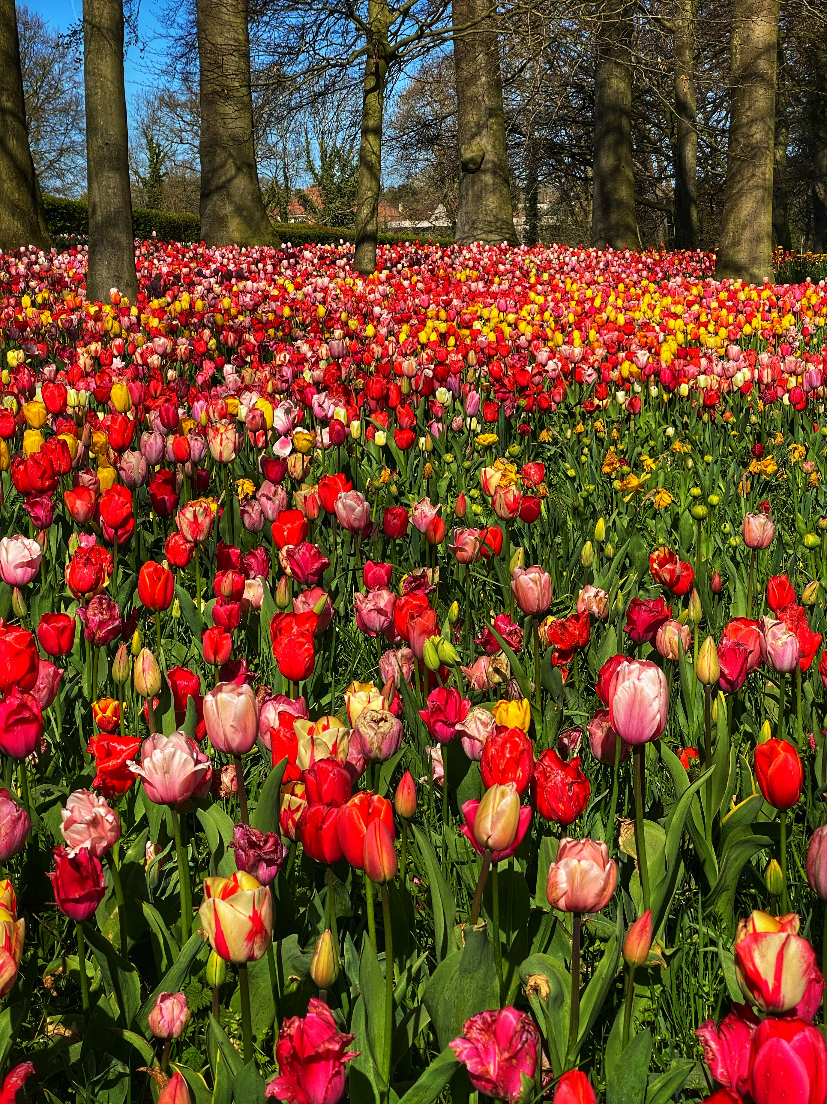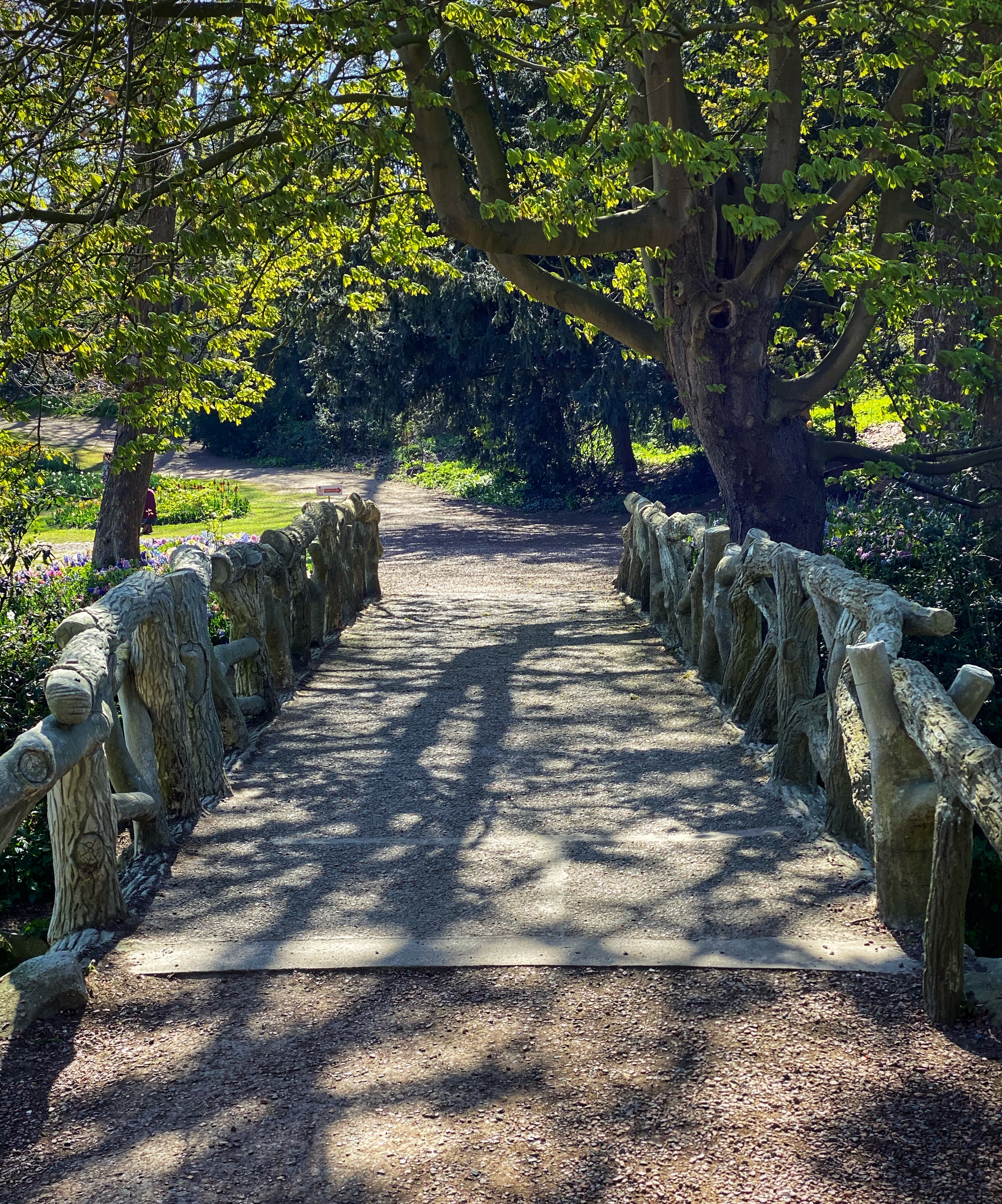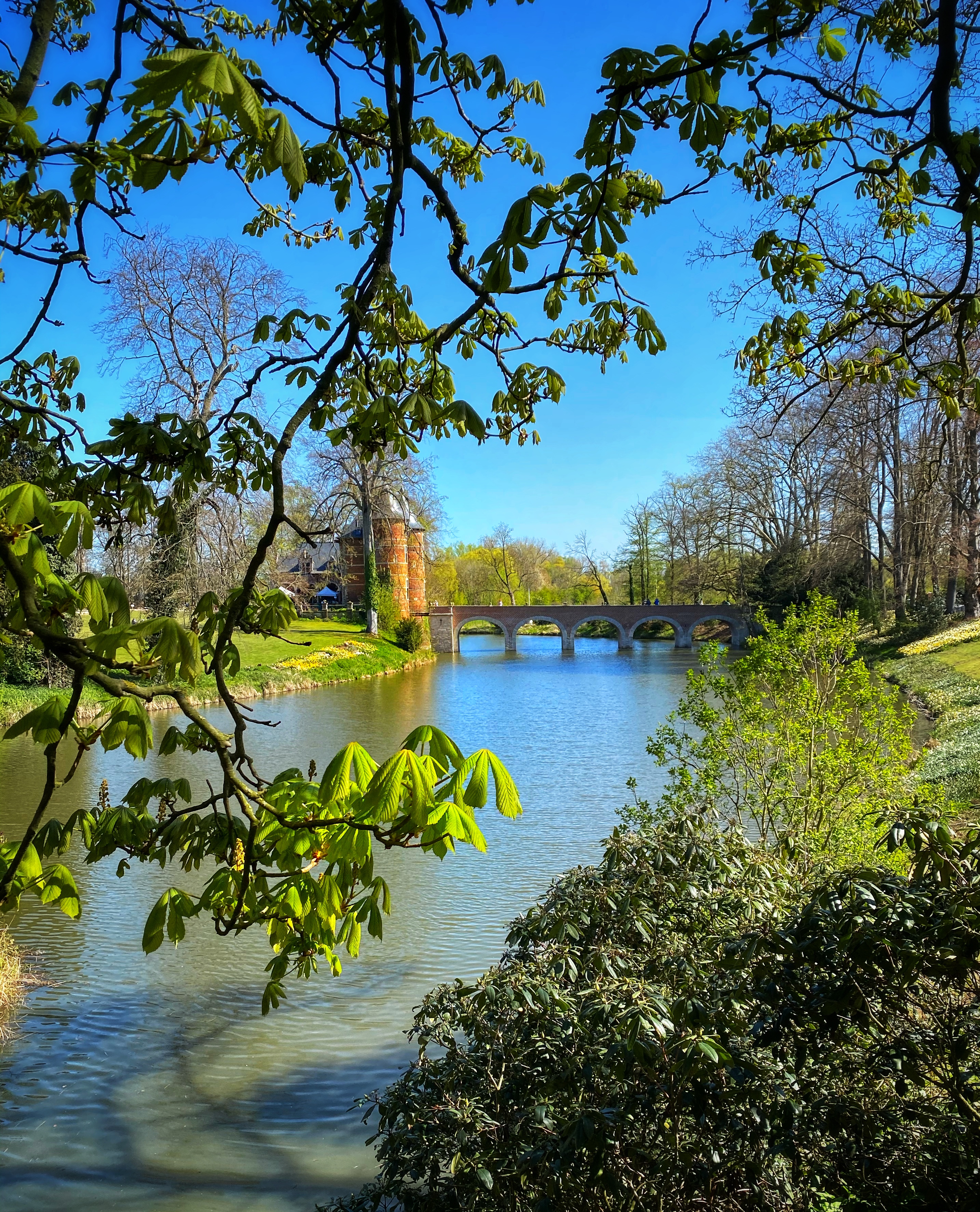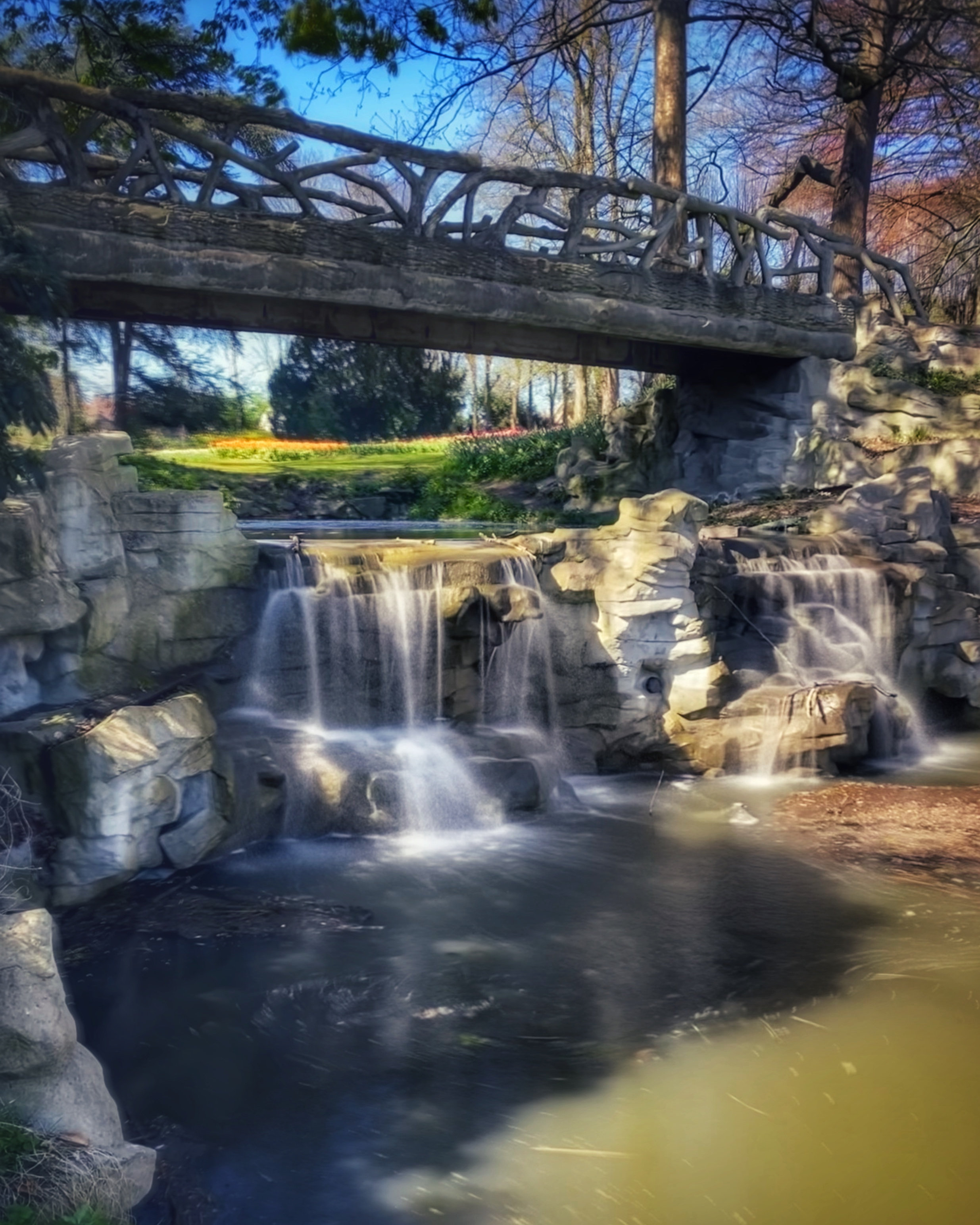 After the garden and paths there was another big area with tulips before reaching the small waterfall and bridge that takes you along the moat with a gentle hill, also covered in tulips.