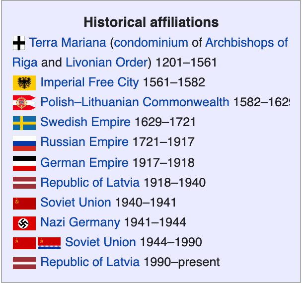 Riga is situated on the Gulf of Riga on the Baltic sea, straddling the Daugava River. Several prominent bridges cross the river connecting the quiet Torņakalns suburb and the Center District, where most of the businesses, historic buildings, and tourist areas are located. Riga’s population is just over 600,000 people – making it the largest city in the Baltic states. The Historic Center of Riga is also a UNESCO World Heritage Site – with buildings dating back to the 1300’s! As you can see (chart right), Latvia has been under various country’s occupation over the last 800 years; this includes Poland, Sweden, Russia, Germany, and finally their own sovereign nation again for the last 31 years. Due to this overlap of cultures, it is plain to see Soviet influence on the Latvian culture in their statues, architecture, religion and food. Riga is well known for tourism, but also wood products, IT, pharmaceuticals and metallurgy. Because of its location, it is one of the most prominent ports in the region. What I noticed is a nice balance between natural spaces and businesses, fun restaurants, and historic spots. After our delicious breakfast at the Boutique Hotel Kristofs (so cute!), we began our walking tour of Riga across the river at one of those very spots.