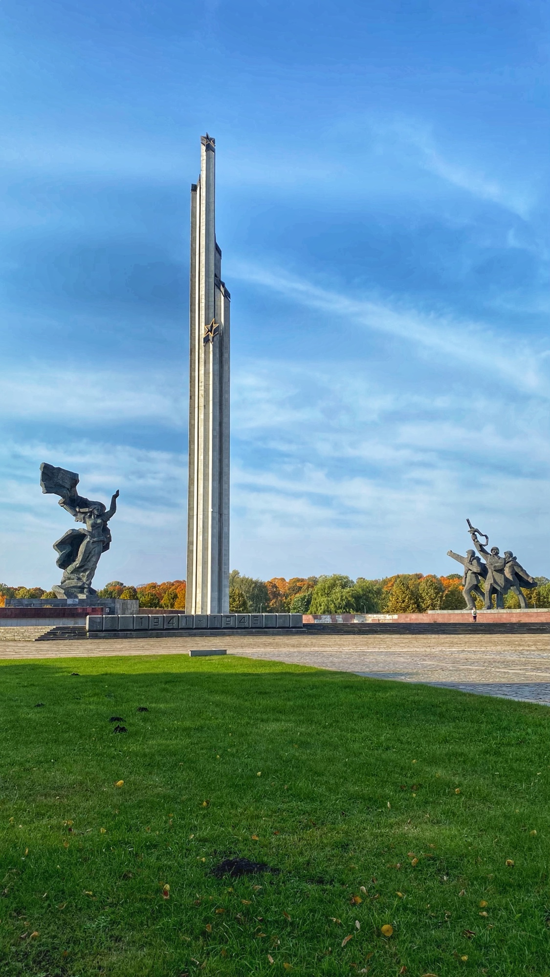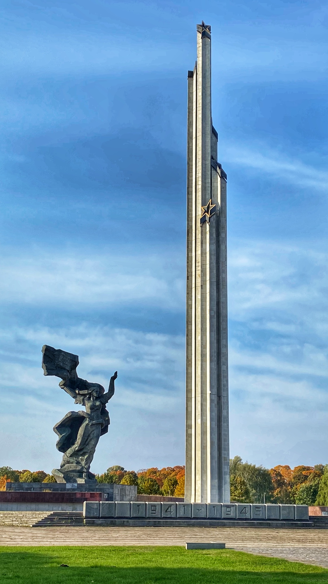 A brisk walk across the Akmens Tilts (Stone Bridge) took us past the beautiful National Library of Latvia and onto Victory Park. The trees were on fire with foliage, welcoming us. It is a huge park, at around 90 acres (36 hectares) and was named Victory Park in 1919 in honor of the victory of Latvians against Germany and Russia in their independence. Of course we know this independence only lasted 22 years, as the Latvians were once again occupied by the Soviet Union briefly, then Nazi Germany for several years, before being “liberated” by the Soviets and once again occupied from 1944-1990. This liberation is commemorated by a striking series of statues and obelisk type monument entitled, “Monument to the liberators of Soviet Latvia and Riga from the German fascist invaders.” Keep in mind, the Soviets had already claimed Latvia a year prior to Nazi Germany’s invasion, so when the Soviets conquered the Nazis in 1944, they re-claimed Latvia as their own. Thus is the modern game of thrones. For some Latvians these monuments are a symbol of oppression, as they endured a brutal Soviet occupation for 46 years. Still, they remain today as a reminder of the past and as a beautiful example of Soviet design. This area may one day become a museum of occupation to show what life was like for Latvians during those difficult times. It is also worth mentioning that when I shared some of these things on Instagram, I was immediately trolled by very angry Russians who wanted to “set me straight” on history. There is no question this was a painful time for many, but I can’t help but empathize with the Latvian people, and observe this history objectively from the outside, celebrating the sovereignty and beauty of this small country that deserves freedom.