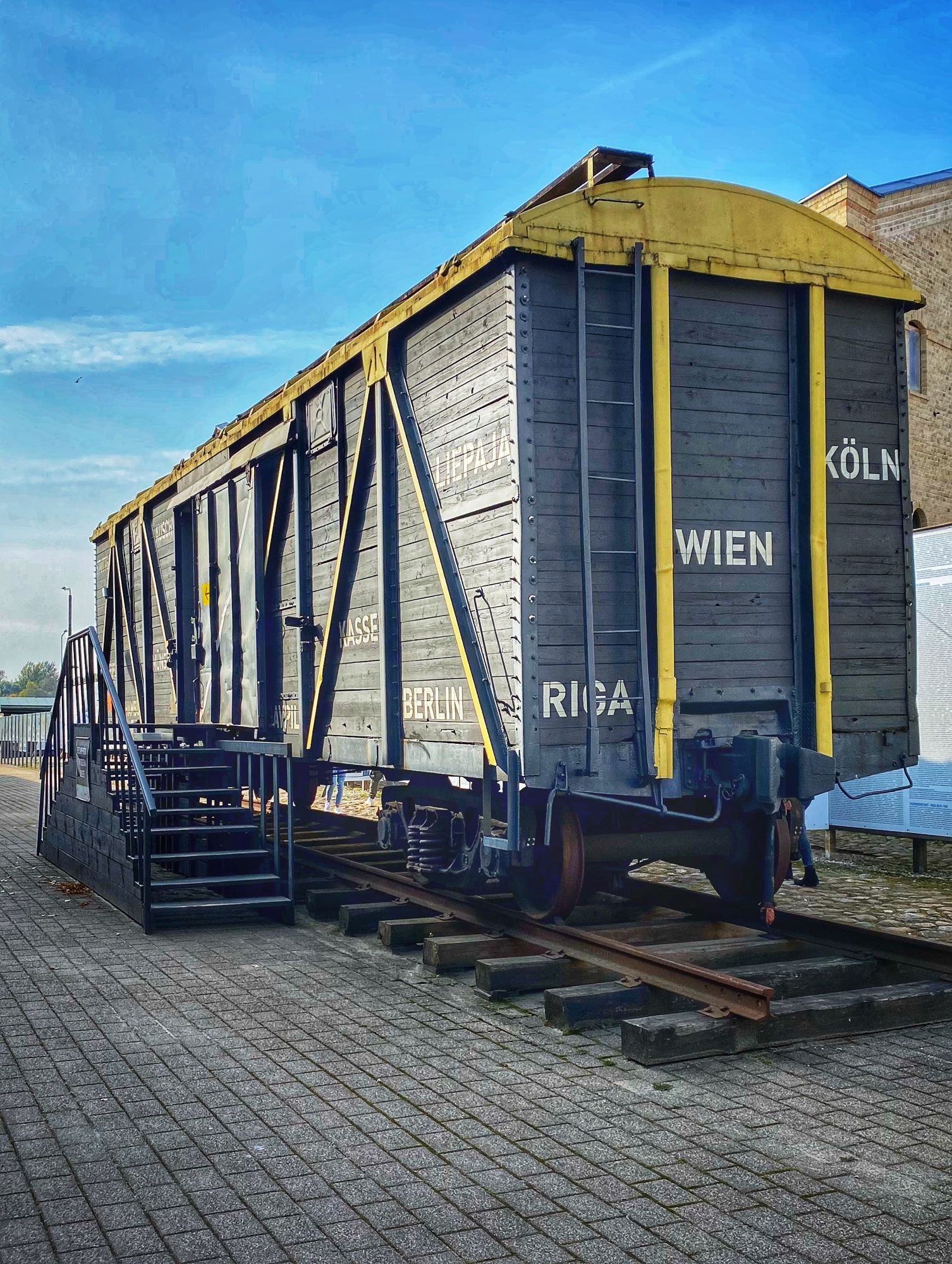 From the market we walked through the Spīķeri historic creative district to the Riga Ghetto and Latvian Holocaust Museum. We had heard this is must-see in the city for anyone interested in history, but we weren’t prepared for how extensive it was. The entire museum is free to enter and wander – it is just open air and open to the public – but a donation can be offered and should be, as it is the only way this moving and important place can stay afloat in such prime real estate in Riga. Upon entering the gates you will notice a small wooden house to the left that can be entered and shows what life was like in the ghetto, and in a courtyard paved with bricks there are several beautiful sculptural monuments. Straight ahead is a cattle car used for transporting Jews to and from the Ghetto here to the Nazi concentration and death camps; enter it to view a moving mirrored exhibit. Additionally, there is a set of barbed wire gates illustrating what it was like 75 years ago with a big wall of informational panels and maps that runs along the entire street. A large indoor museum area is to the right, with lanterns and large panels describing various experiences of Baltic jews. Among other things, I learned of Nazis using bone crushing contraptions to dispose of the piles and piles of bones that became a “problem.” In the informative panels I also learned that a great deal of the horror Latvian Jews experienced was due to their neighbors, who quickly turned against them, often becoming violent in the streets. It wasn’t just the Nazis who committed atrocities. Over 75% of the Latvian Jewish population was murdered during the Holocaust: 70,000 people. Go, learn, grieve, and never forget.