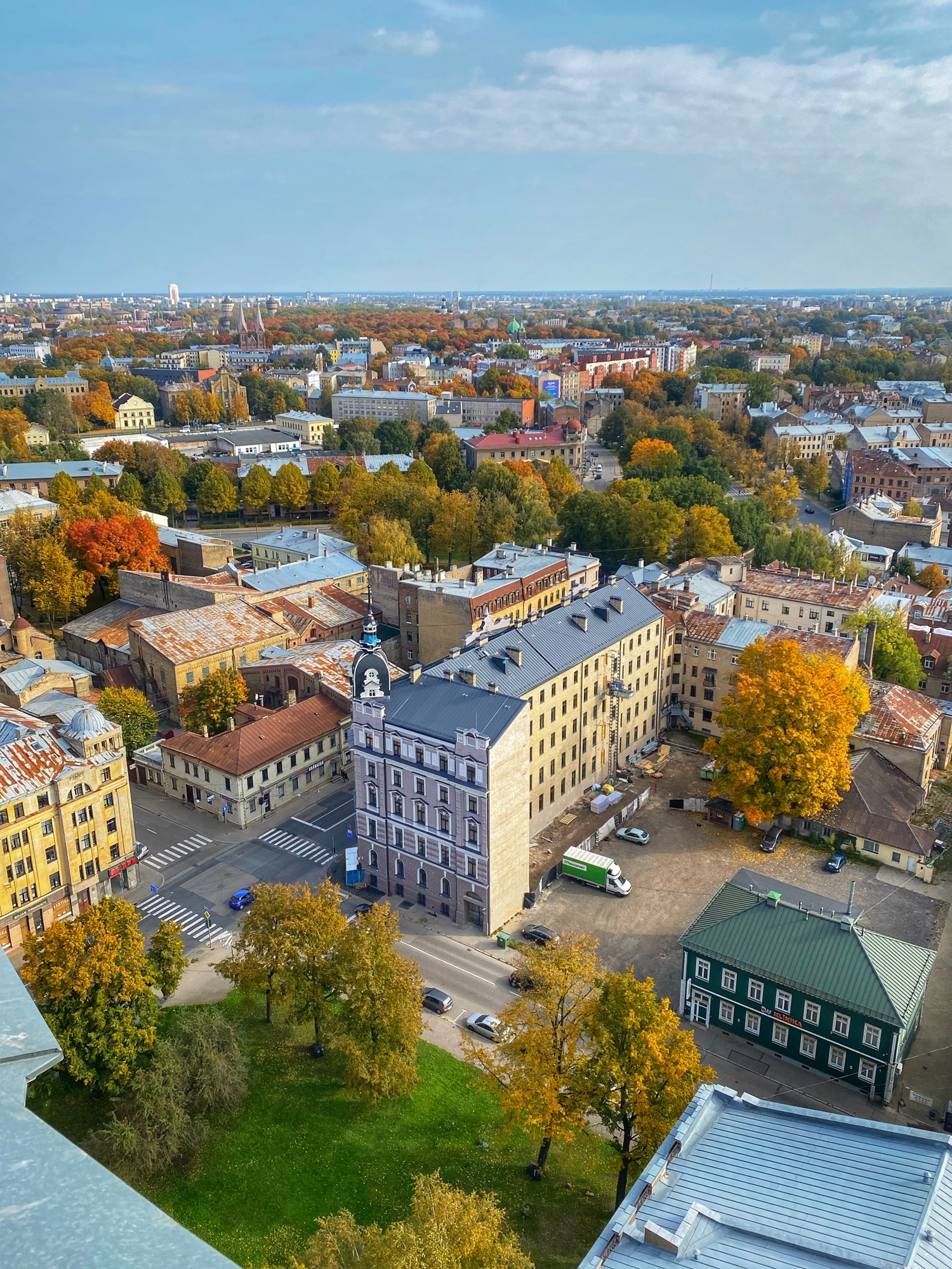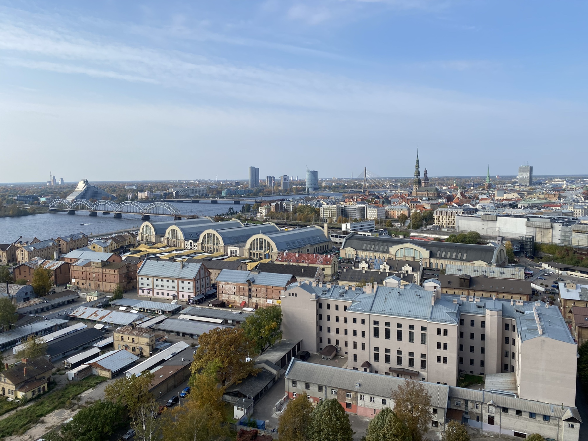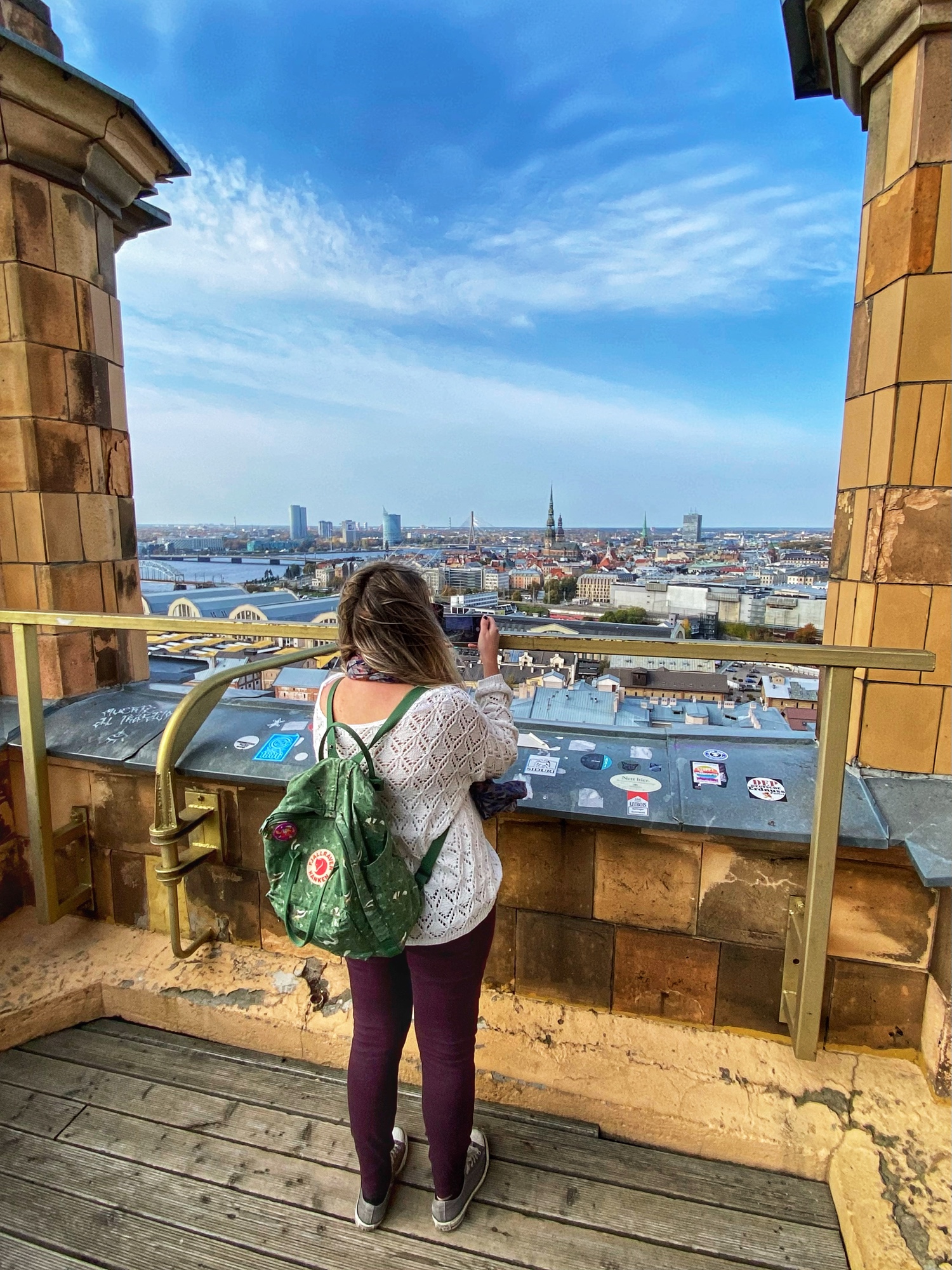 We walked with heavy hearts nearby to the Latvian Academy of Sciences. This is another distinctly Soviet-era building, built in 1961. For a small fee you can go up the elevator to the 17th floor observation deck for a great view over the city. I was so proud of Ashlyn for doing this even though she’s terrified of heights! This observation deck feels a bit more safe and secure than others even though it is open air. It was pretty windy up there in early October, but the view was fantastic!