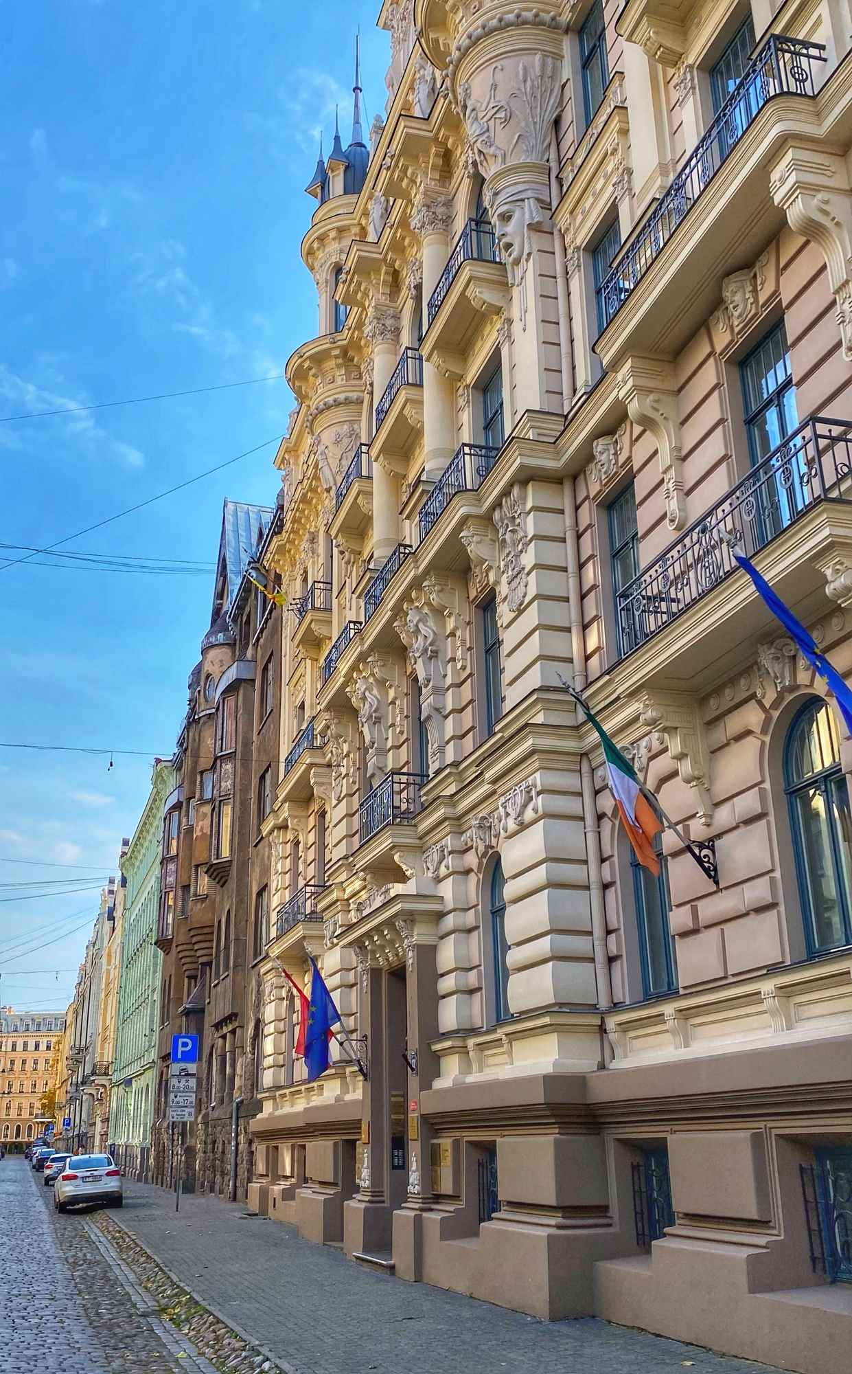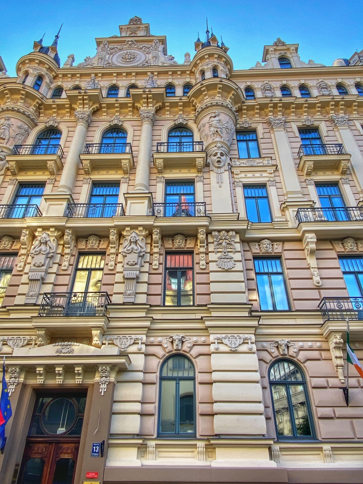 Also famous in Riga is the Art Nouveau District. Don’t know what Art Nouveau is? It will be quite apparent when you wander the streets here! Every single building is decked out in classic, intricate Art Nouveau detailing, including lots of faces, sculptures and filigree! Can you spot the faces on the buildings? They’re so fun!