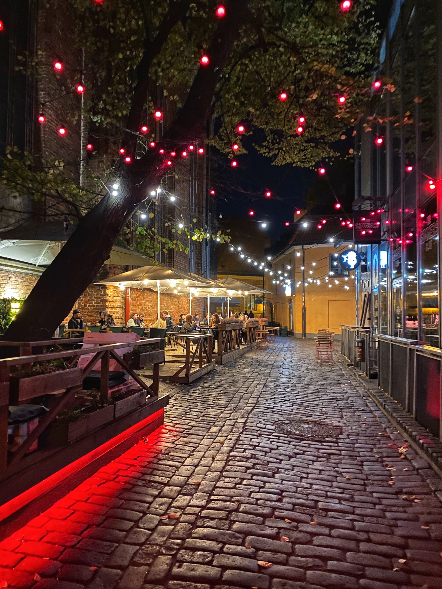 I got a kick out of the huge armadillo in the back of the cathedral. I have no idea what that was for – but it was cute to see it near the children’s playground. Maybe it is a symbol of innocence and childhood like the hedgehog is in Hungary? Anyway, the streets were beautiful as the sun was setting, and Ashlyn and I decided to have a nice drink at B Bar near the Riga Cathedral. It wasn’t busy, but it was getting colder, so less people were dining outside.