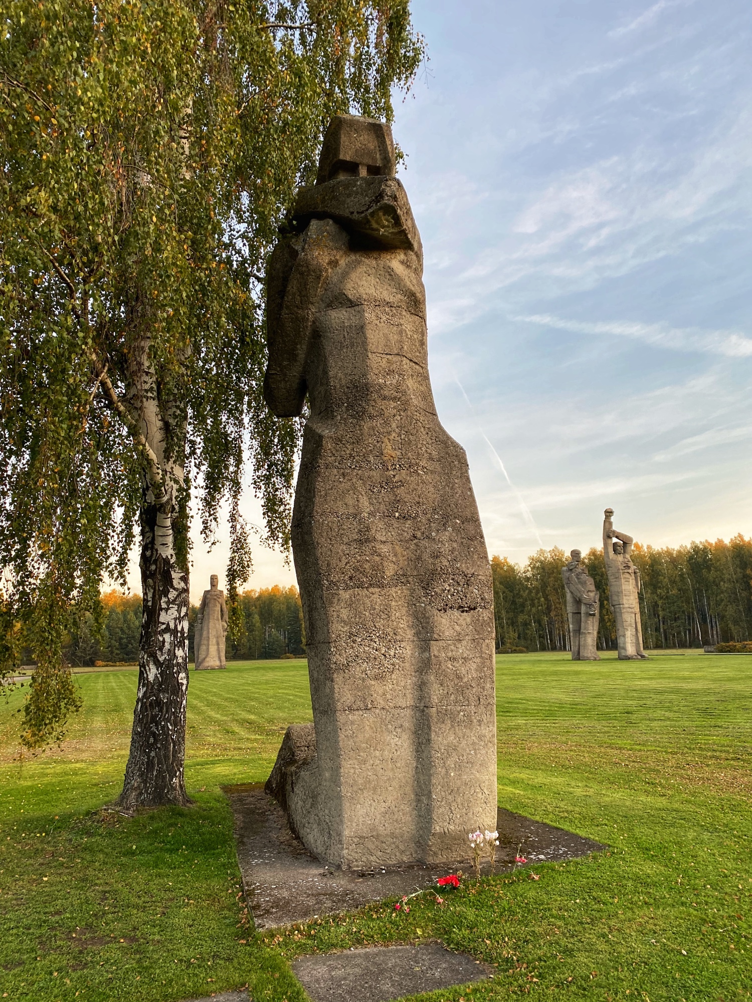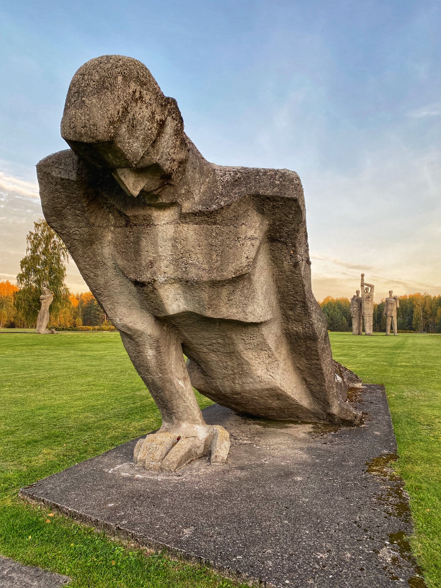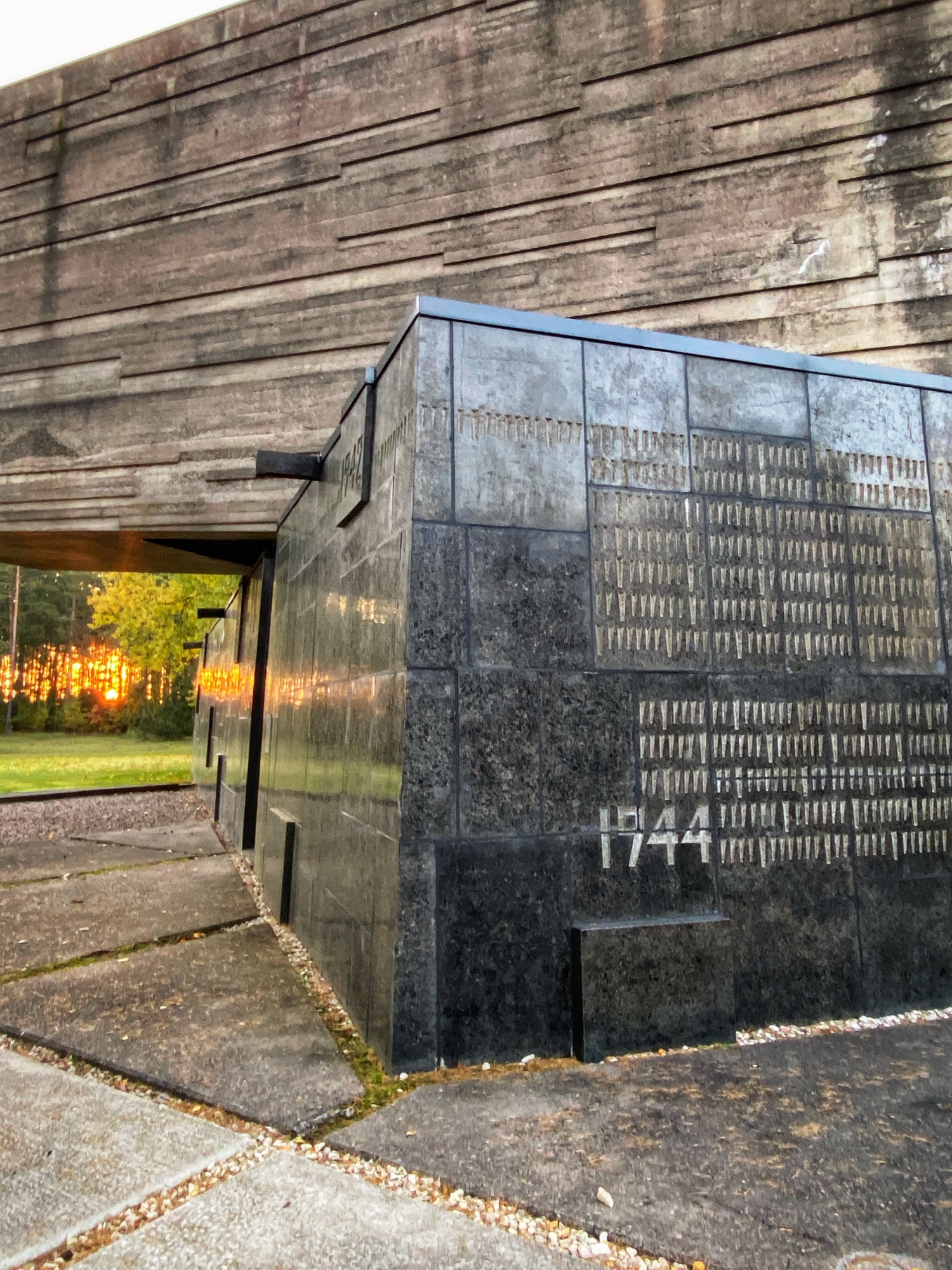 On the way out of town the next day towards Vilnius, Lithuania, we wanted to be sure to see one more historic memorial spot nearby. The Salaspils Memoriāls is a somber place. We were the only ones there as the sun was rising, and the enormous looming sculptures came into view as we approached the open field. Here, during Nazi occupation between 1941-1944, a repressive prison and punishment camp was erected to house political prisoners and locals, as well as people moving through to concentration camps. As many as 23,000 people may have been imprisoned here. Over 3,000 people died in the horrific conditions of the camp. This memorial was built in 1967 during Soviet occupation, and therefore many soviet graves surround the property. The Soviet creators of the monuments were awarded the Lenin Award, the highest Soviet honor. The sculptures of the people look like they’re standing strong, protecting each other and persevering against violence and oppression. It is ironic, really, to think the Soviets erected these statues about breaking free from Fascist Nazi Germany…while they were occupying (often brutally) the Baltic states.