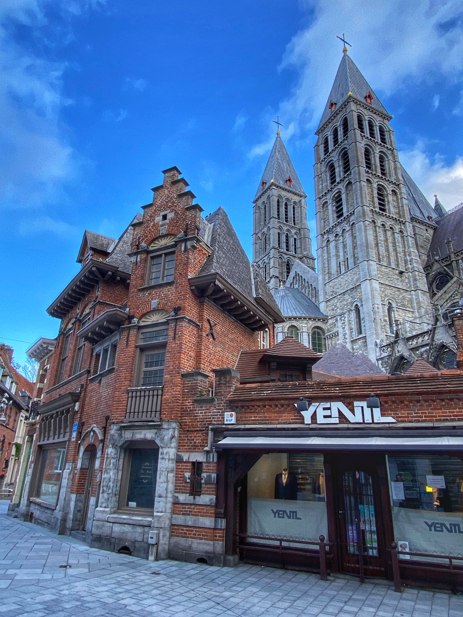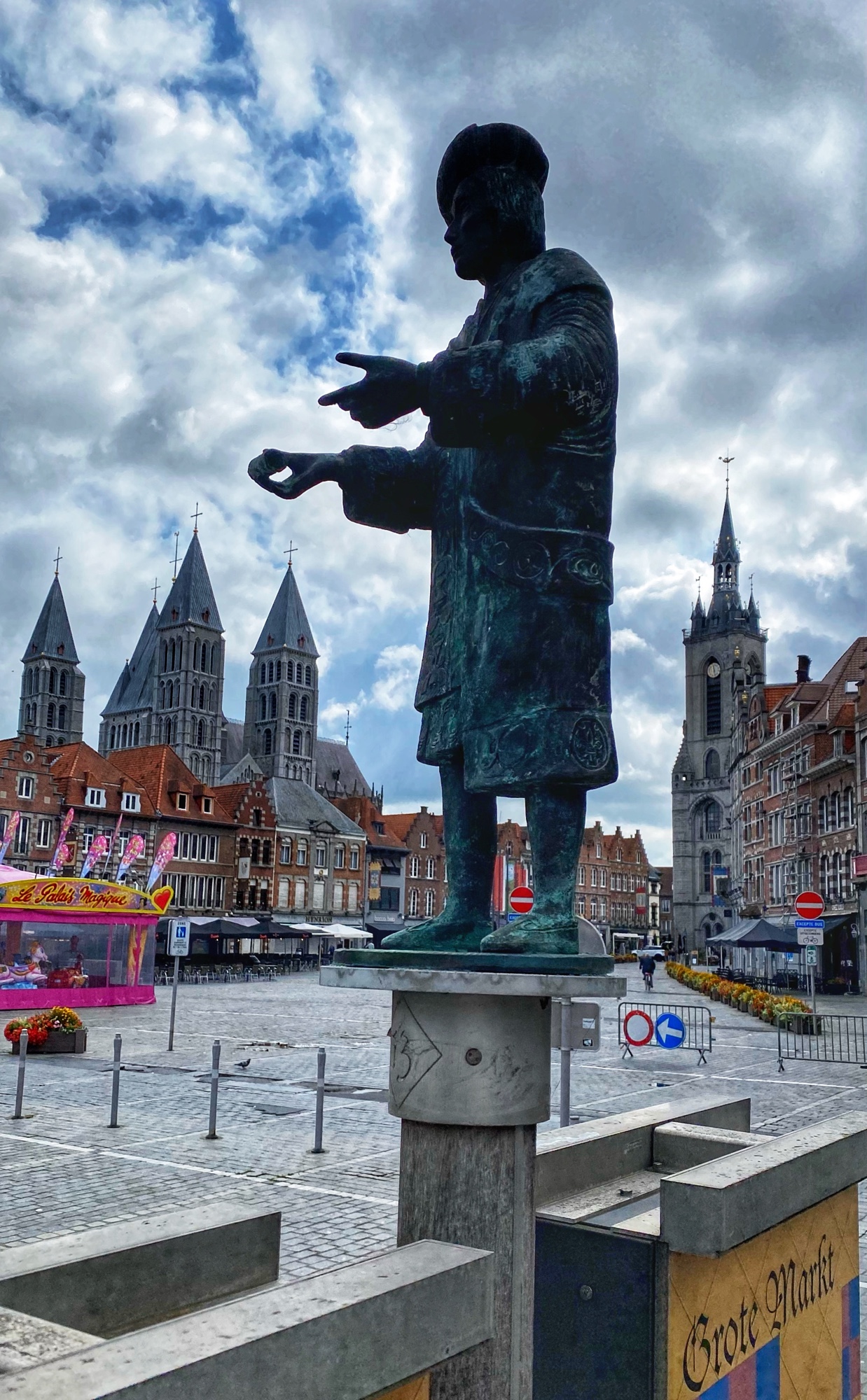 Tournai, Belgium is located on the northwest border of Belgium, not far from the city of Lille in France. With a population of around 70,000 people, it packs a great deal of history into a relatively small area in the city center. If I could define a Belgian “style” to the architecture and vibe of a place, Tournai nails it! The buildings are colorful and boast the triangular stair-step faux-facade that can be found in other prominent Belgian cities. There are statues, towers and cathedral spires in all directions.