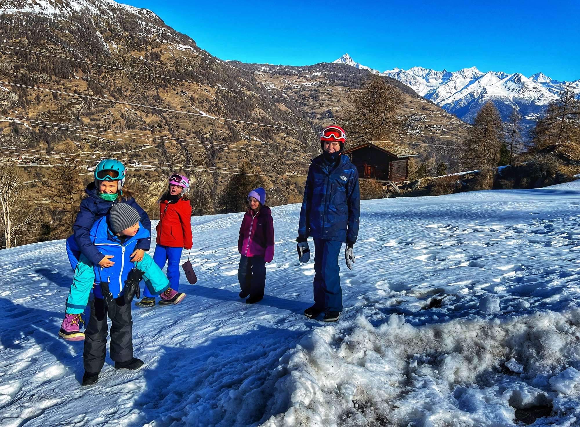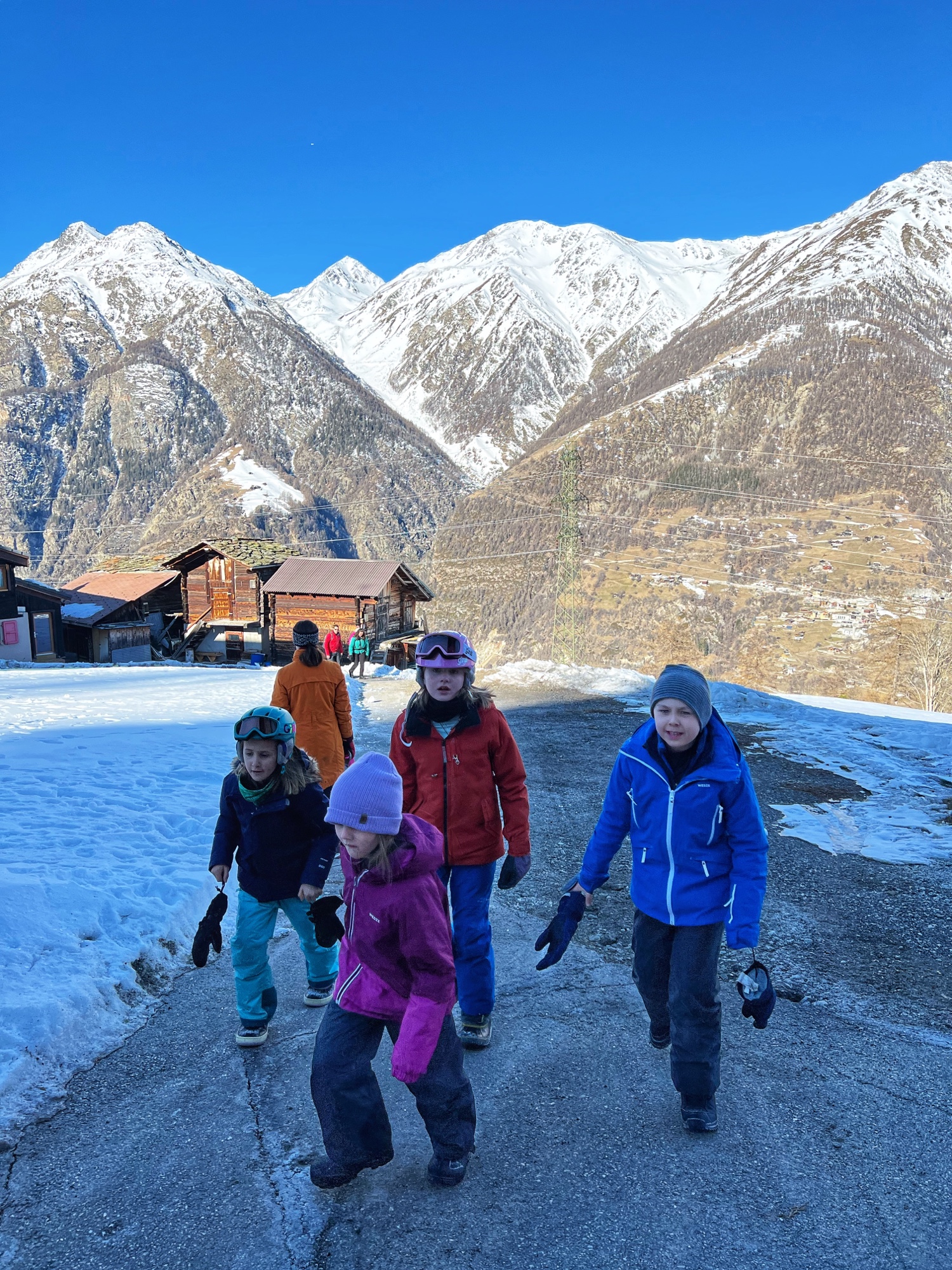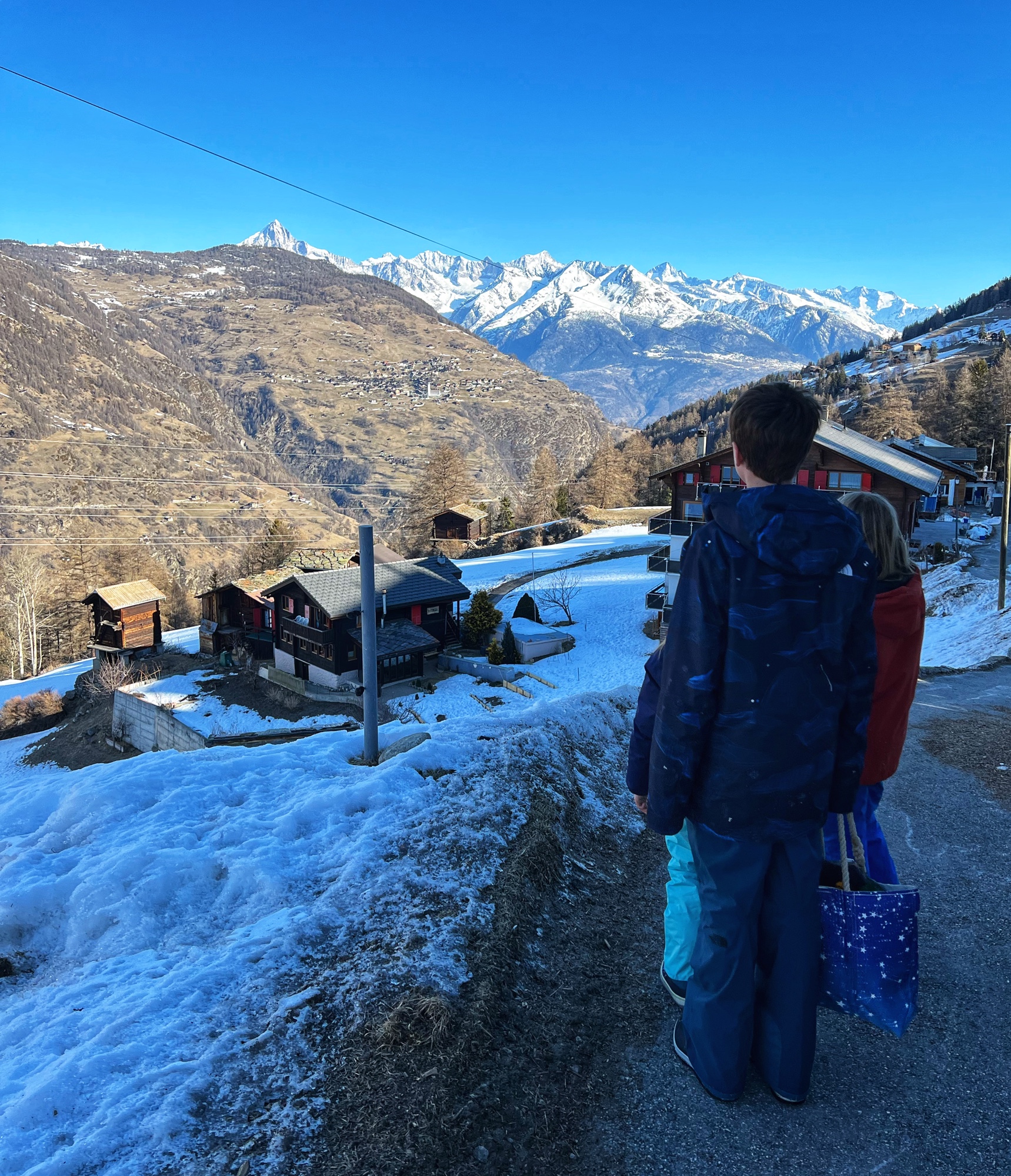 Ski break happened in late February, and we were determined to find snow and SKI! Belgium didn’t have much of a winter and we barely had a chance to use our snow gear – and we knew this was our last chance to use it for this season before they grew out of it! The kids hadn’t hit the slopes since early 2020 and were very eager to get a feel for skiing again with their much bigger bodies. This year daddy didn’t have the time off, so we decided to take our friends up on their offer to visit their beautiful home in Switzerland and stay for free, skiing at their local slopes in Grächen.