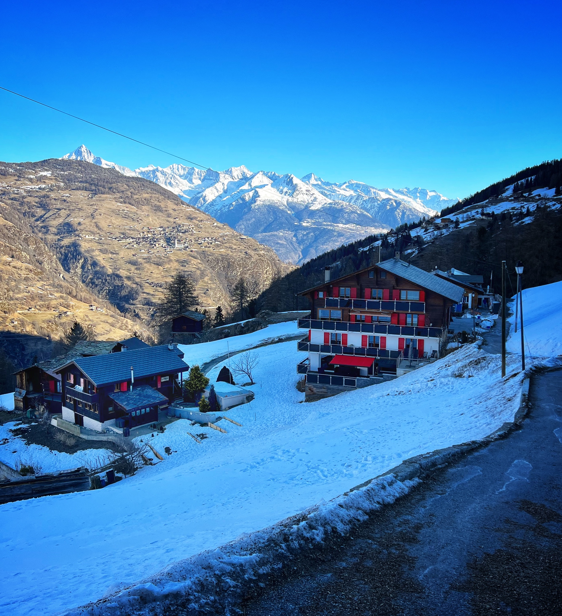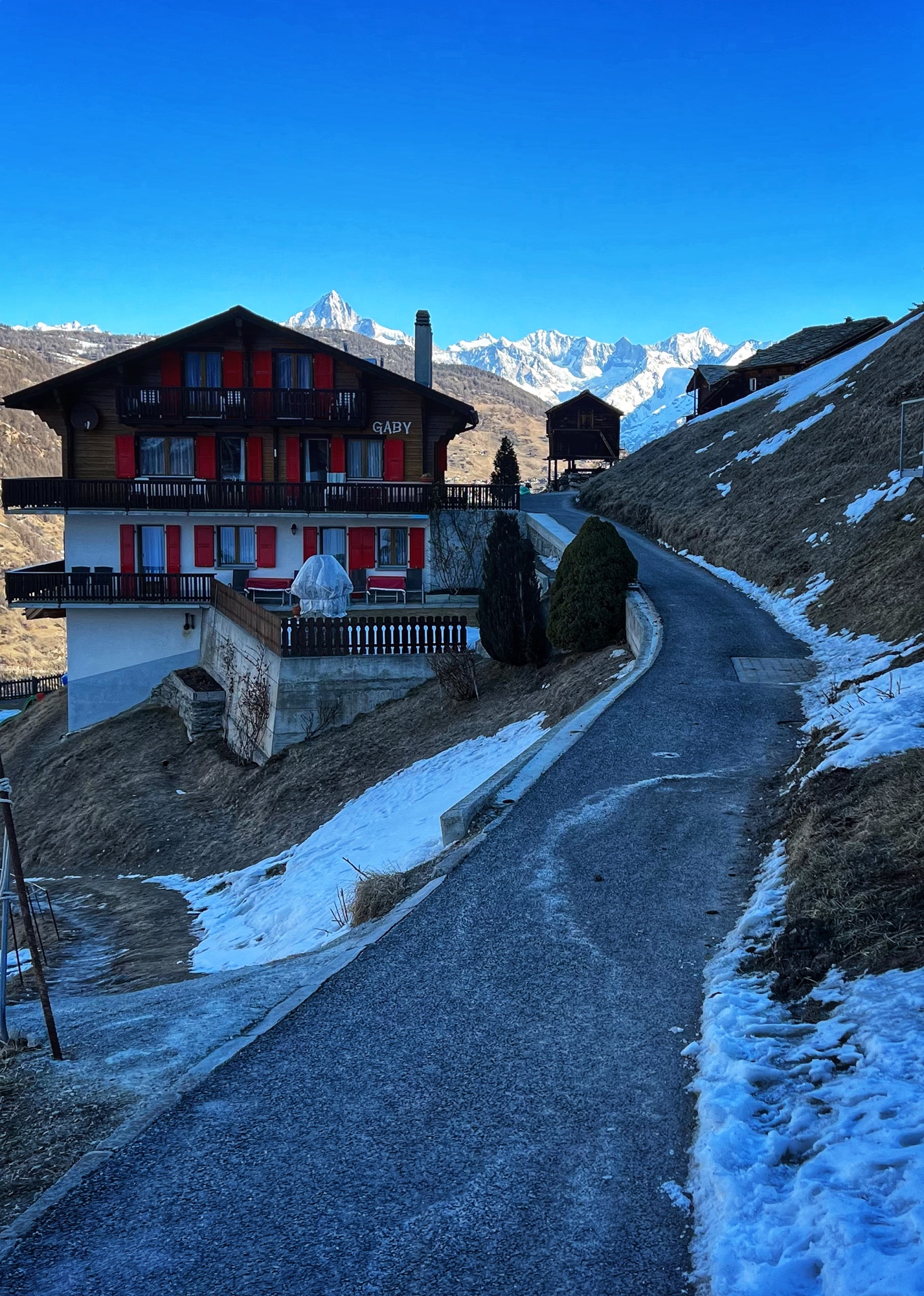 As you can see from these photos, the home has incredible views and from the right angle you can even see the tip of the Matterhorn in Zermatt! (More on that later.) The property has been fixed up and they plan to rent it out starting this spring as an Air BnB. It would certainly be a lovely experience for people looking to have a mile high stay in the mountains in a Swiss chalet! Of course it’s awesome for the proximity to the ski slopes, but in the summer the hiking is outstanding, too.