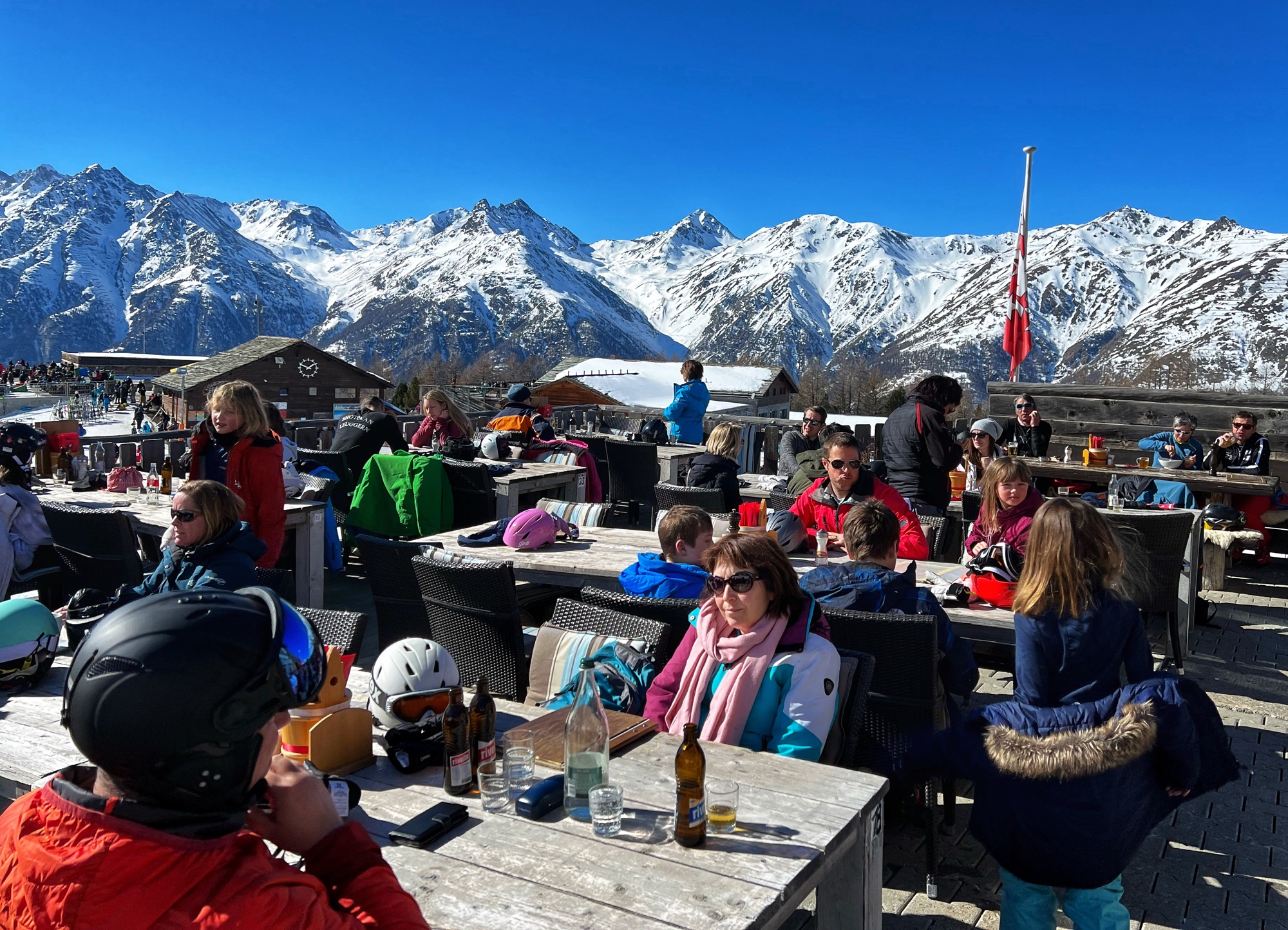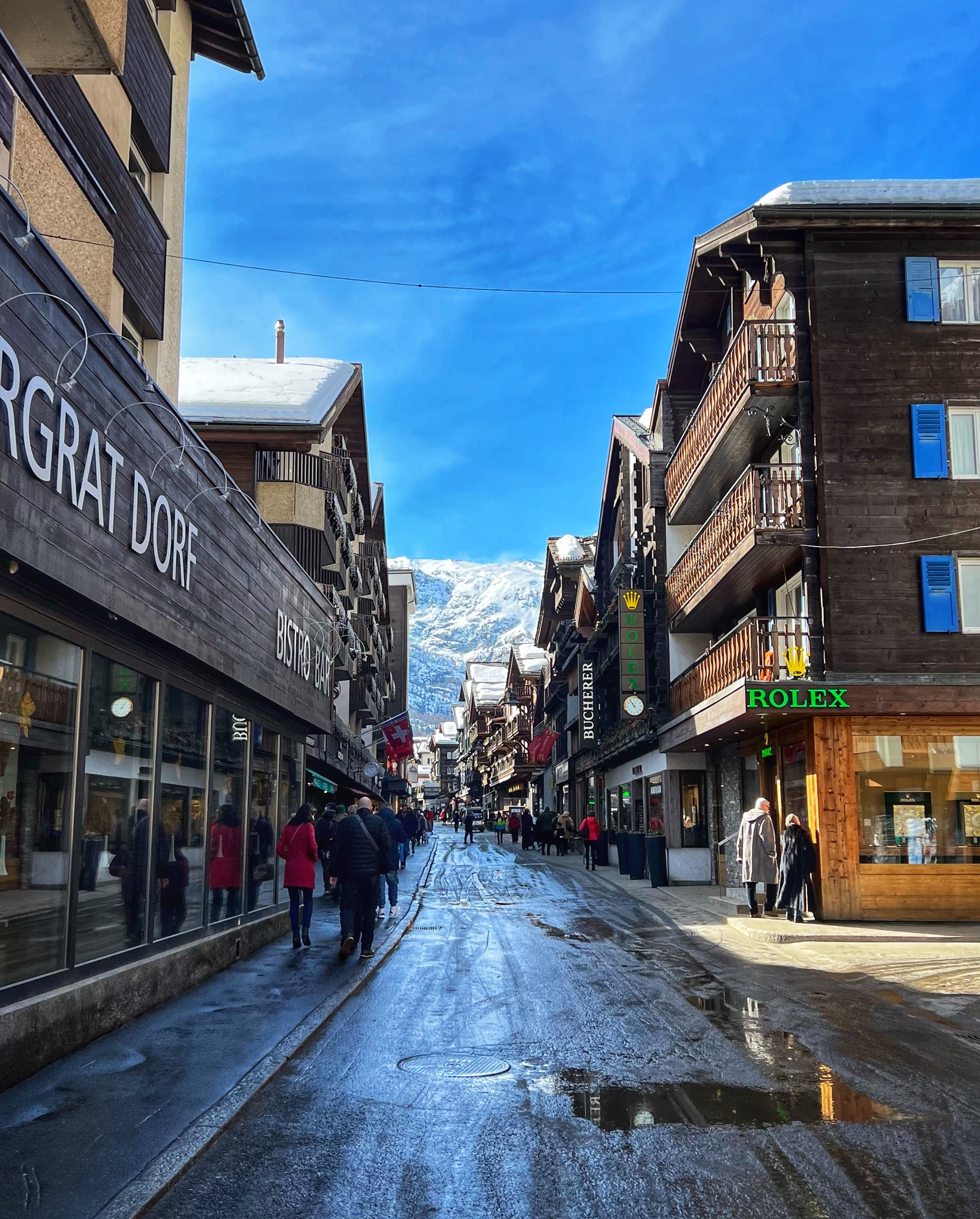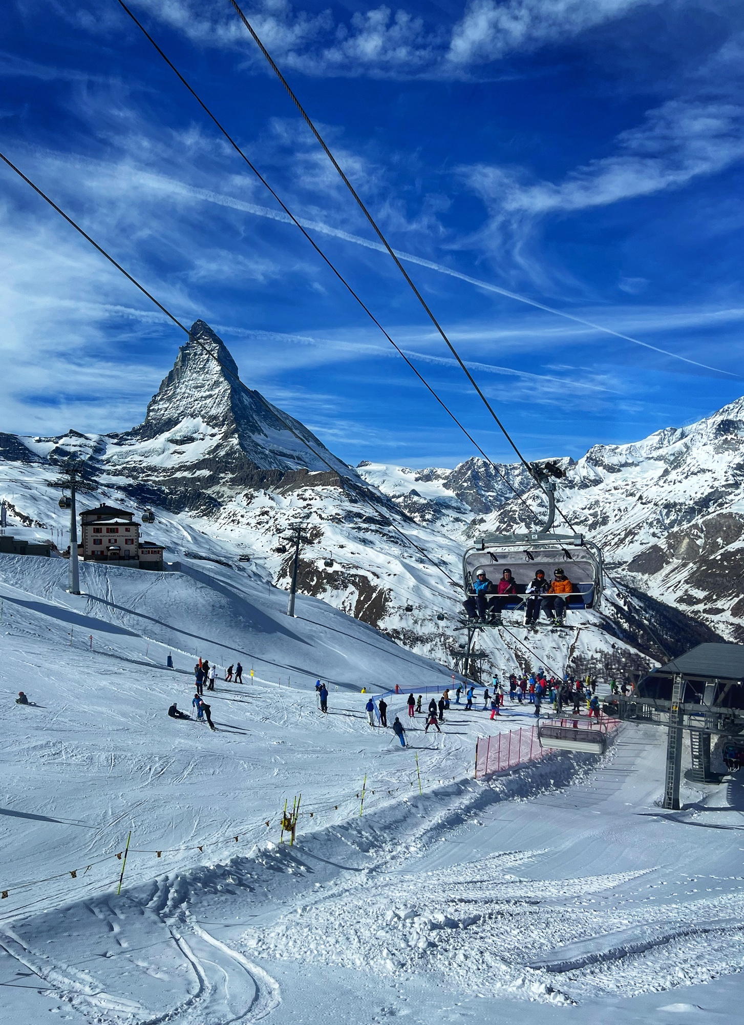 SKIING IN GRÄCHEN I would recommend skiing in Grächen for families or for more advanced adrenaline junkies. It’s not a huge resort, but that makes it more affordable. It has wonderful views and the village is really lovely, with plenty of eateries and après ski energy. I recommend finding a place to stay right in town so you can walk to the lift each morning and store your gear nearby, too. Grächen is nice because you can get there via car or train/bus, and it is only a short train ride to nearby Zermatt if you want to visit the Matterhorn, which is iconic as well. Plenty of people ski at both places, and after having seen Zermatt, I would definitely recommend skiing there as well. You can’t drive to Zermatt, but it makes a great day trip from Grächen, and that’s what we decided to do! Skiing there is definitely more of a splurge, though. Just something to keep in mind. For more info on Grächen skiing, click here.