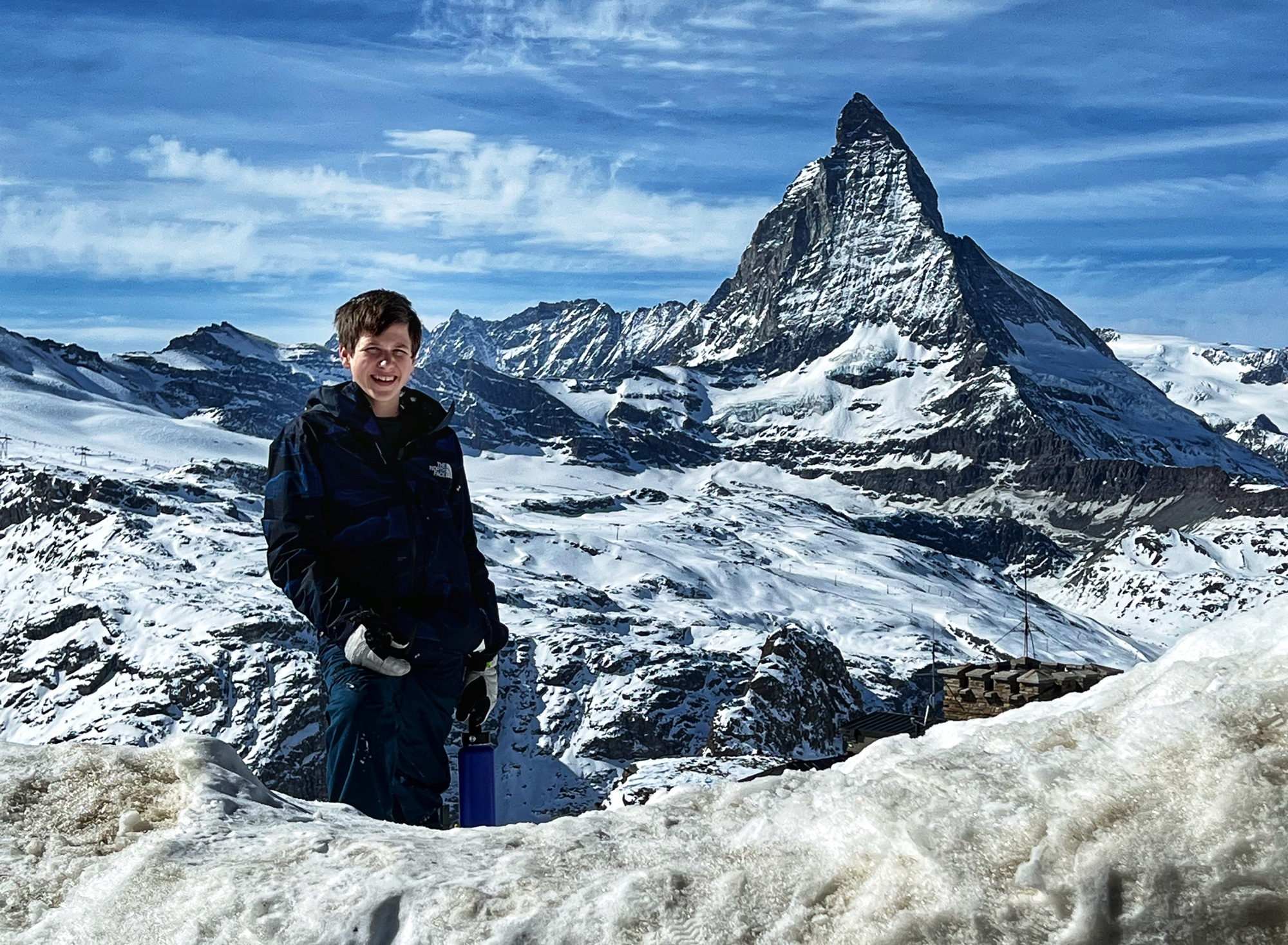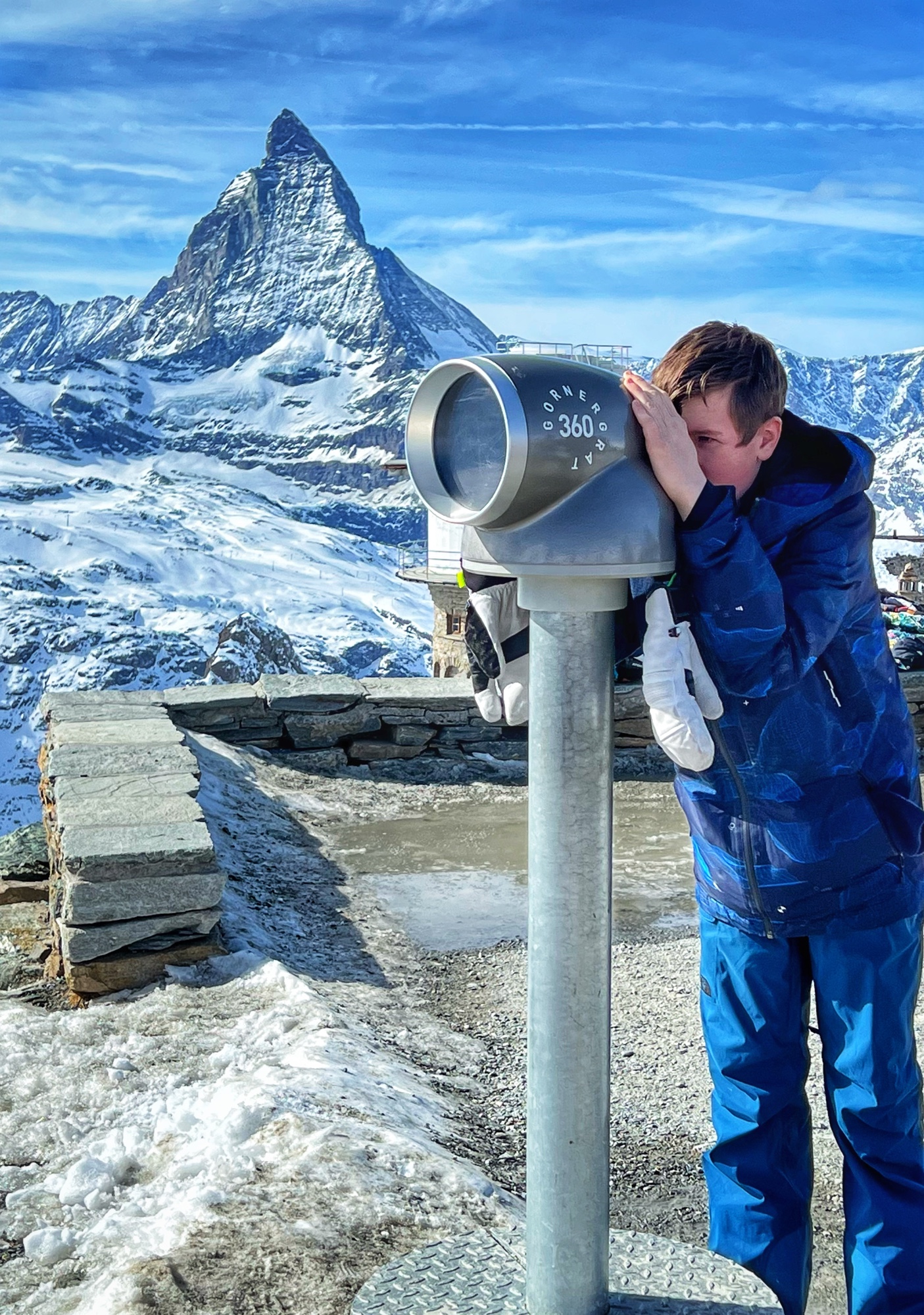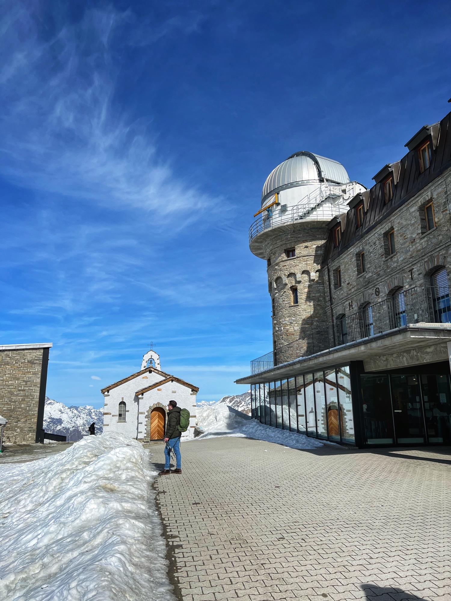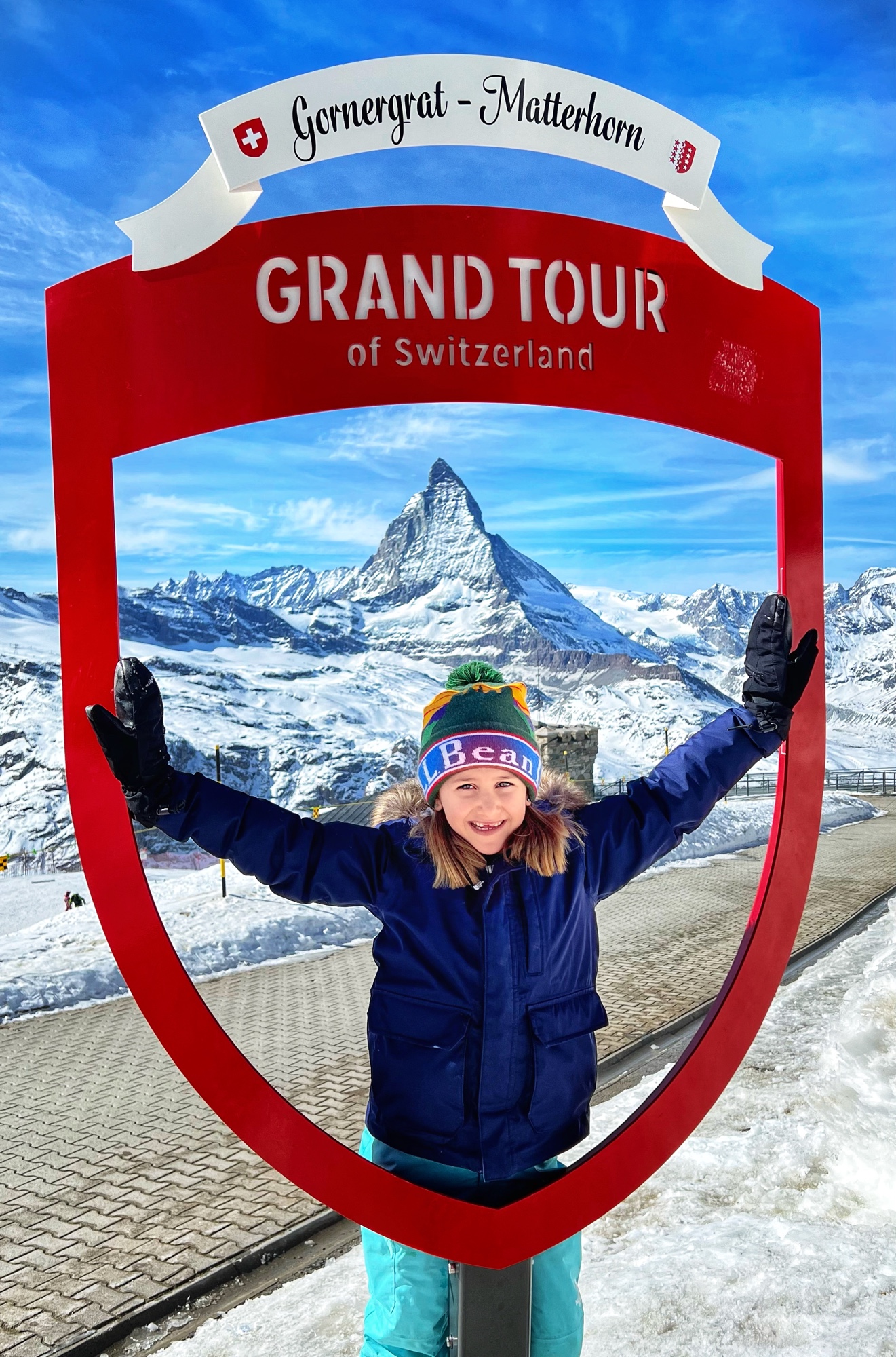We heard a man playing a trumpet (a horn to the Matterhorn) from the very top platform. It has a 360º view of the Swiss Alps and is just breathtaking! I recommend checking out the shops and even hanging out in the outside patio Panorama Self for lunch or a drink. Those views just don’t get old. I also recommend wearing snow gear because there is tons of snow for the kids to play in, even if they don’t ski!