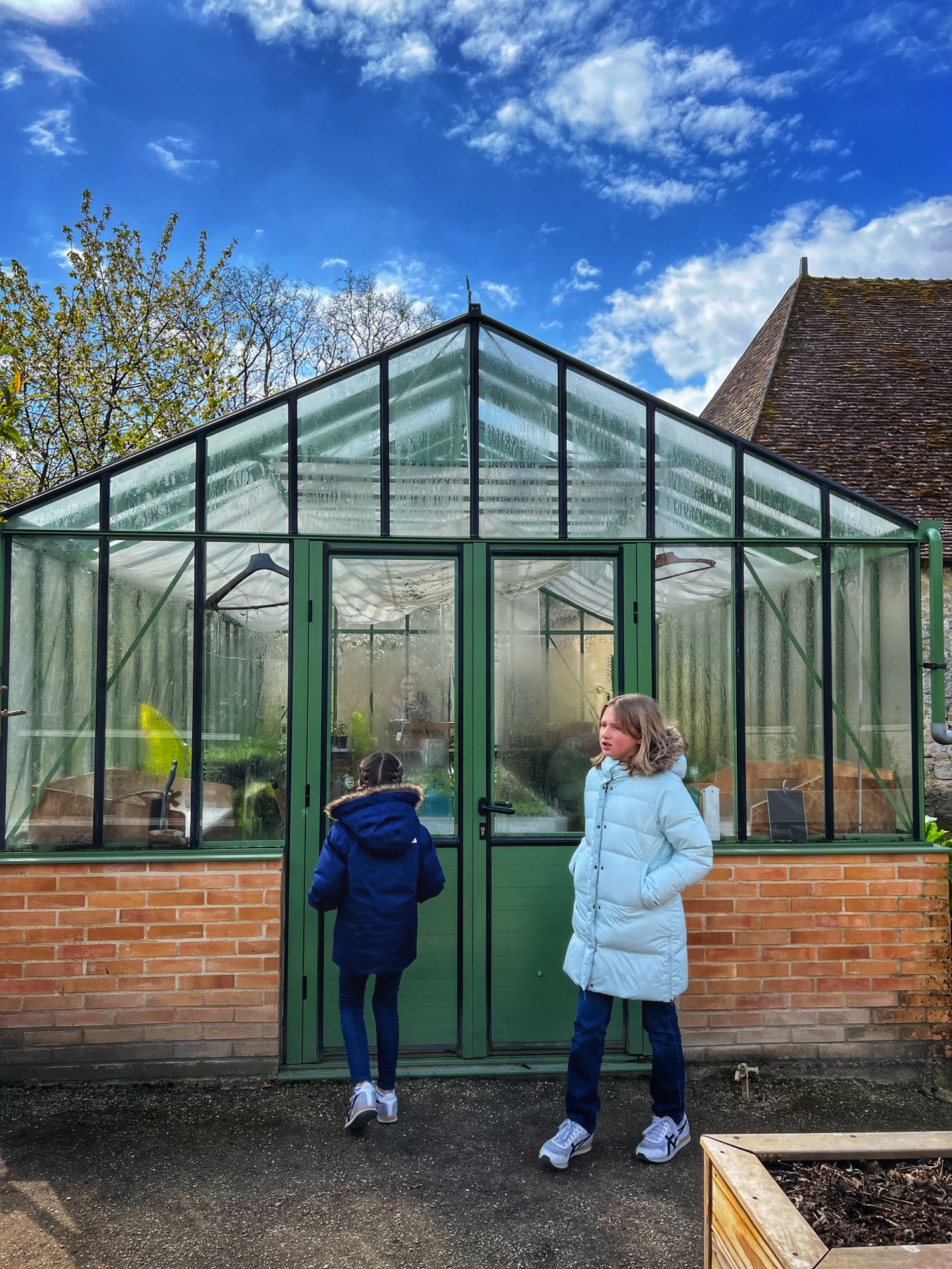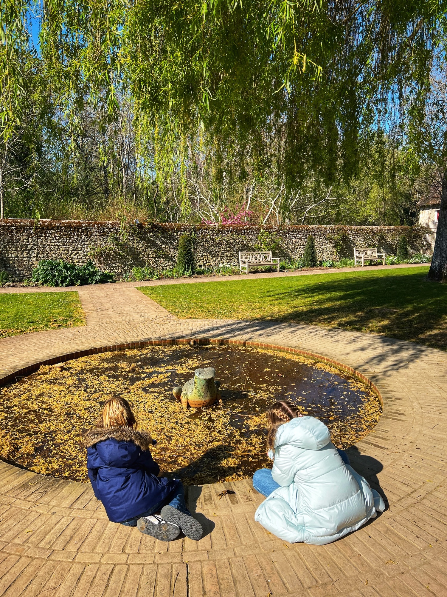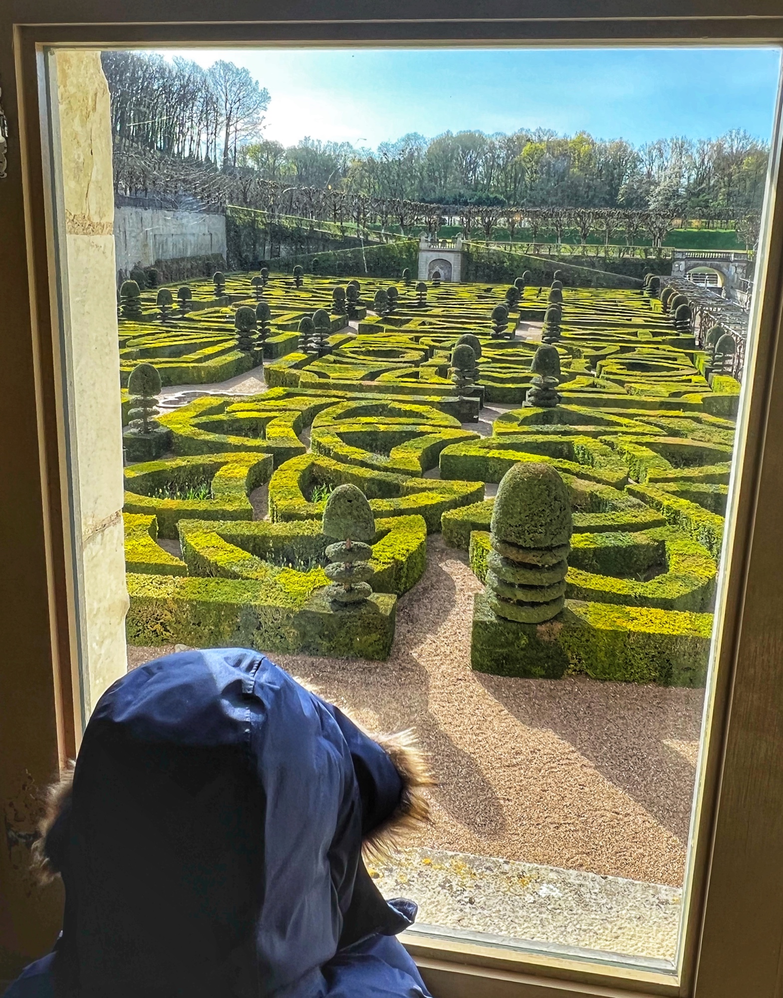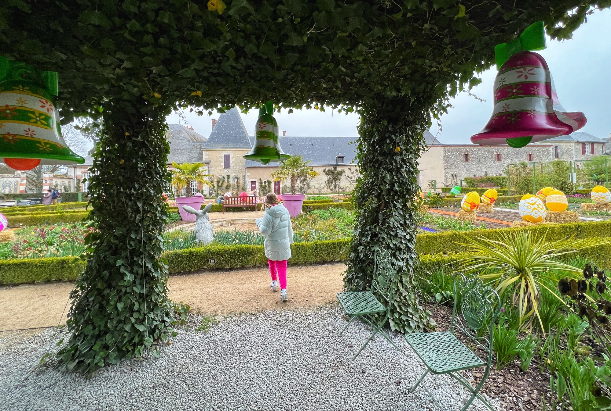 Outside we walked through all the gardens and had them all to ourselves in the morning. The girls loved the “Sun Garden,” as that is where the playground is and it leads to the Maze. I was most impressed by the vegetable and herb gardens and would love to return to see the trellises thick with blooms. We didn’t walk through the woods, but it is possible to take a short, elevated path through the nearby woodlands that ends at the Pavillion d’Audience. For a sunny day, it was bitter cold and we decided to take the most direct path through the gardens to save our finger tips!