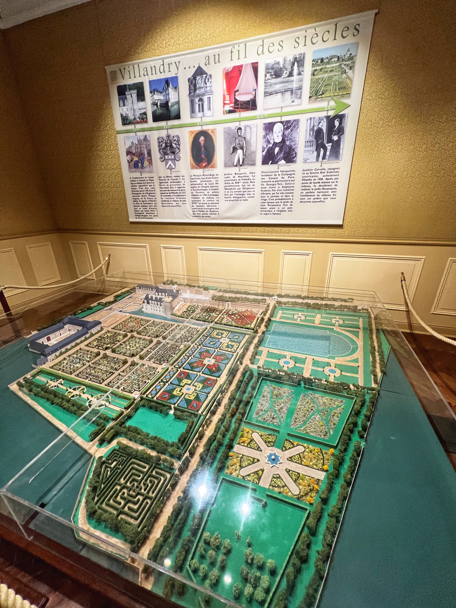 Especially noteworthy were the modesl of the castle and gardens, as well as the furniture, tapestries and fabric throughout. This chateau also was one of the few that had a real working fireplace, very rare in the French châteaus today. Keep an eye out for the painted cloud ceiling in Prince Jerome’s bedroom as well as the statue of St. Francis of Asisi. Don’t forget to peek out all the windows to see the gardens from various angles.