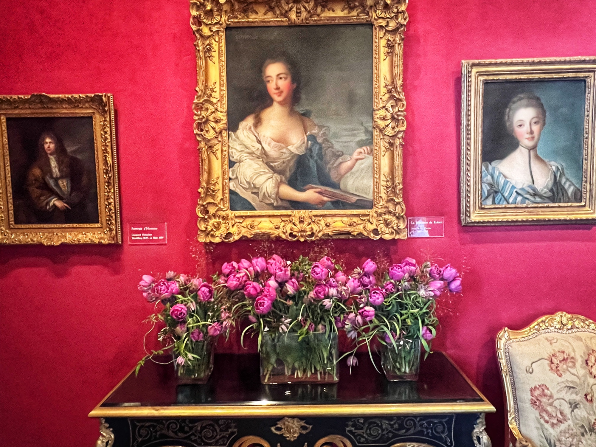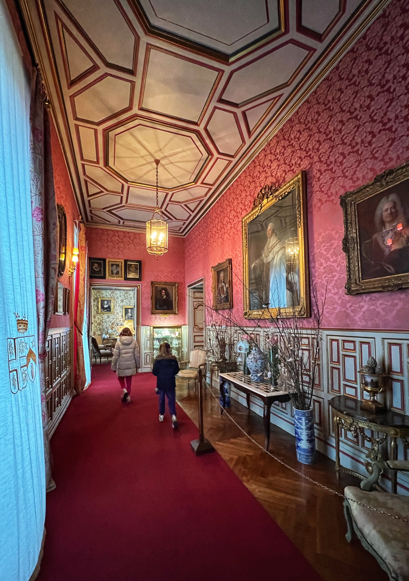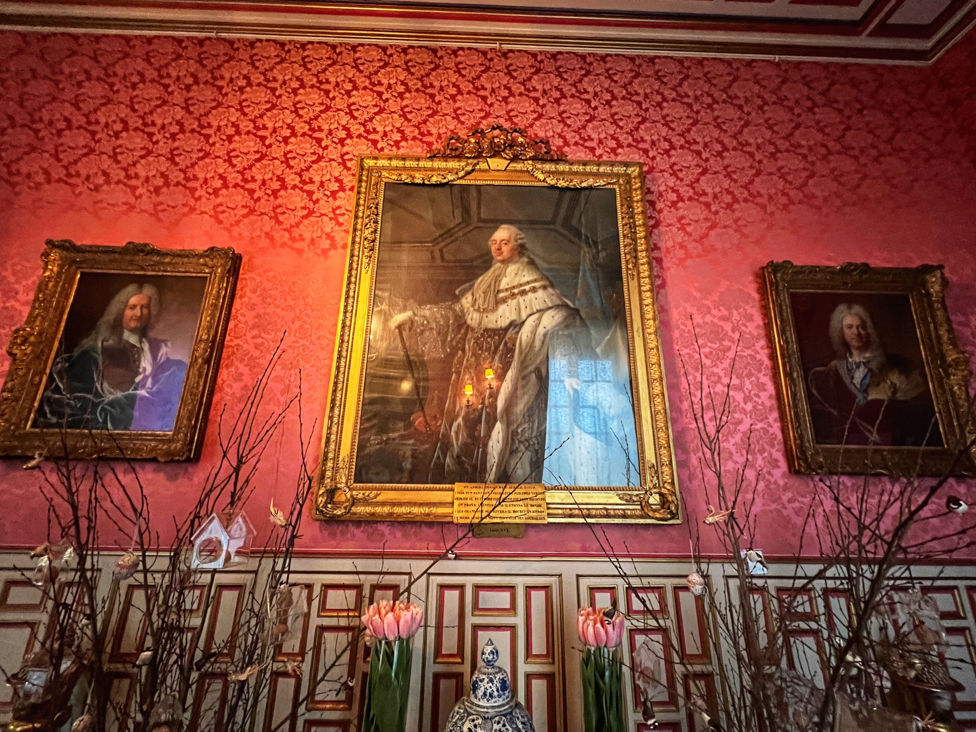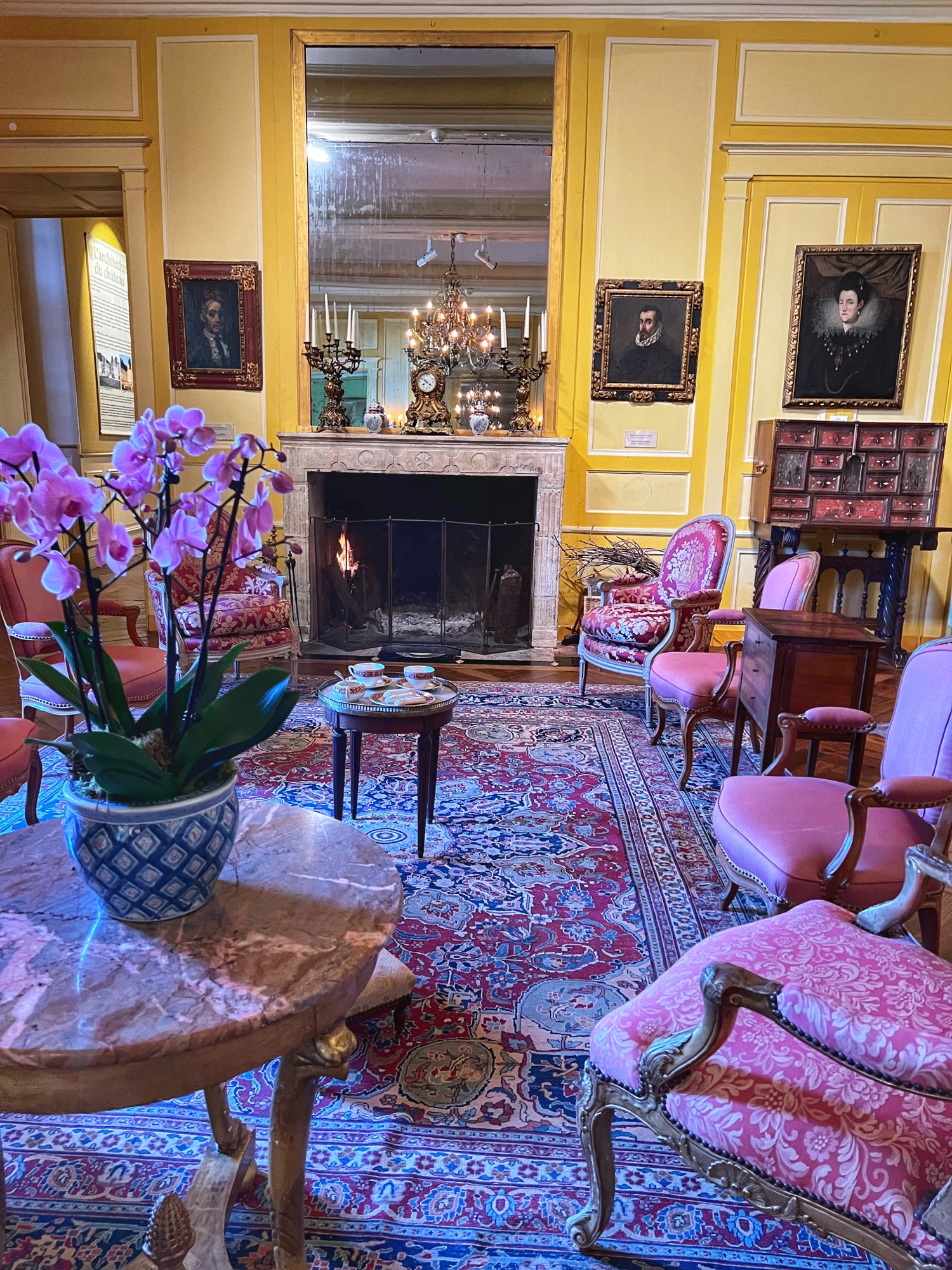 Colorful rooms were filled with immense portraits with the most impossibly opulent frames. Seriously – check out that frame! What a work of art, JUST the frame! This castle was filled to the brim with fresh flowers in every single room, too. We noticed this as well in a couple of the other castles but here it was extraordinary.