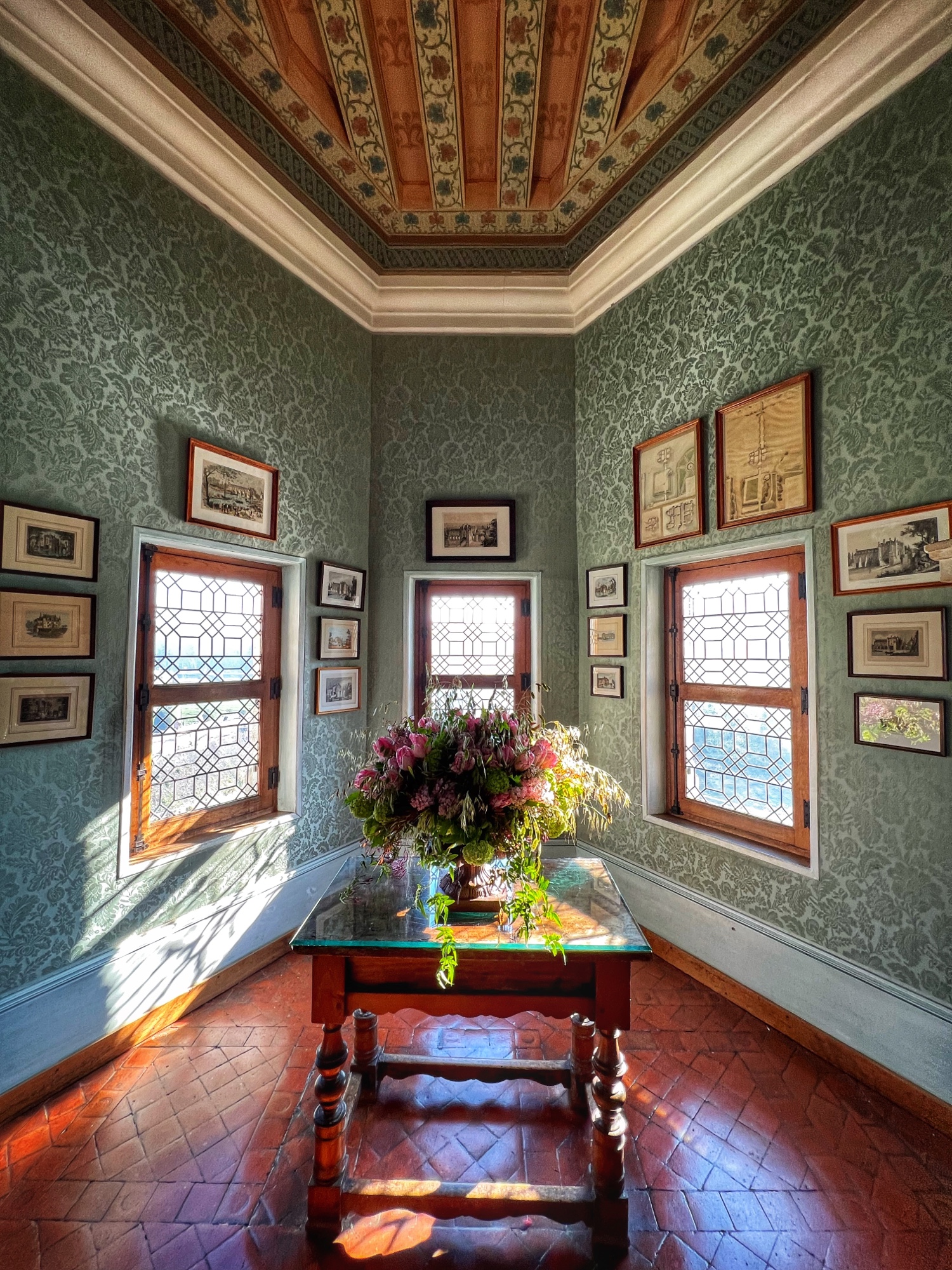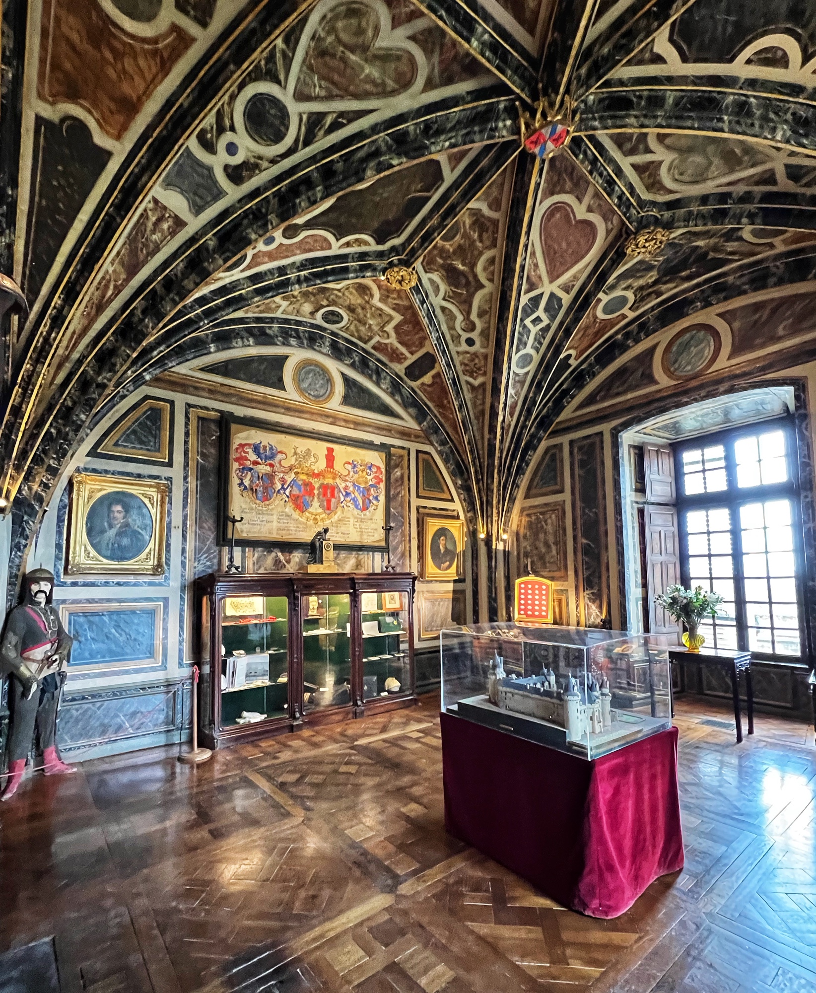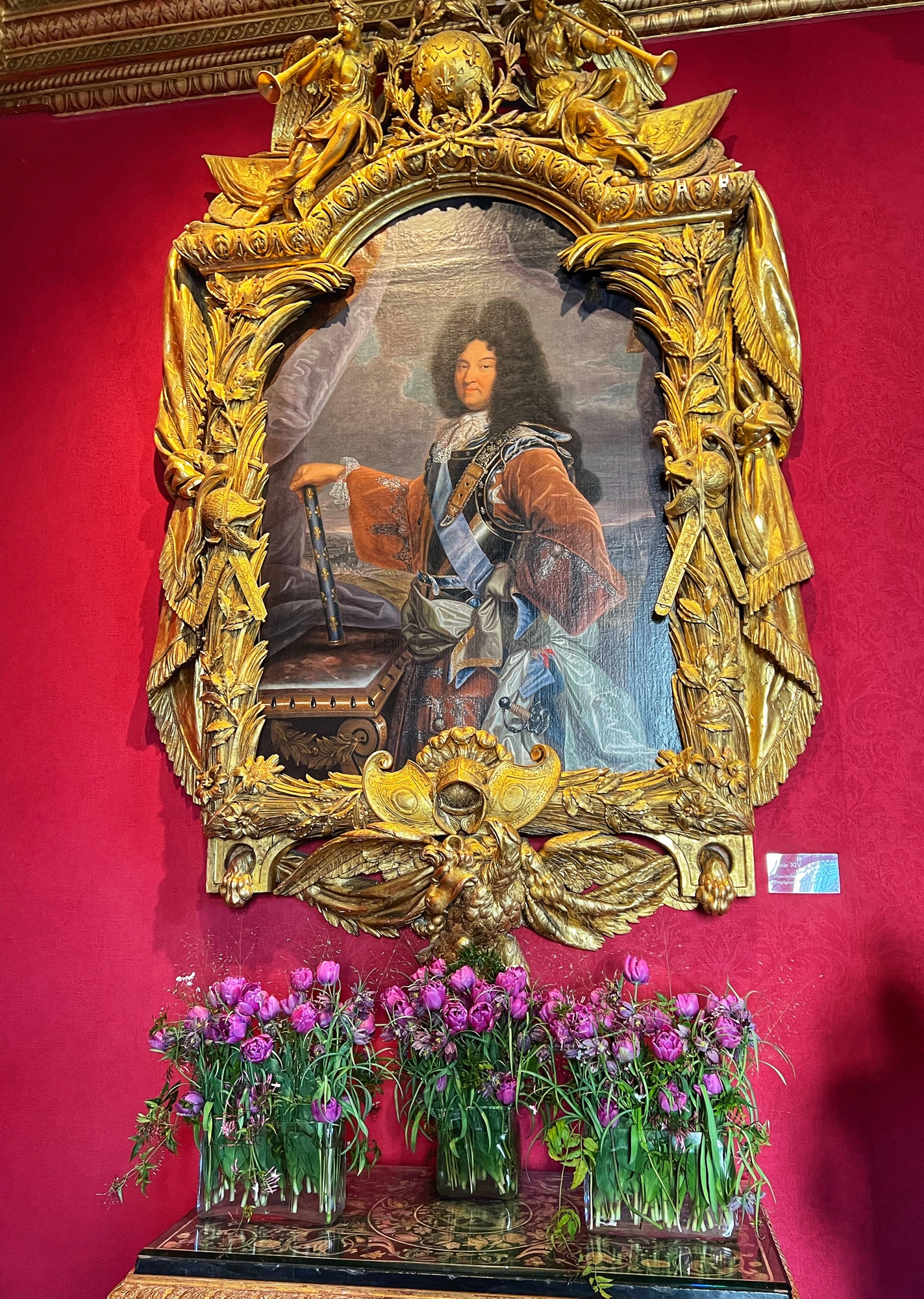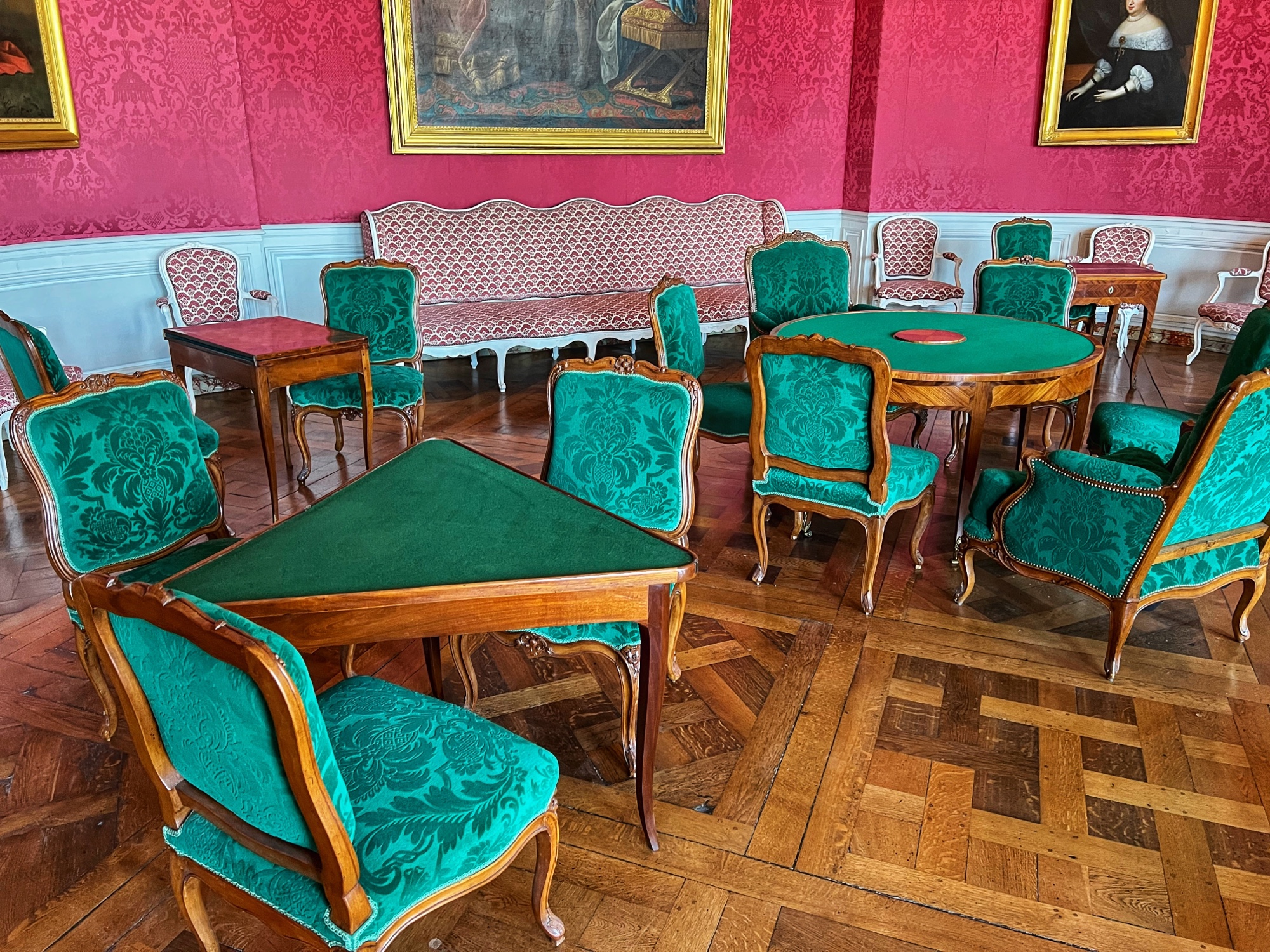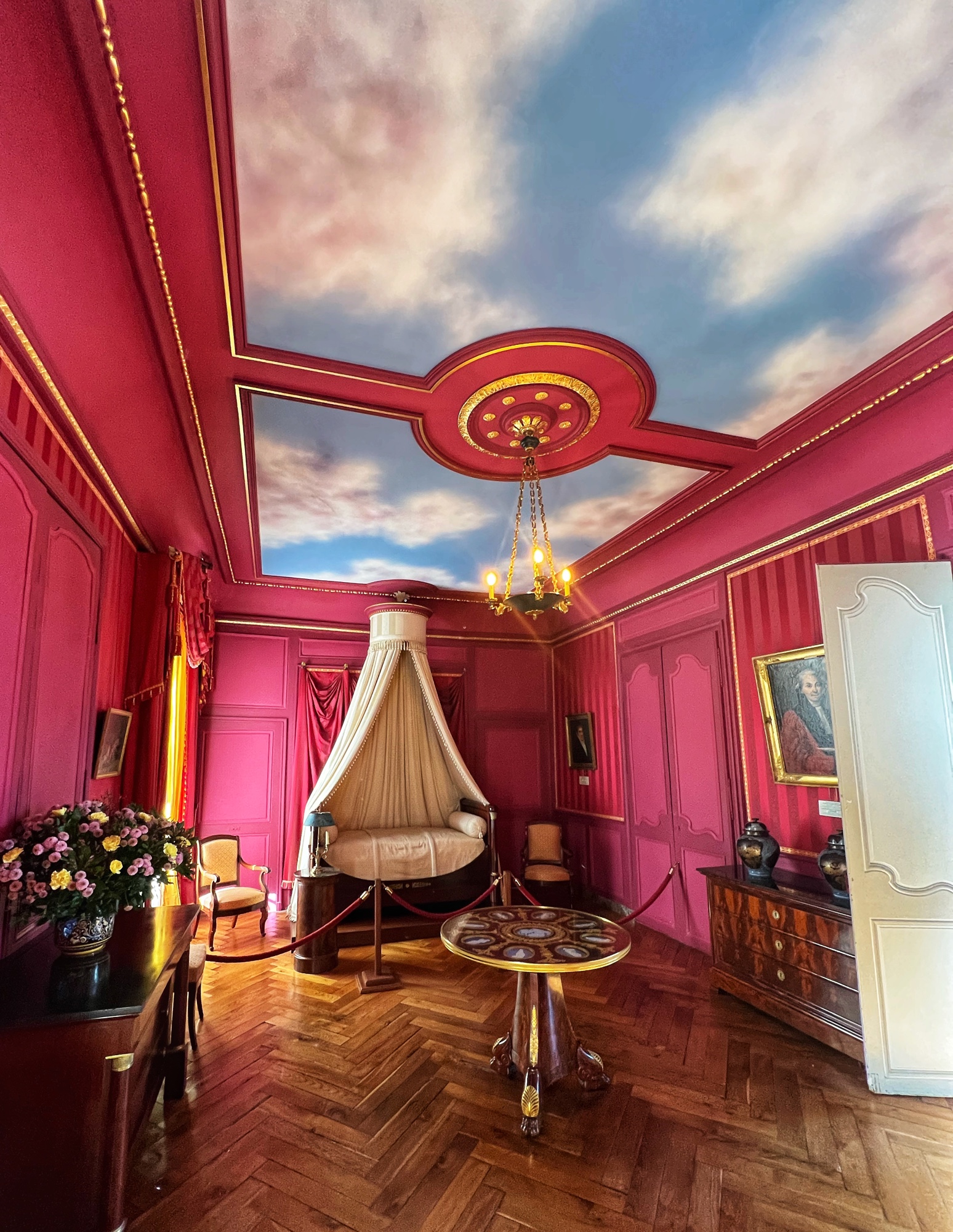 Colorful rooms were filled with immense portraits with the most impossibly opulent frames. Seriously – check out that frame! What a work of art, JUST the frame! This castle was filled to the brim with fresh flowers in every single room, too. We noticed this as well in a couple of the other castles but here it was extraordinary.