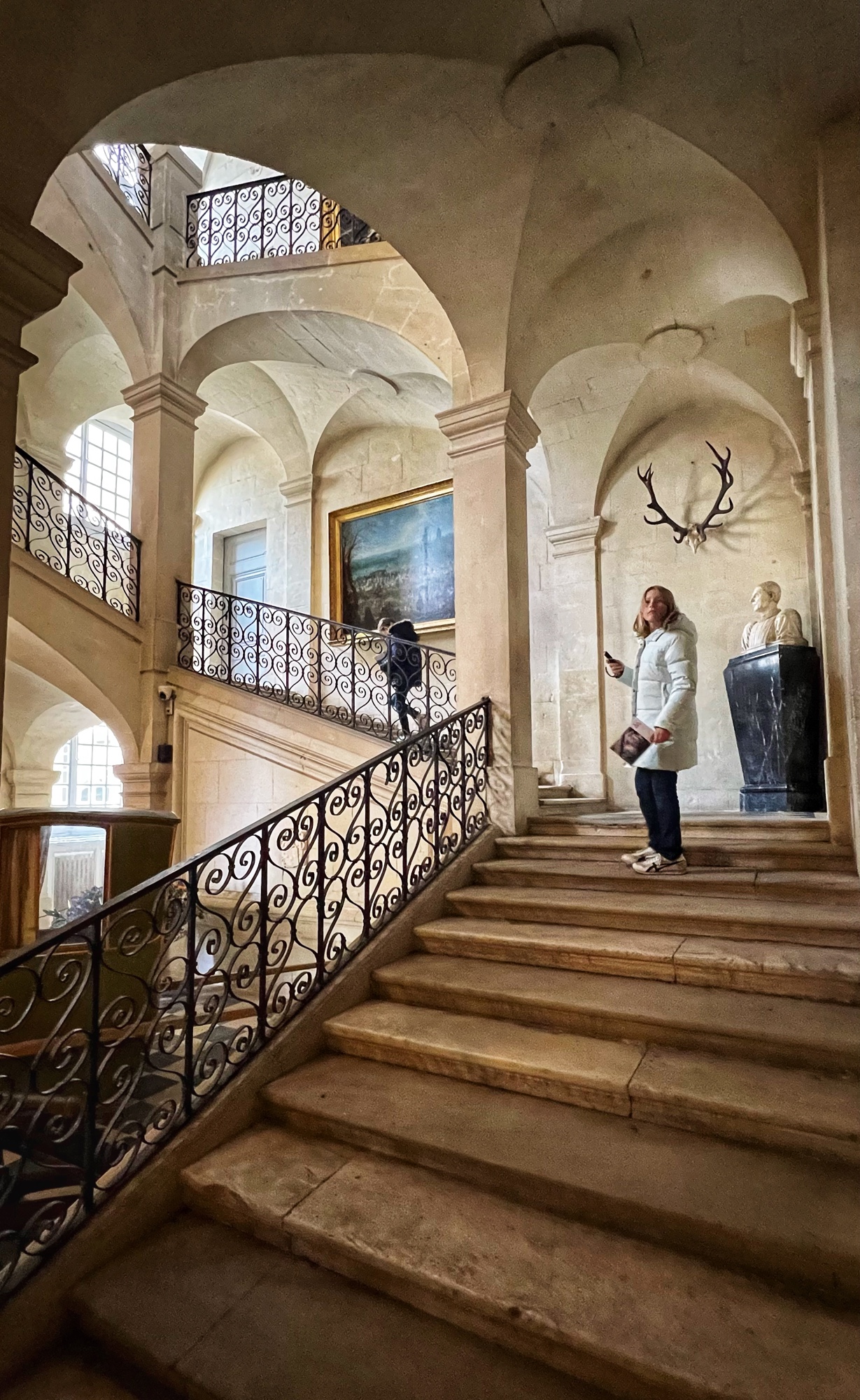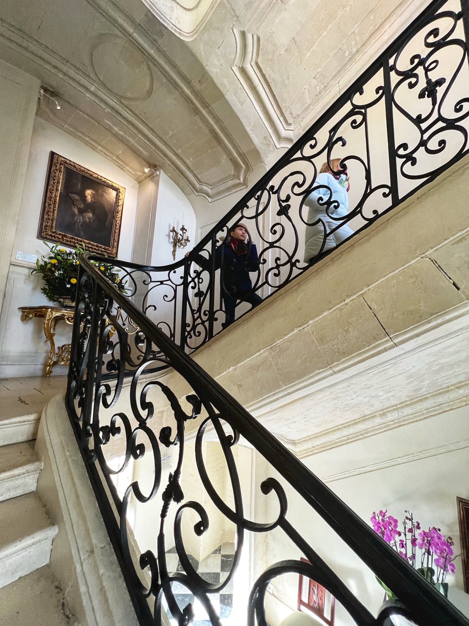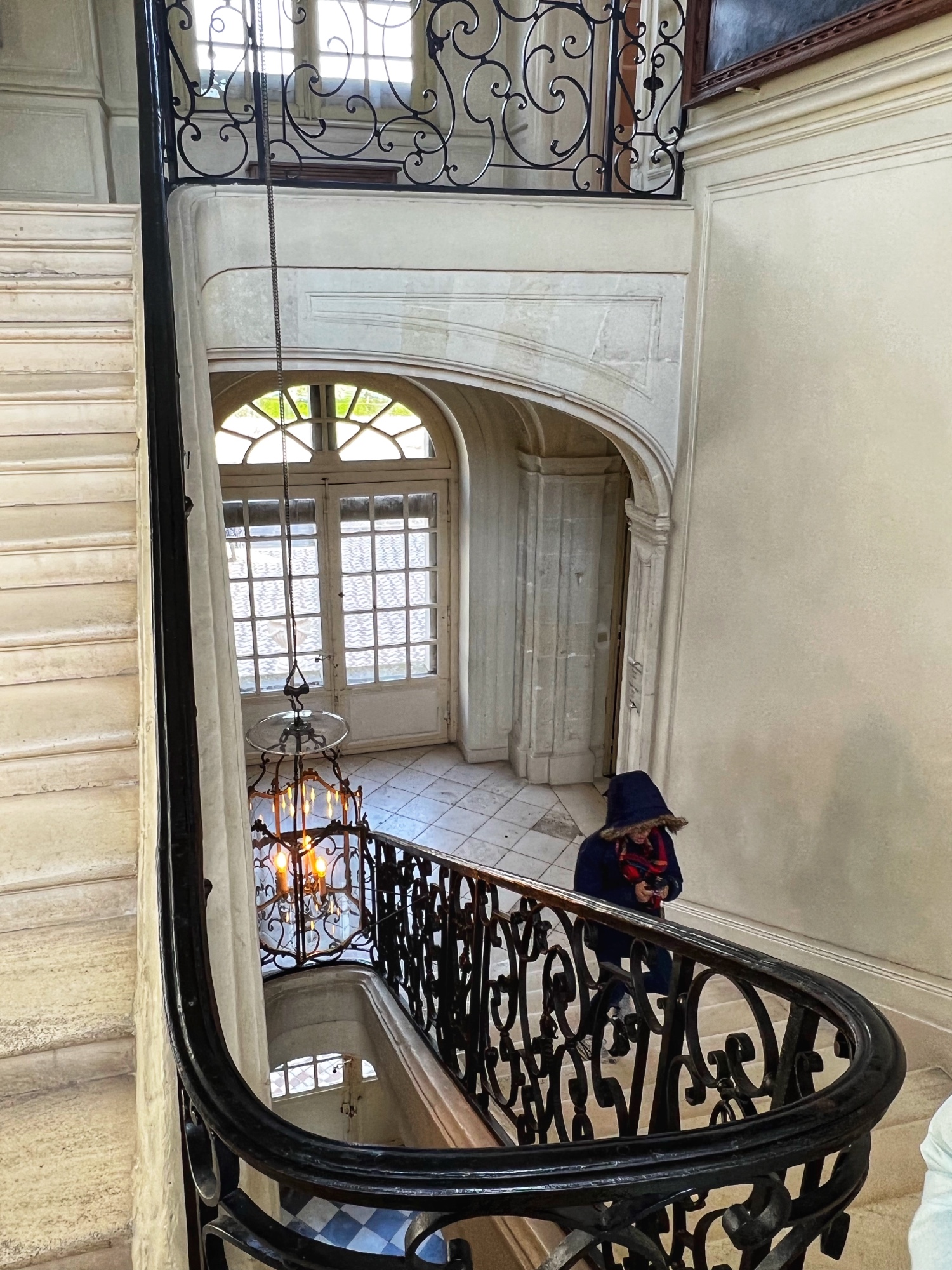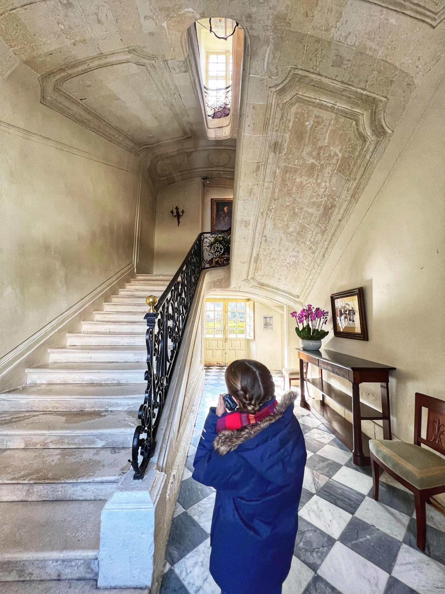 The open staircases are extra special as well. Take a look out the windows every chance you get as each view provides a new perspective on the château through the courtyard.