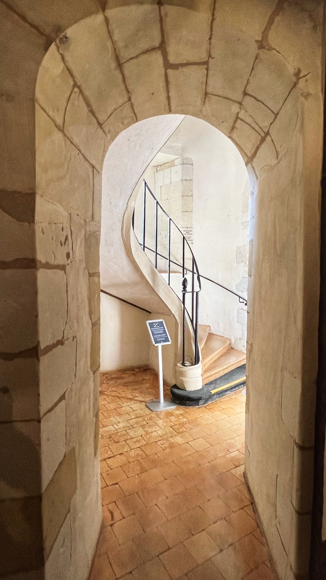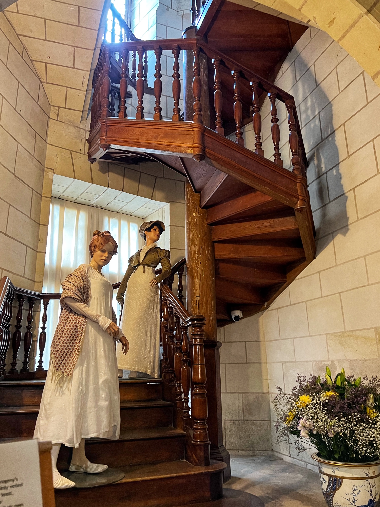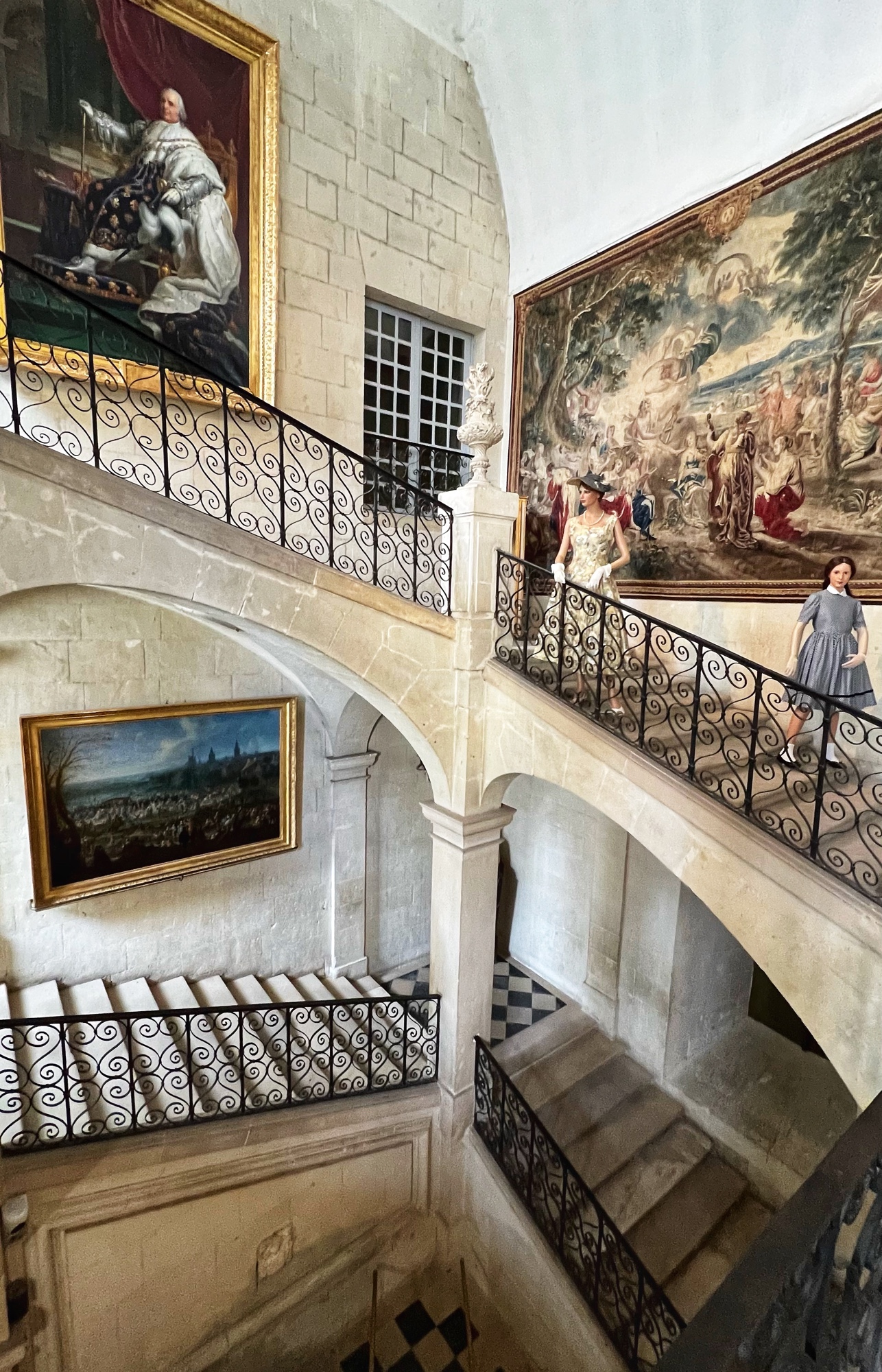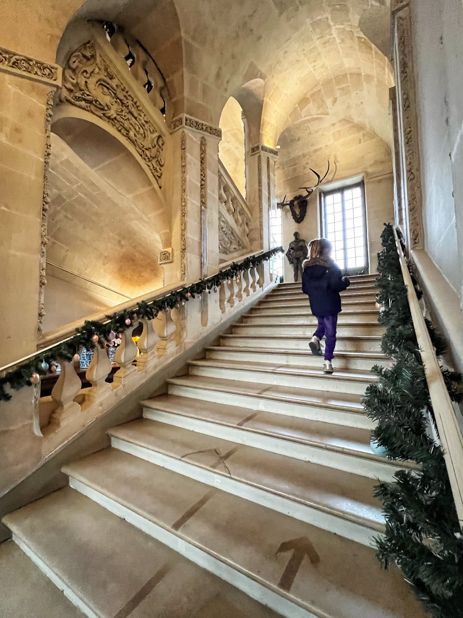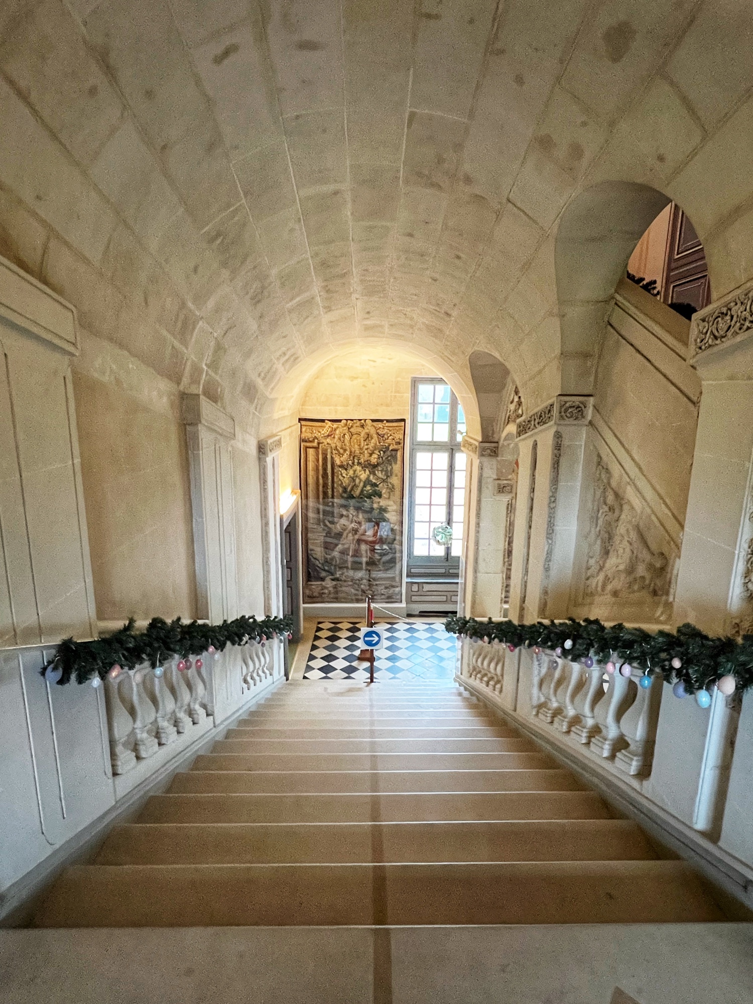 The open staircases are extra special as well. Take a look out the windows every chance you get as each view provides a new perspective on the château through the courtyard.