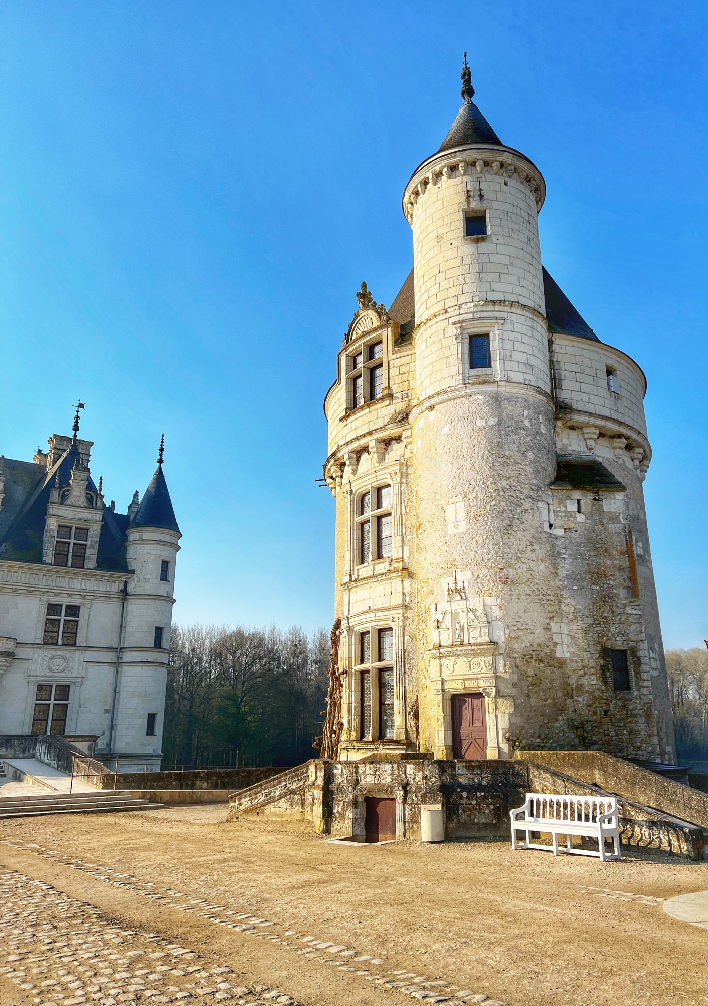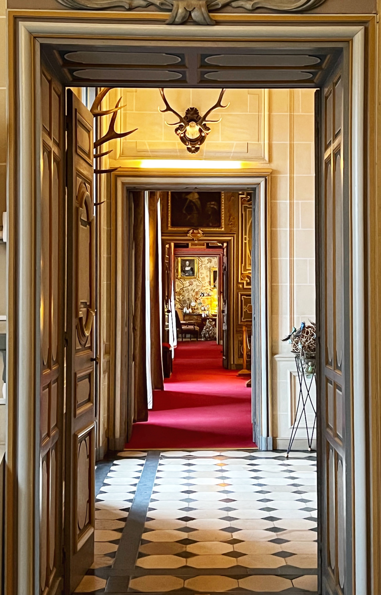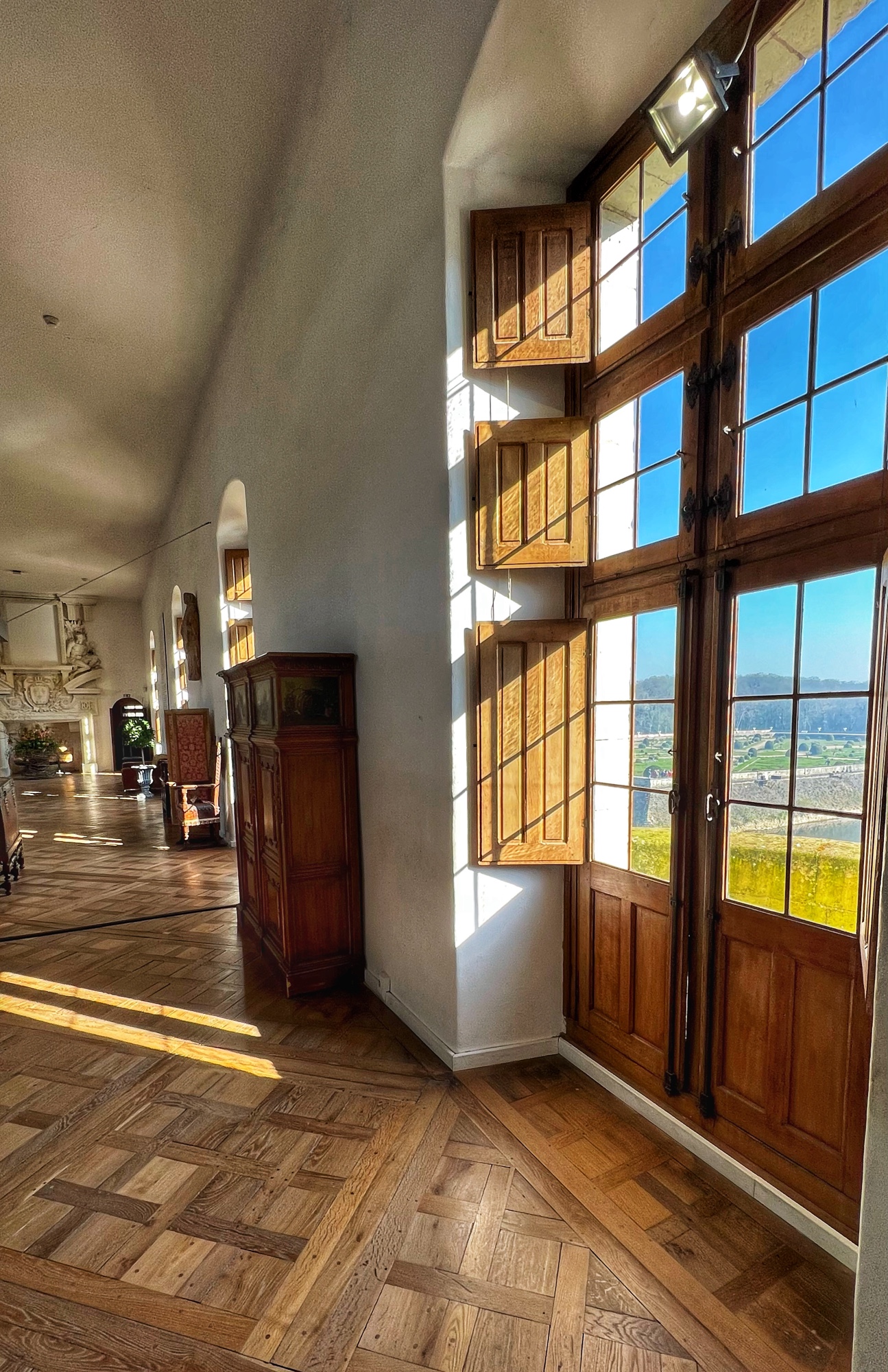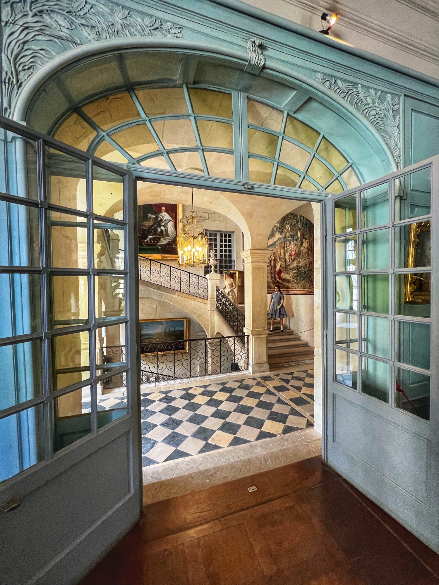 The open staircases are extra special as well. Take a look out the windows every chance you get as each view provides a new perspective on the château through the courtyard.