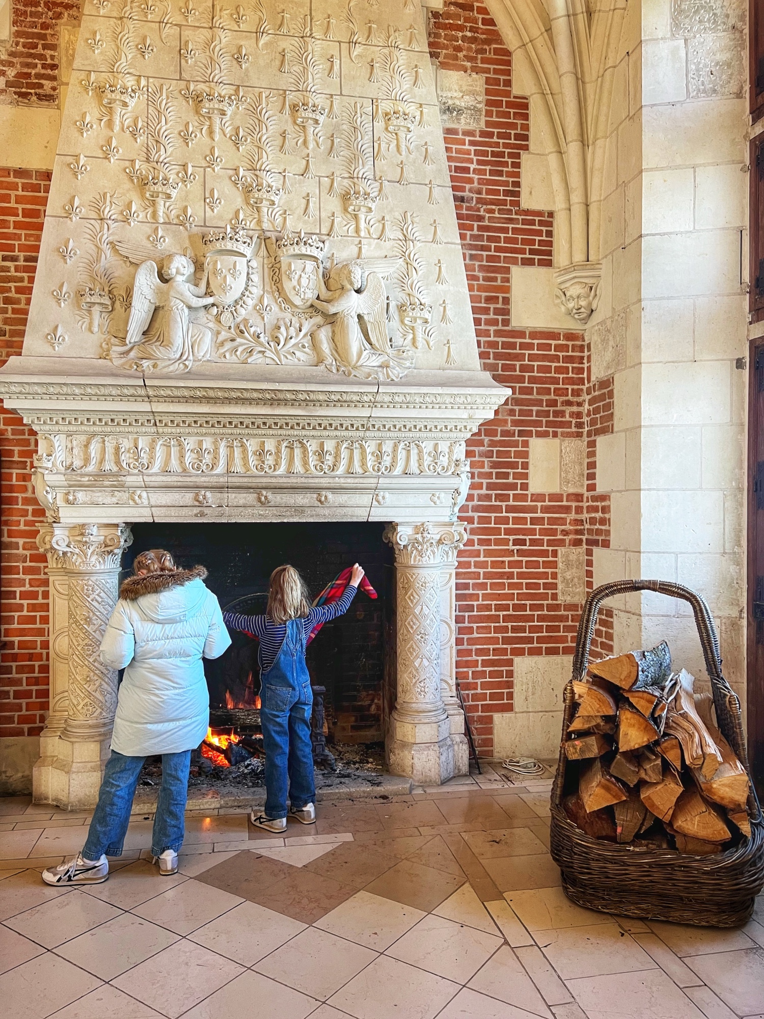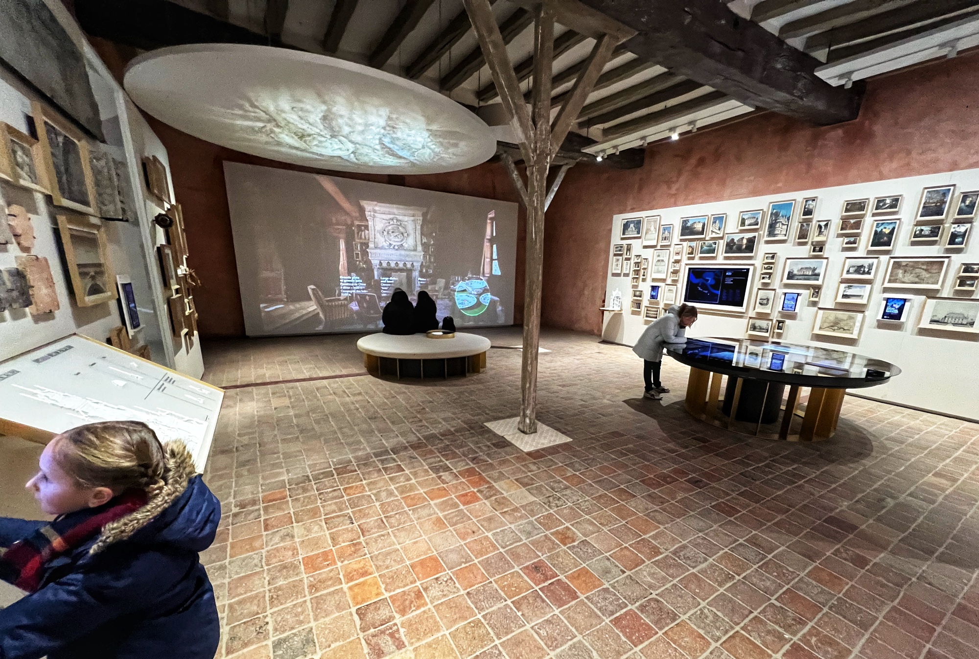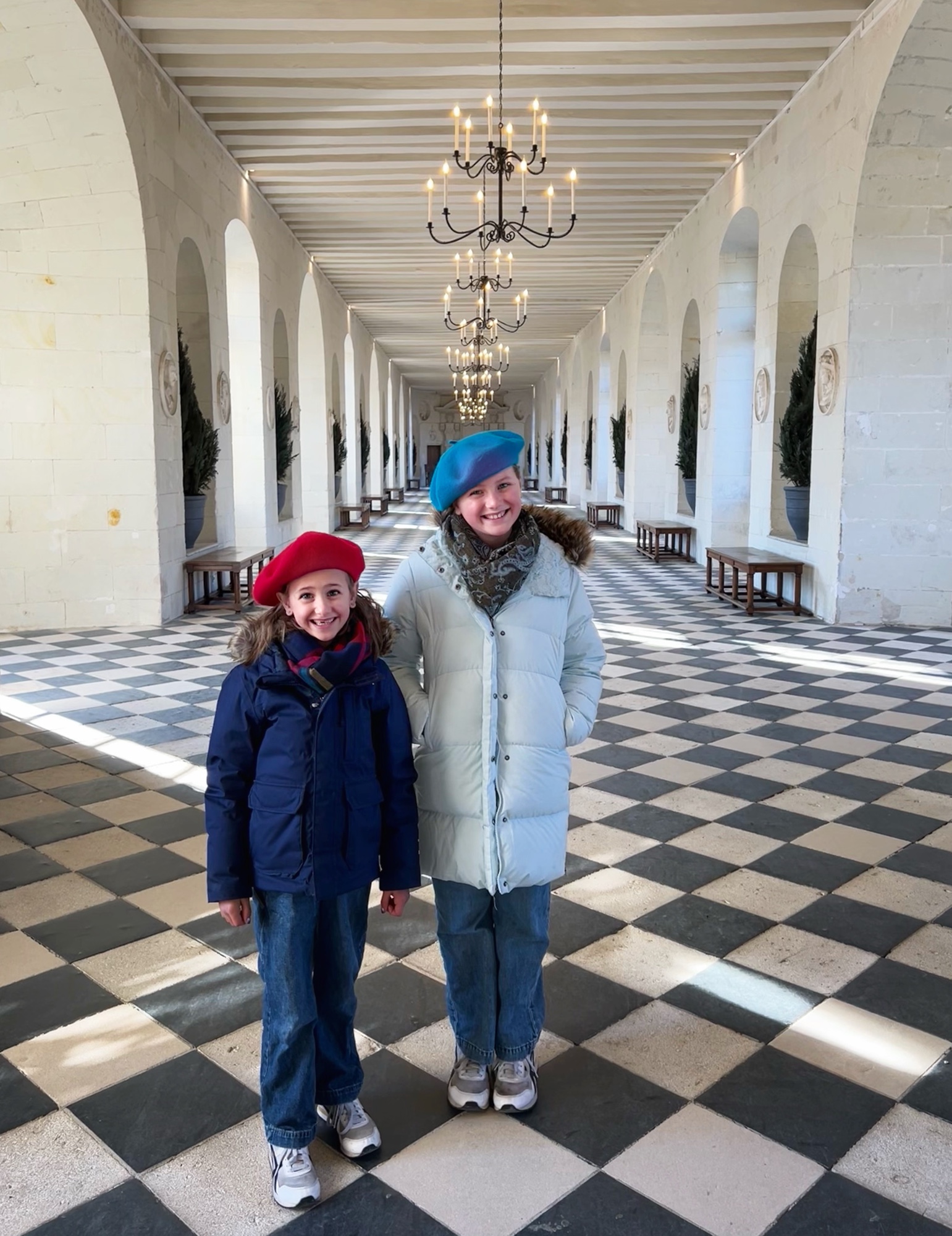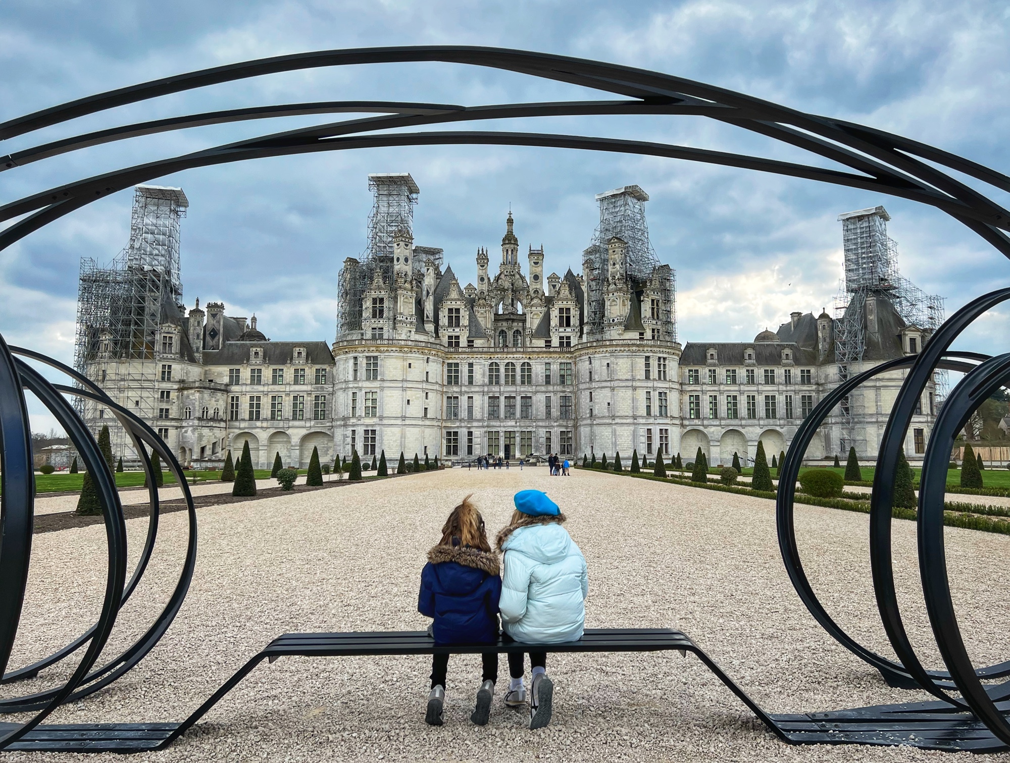 The Histopad was a big hit at Chambord for the kids, bringing the castle to life in each room. If you have never seen a Histopad before, the screen shows what the room would have looked like hundreds of years ago. Also there is a little challenge where you can find hidden coins in the virtual rooms and collect them all for the chance to make silly selfies like this one of Leonardo DaVinci. Some Histopads have audio and some don’t. This particular Histopad had headphones and an audioguide. There was also a room dedicated to a series of informational films with screens in various languages. It was great! The kids also enjoyed the little riddle book they worked on together (in French only) but I’m not sure it’s worth €4. I love Chambord, but I wasn’t impressed with how they nickel and dime patrons. At many castles the audioguides and Histopads are included in the ticket price. We always appreciated that! Another option if you don’t want to tour the castle yourself is to join a tour. Of course this is an extra cost, but if you don’t have children with you, there is no better way to get an earful of history than from a tour guide. With kids, though, I think the Histopad and riddle booklet are the way to go. It certainly kept my girls engaged!