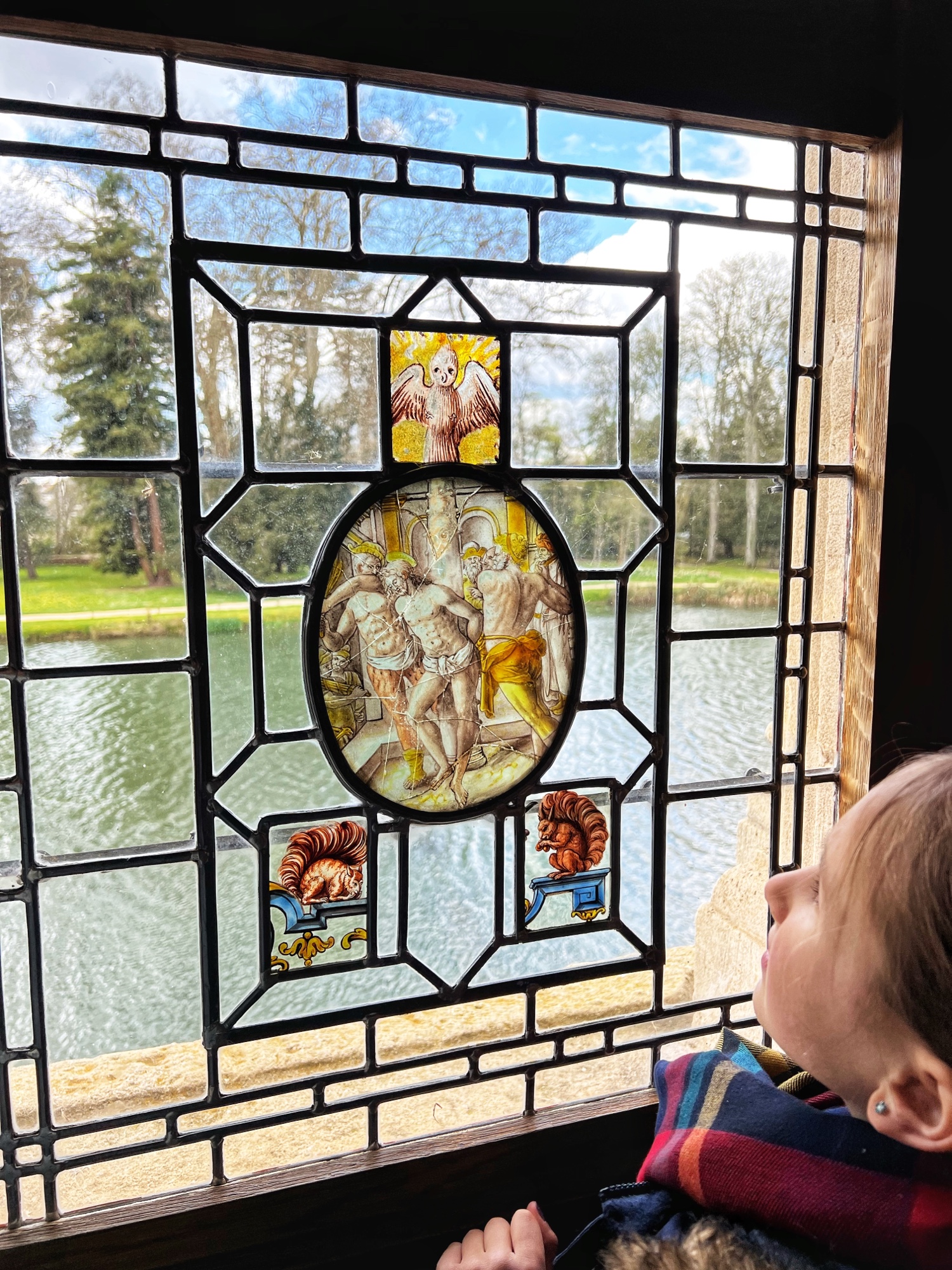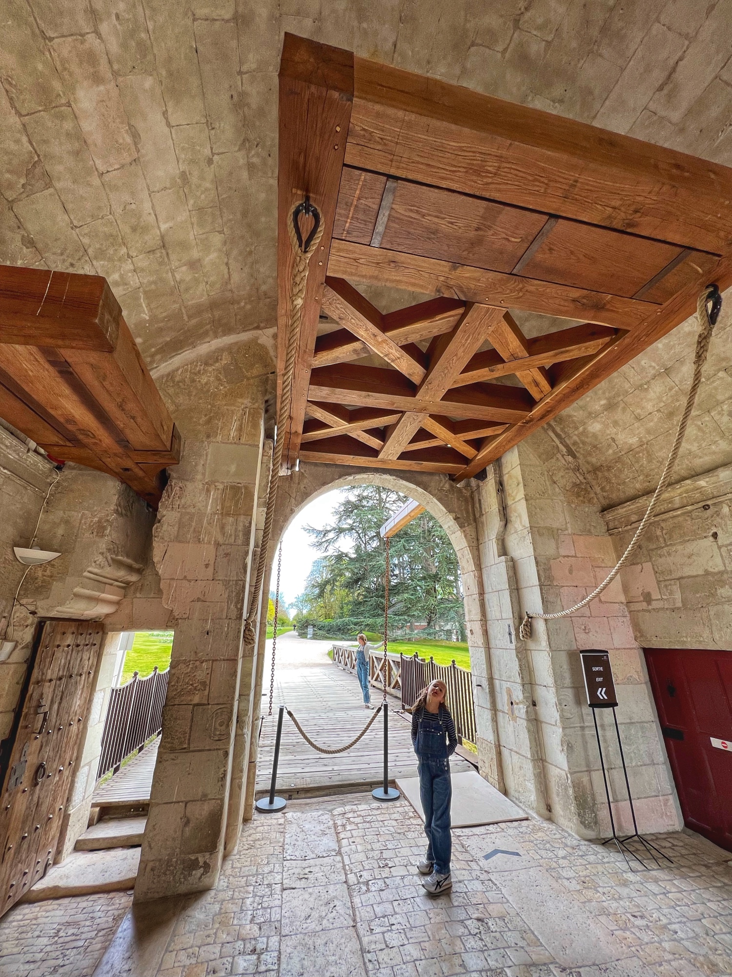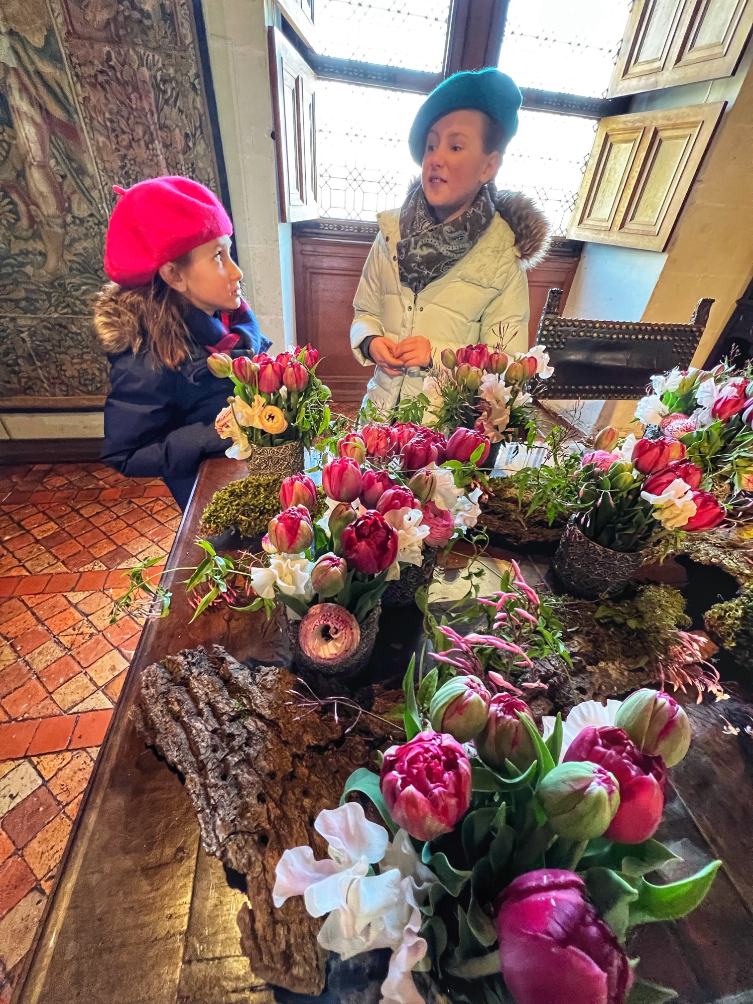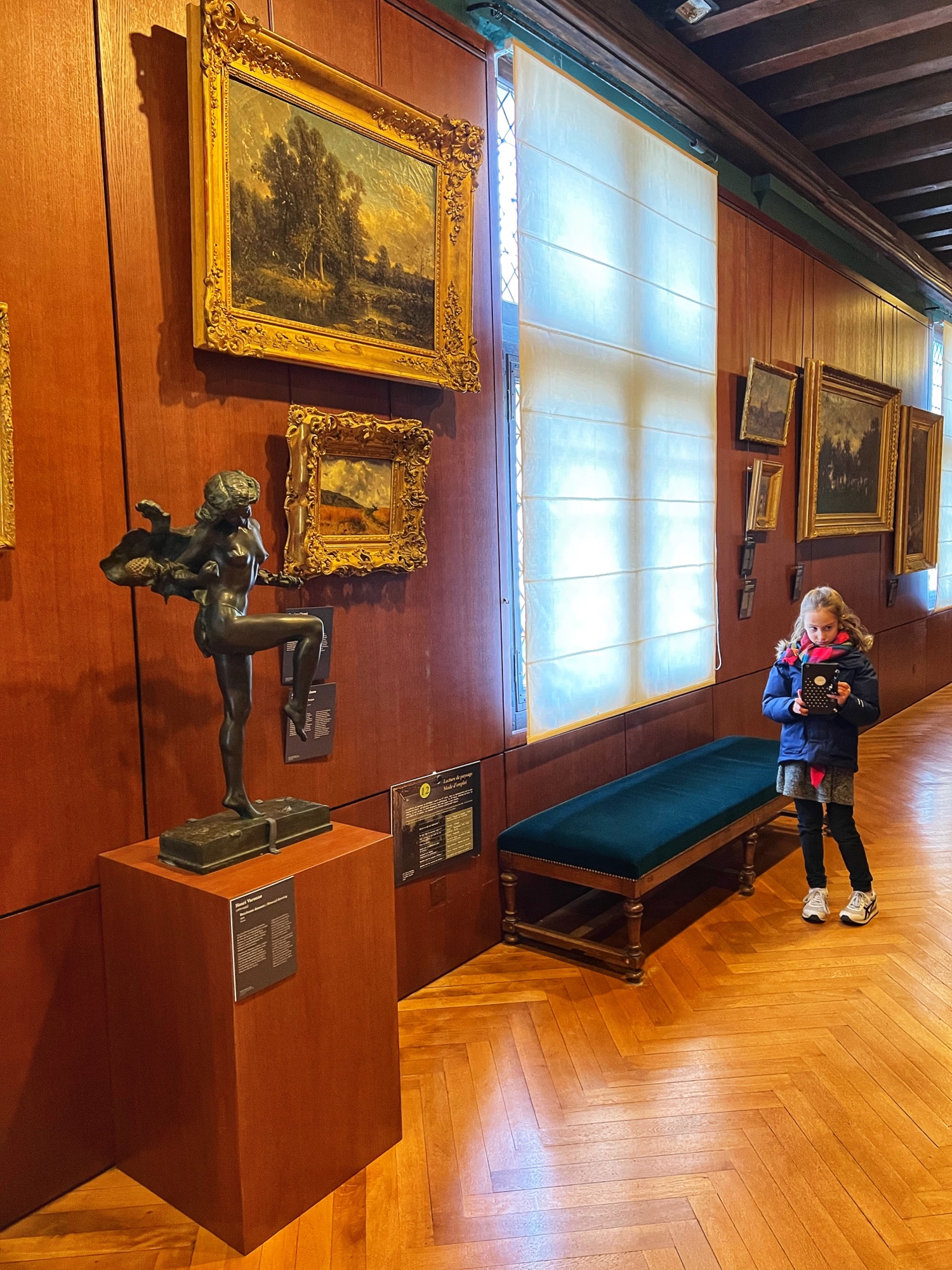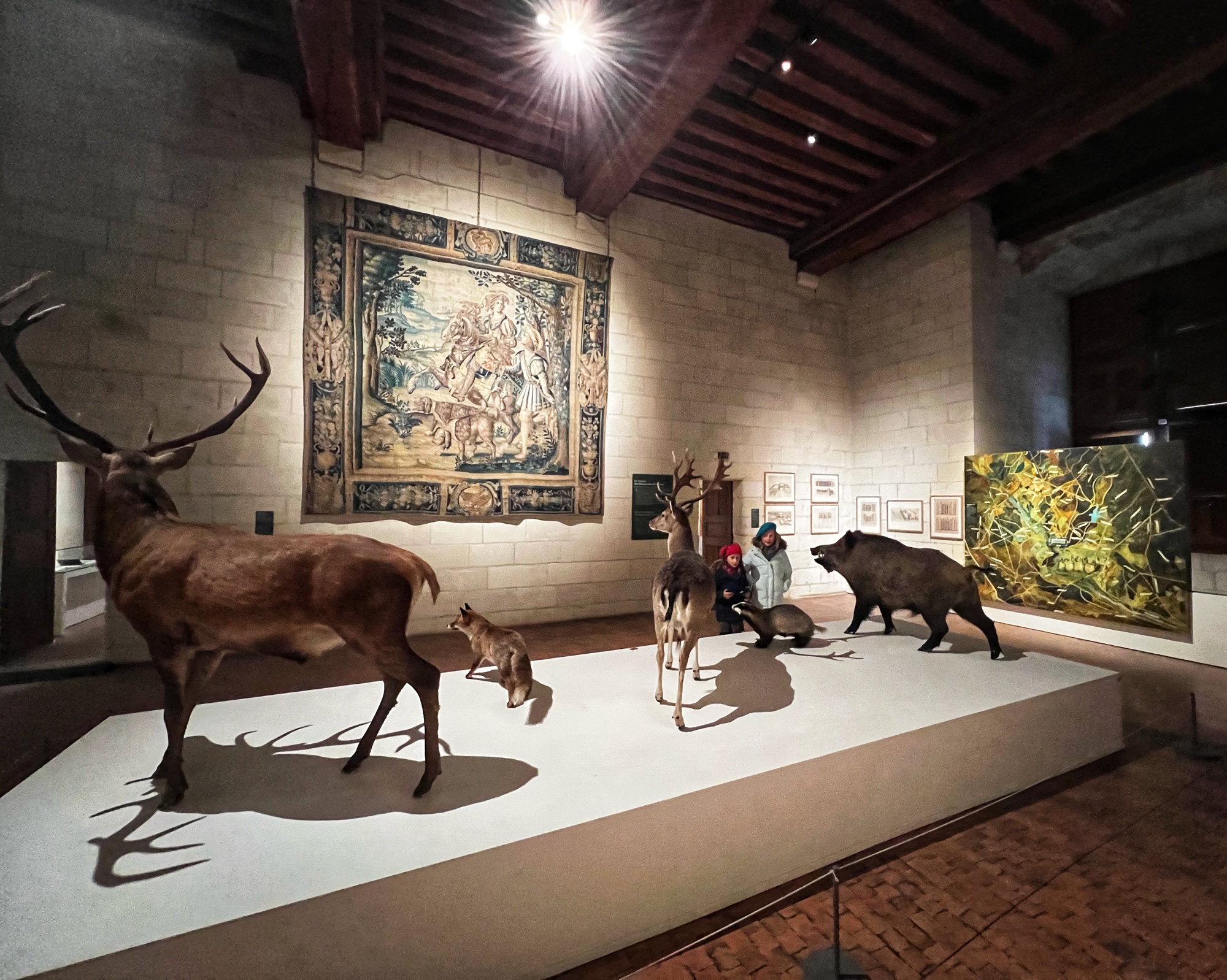 The Histopad was a big hit at Chambord for the kids, bringing the castle to life in each room. If you have never seen a Histopad before, the screen shows what the room would have looked like hundreds of years ago. Also there is a little challenge where you can find hidden coins in the virtual rooms and collect them all for the chance to make silly selfies like this one of Leonardo DaVinci. Some Histopads have audio and some don’t. This particular Histopad had headphones and an audioguide. There was also a room dedicated to a series of informational films with screens in various languages. It was great! The kids also enjoyed the little riddle book they worked on together (in French only) but I’m not sure it’s worth €4. I love Chambord, but I wasn’t impressed with how they nickel and dime patrons. At many castles the audioguides and Histopads are included in the ticket price. We always appreciated that! Another option if you don’t want to tour the castle yourself is to join a tour. Of course this is an extra cost, but if you don’t have children with you, there is no better way to get an earful of history than from a tour guide. With kids, though, I think the Histopad and riddle booklet are the way to go. It certainly kept my girls engaged!