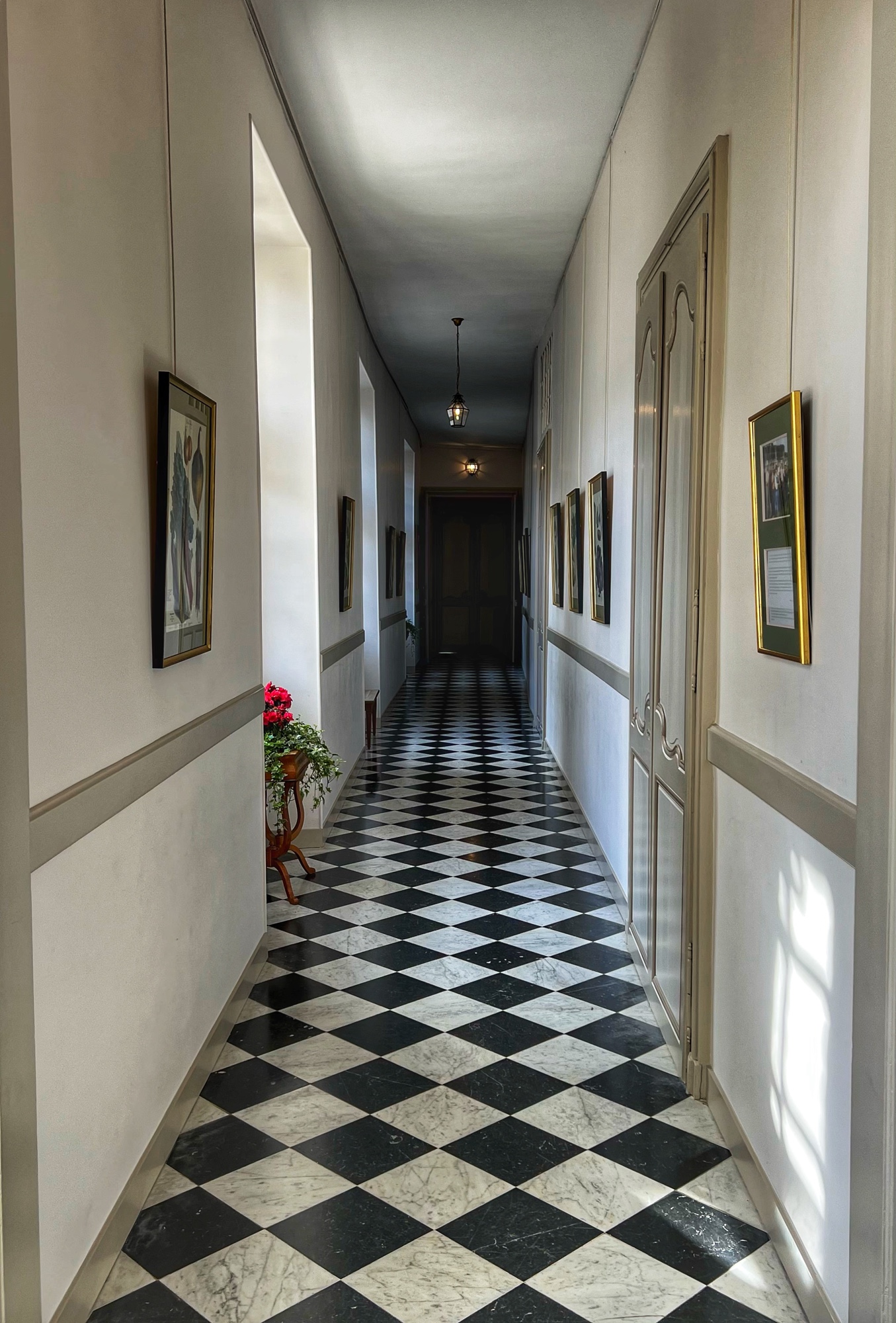 The chapel is lovely – but the real impressive sight is the gallery (below)! It was here that hand to hand combat happened during WWII and people escaped from one side of the river (occupied by Nazis) to the other (a free zone). That iconic checkerboard flooring though…