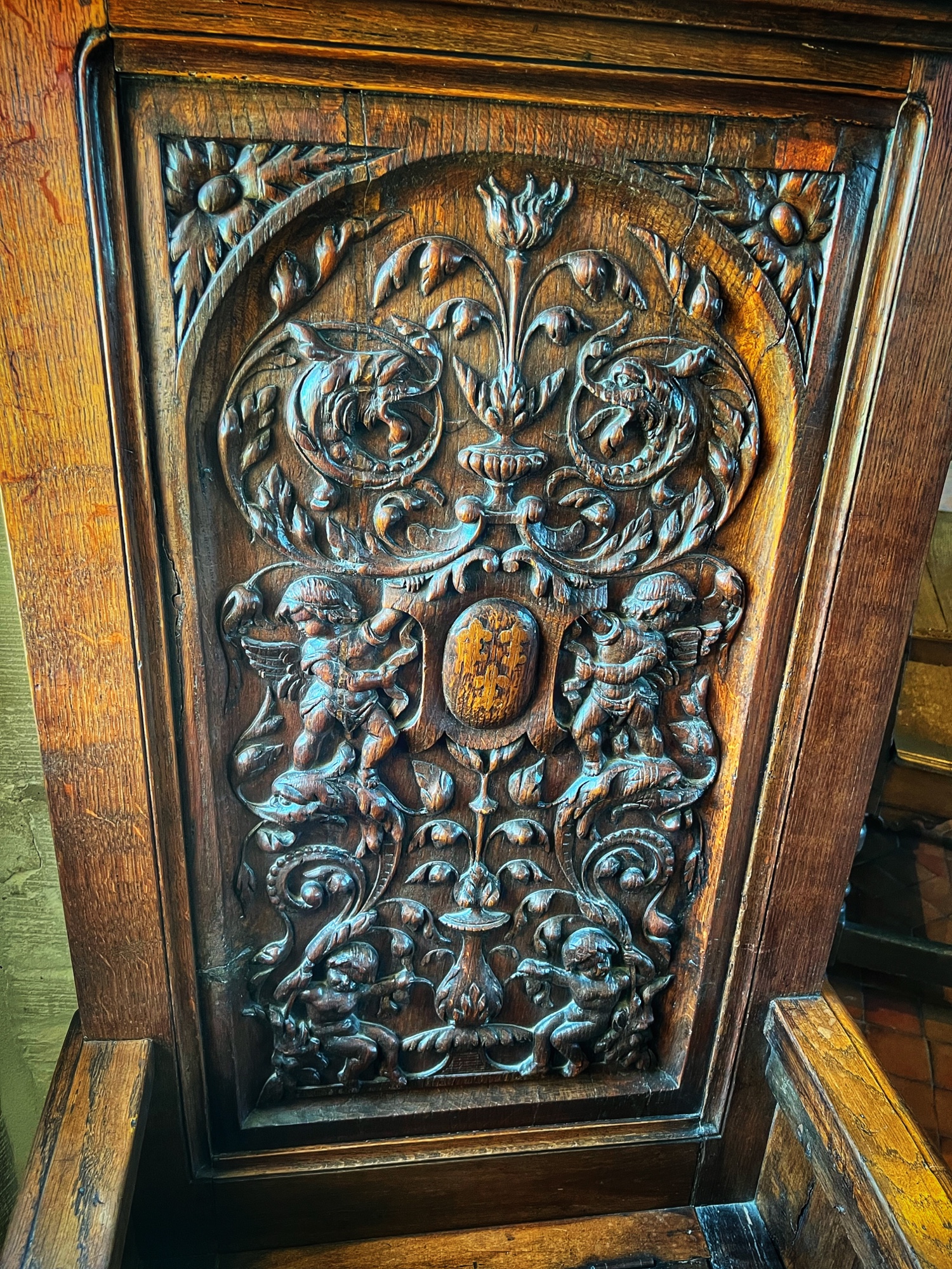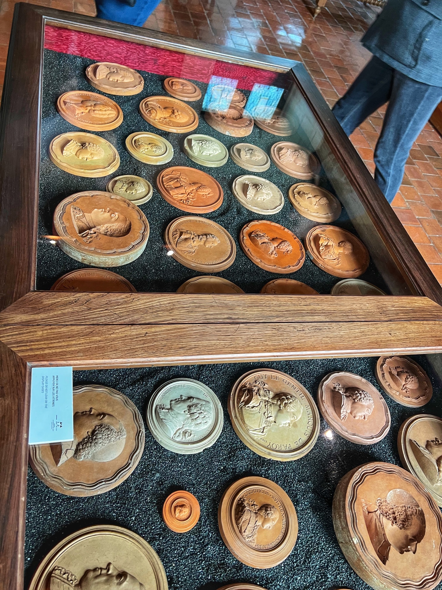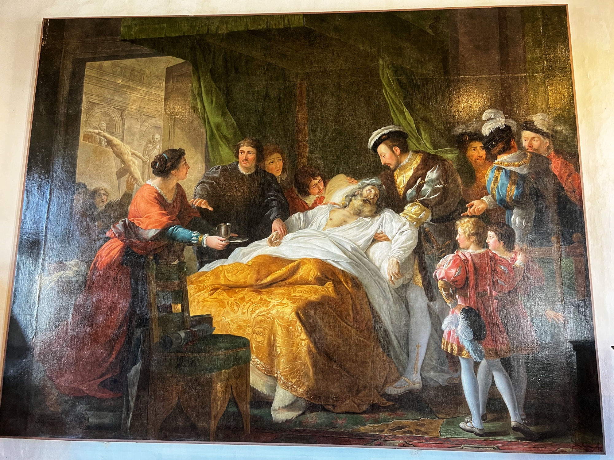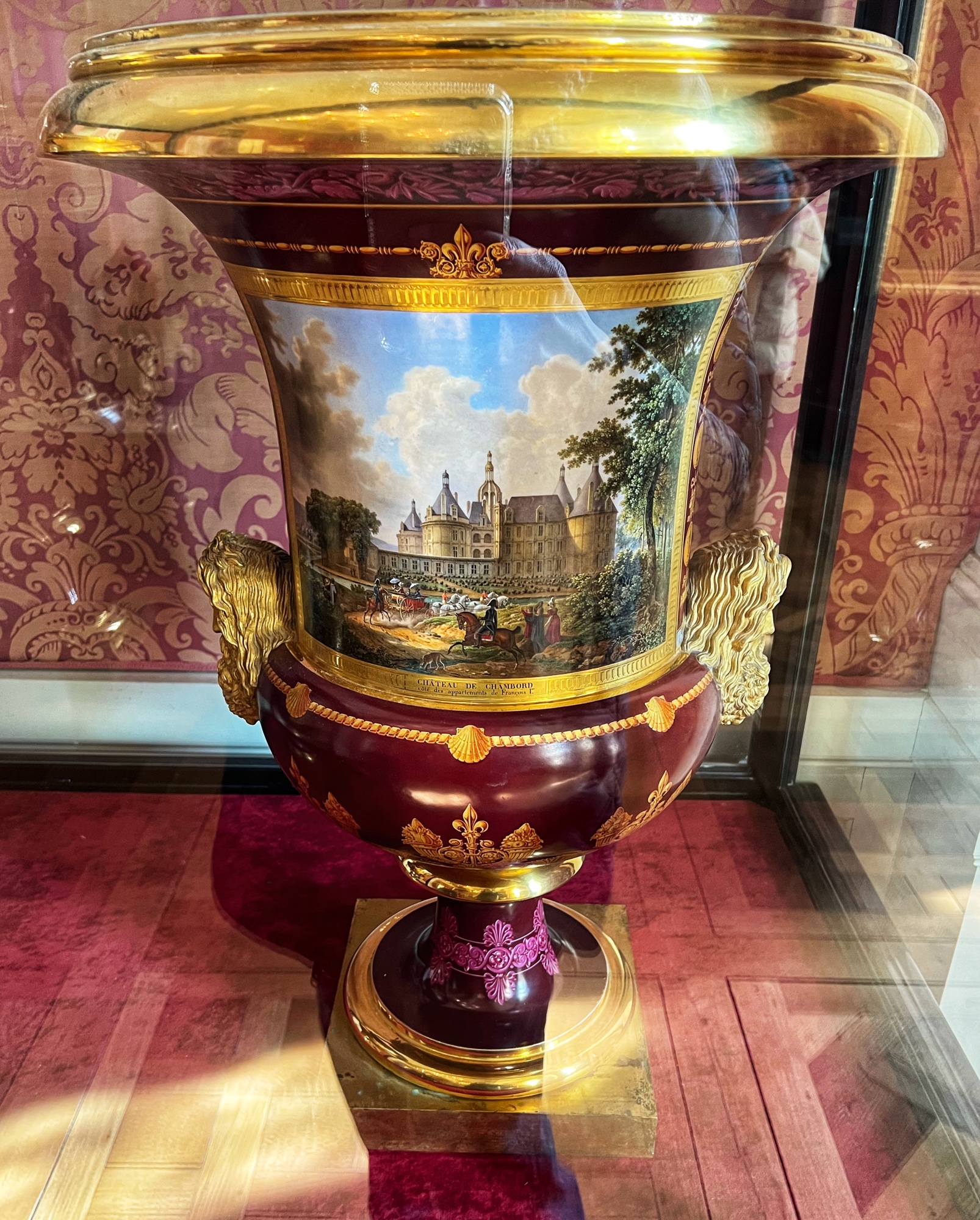 Above is a great view of the Histopad and how it shows a virtual trip through time. The furniture in these rooms were absolutely fabulous – with unbelievable wood carving details. And so colorful! The emblems of Louis XII (porcupine) and Francois 1st (salamander) are evident all through the palace. I loved the up close and personal art collection including busts of all the kings we were learning about, beautiful pottery, and countless paintings.