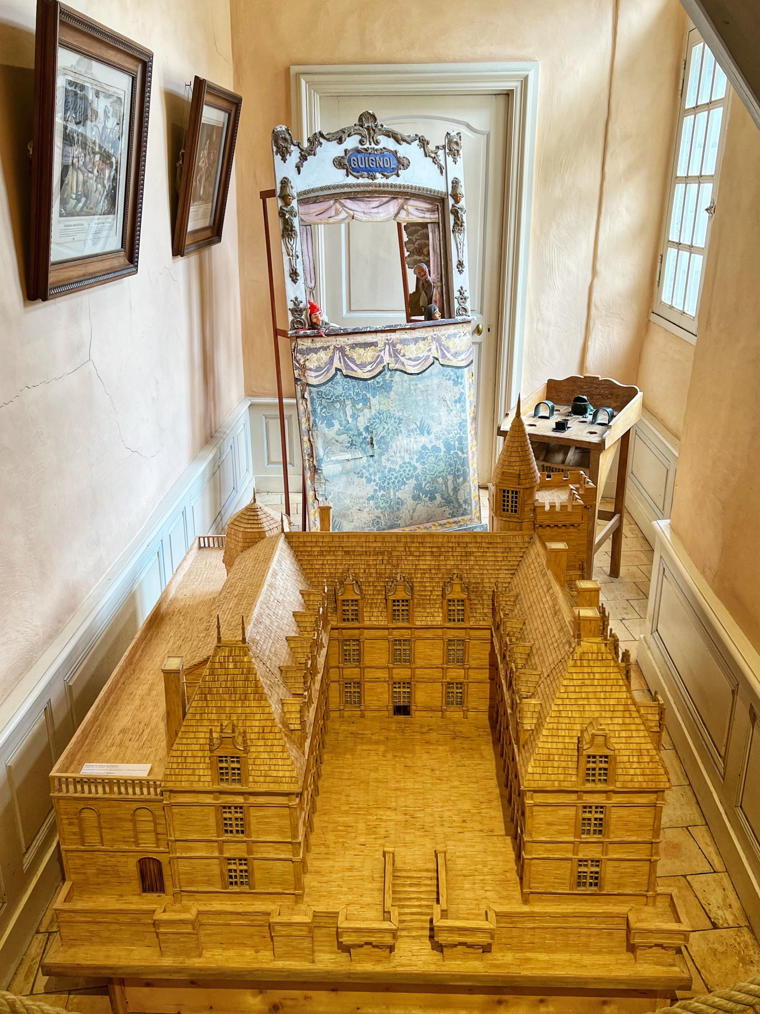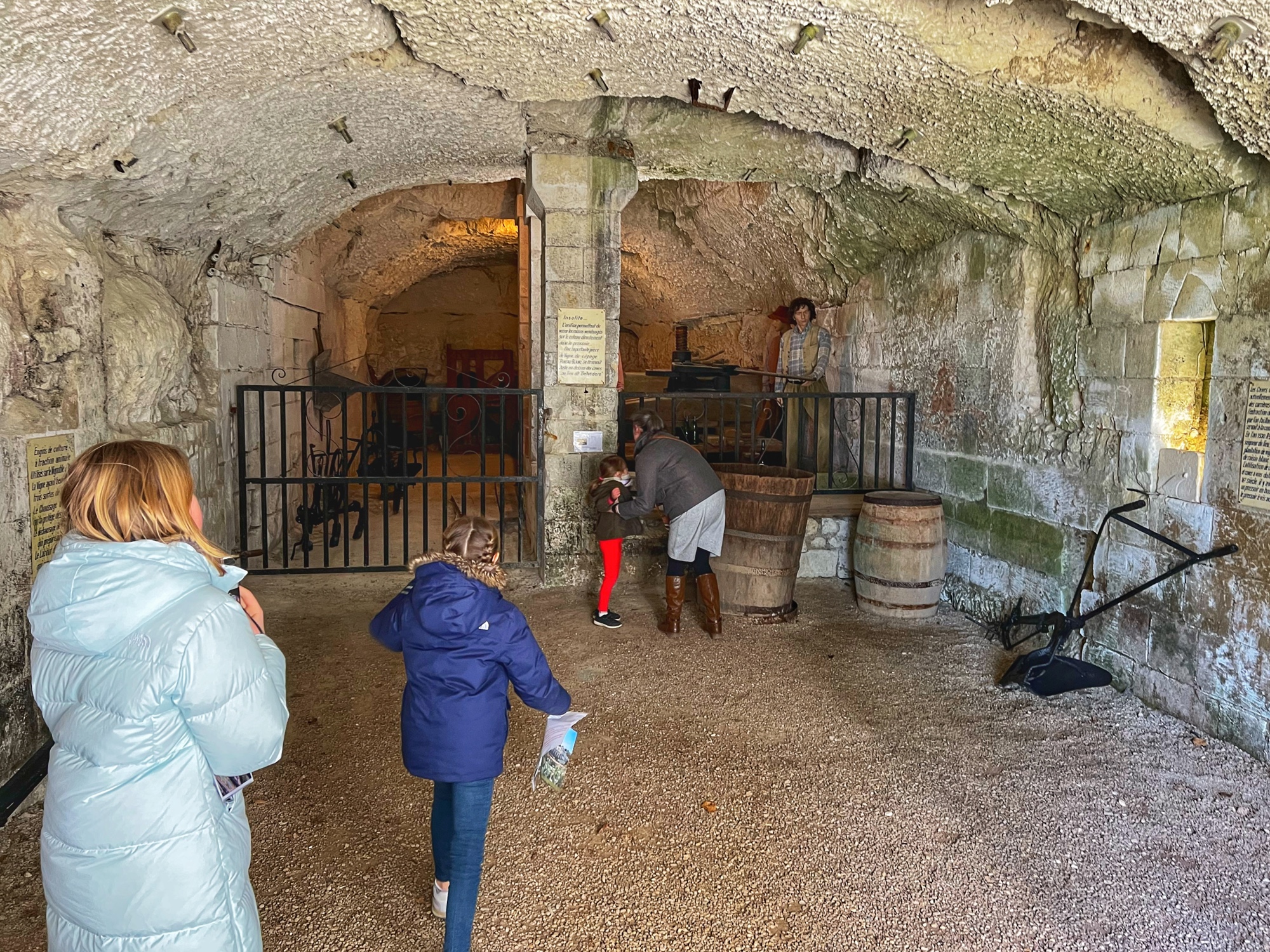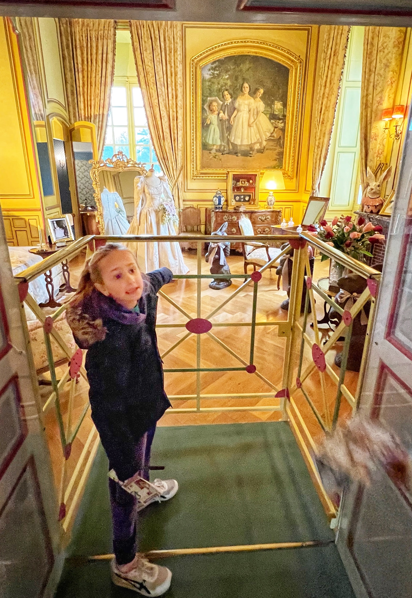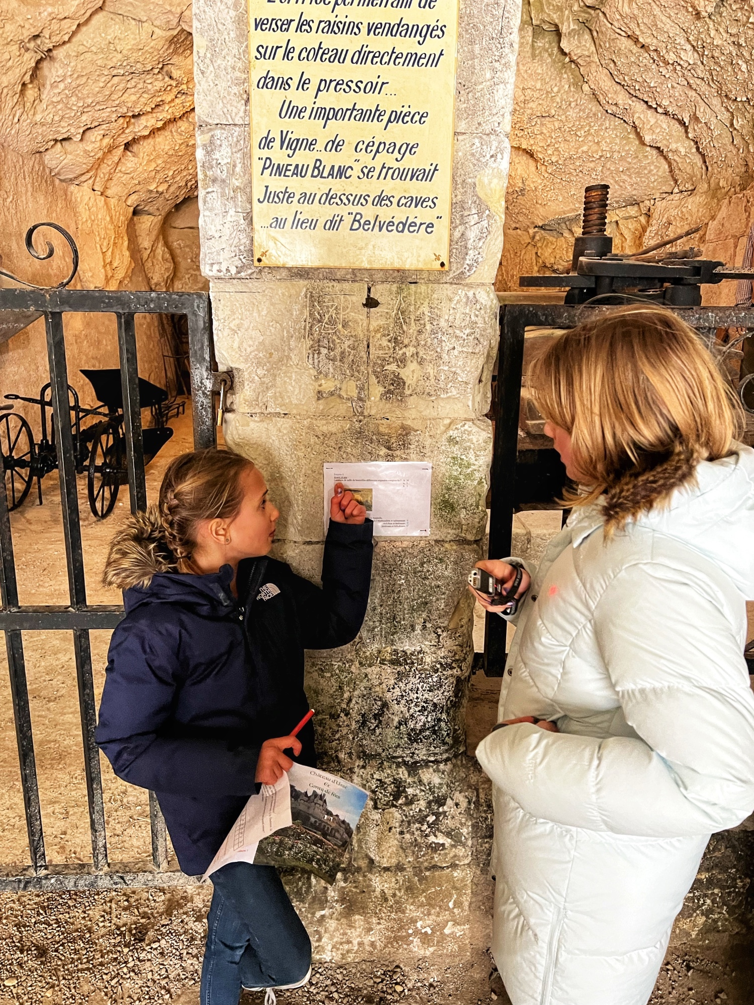 The tour will take you through the extensive rooms of the castle, then outside to a few notable spots (chapel, cave, prison, carriage house in the stables, and gardens). Most notable perhaps is the abundant use of mannequins to display period fashion. The girls said it creeped them out, but I thought it was fascinating to see the clothing of the time. Dresses, shoes, gloves, all meticulously crafted. Keep an eye out for tiny versions of things, as this castle was very kid friendly. Also, although the quiz booklet is in French, it was easy for us to decipher the clues and solve the puzzle. The girls loved finding clues and questions in each room!