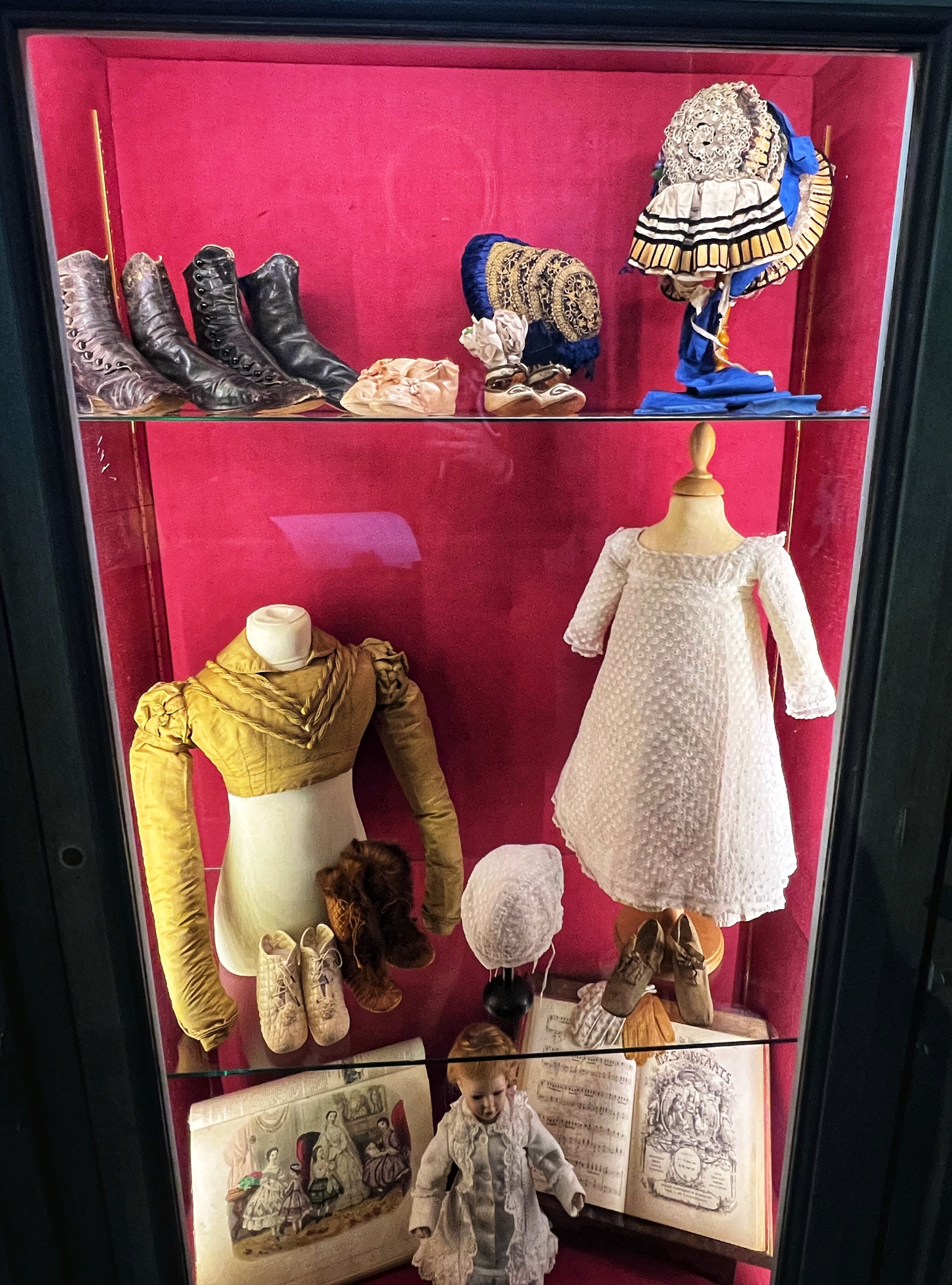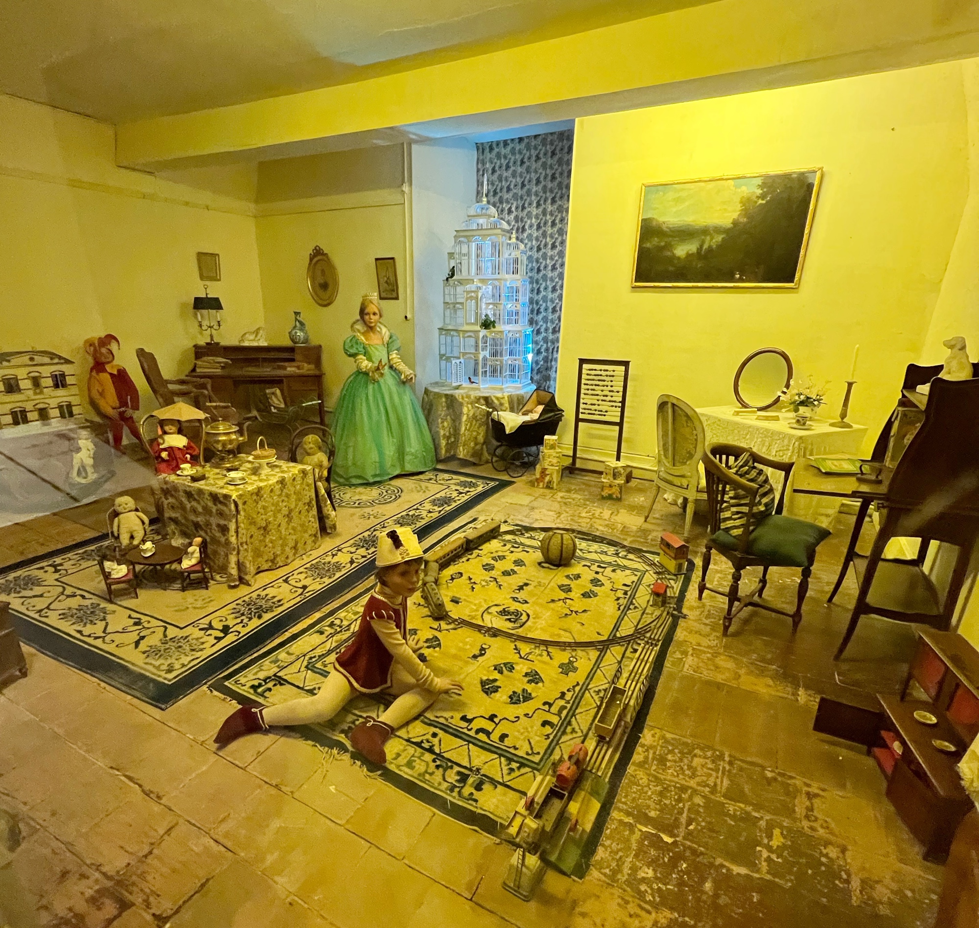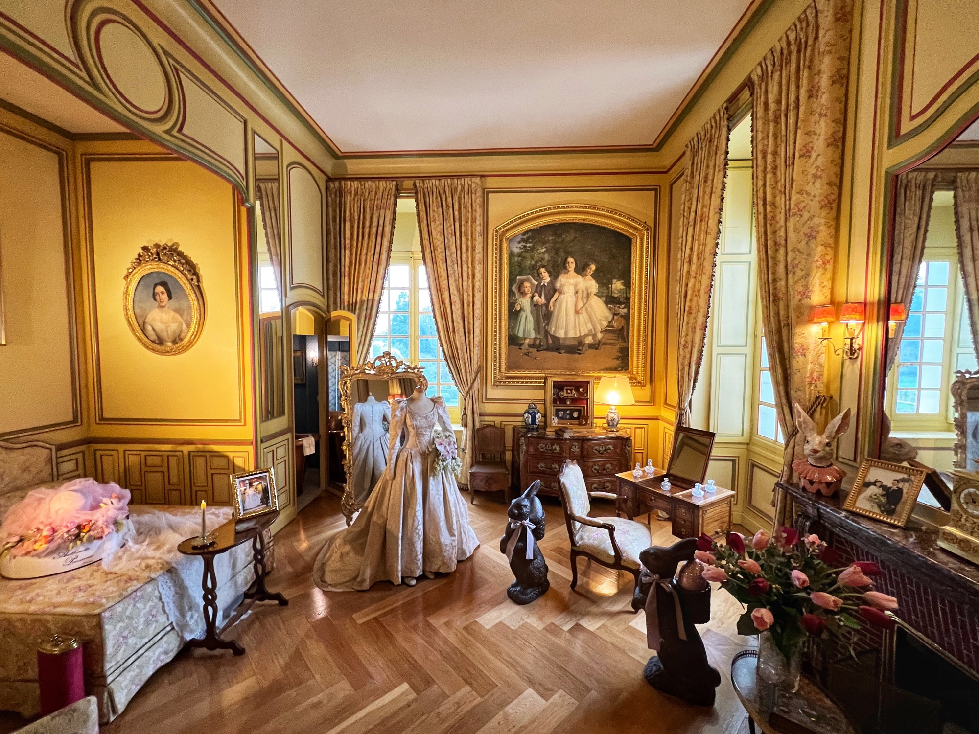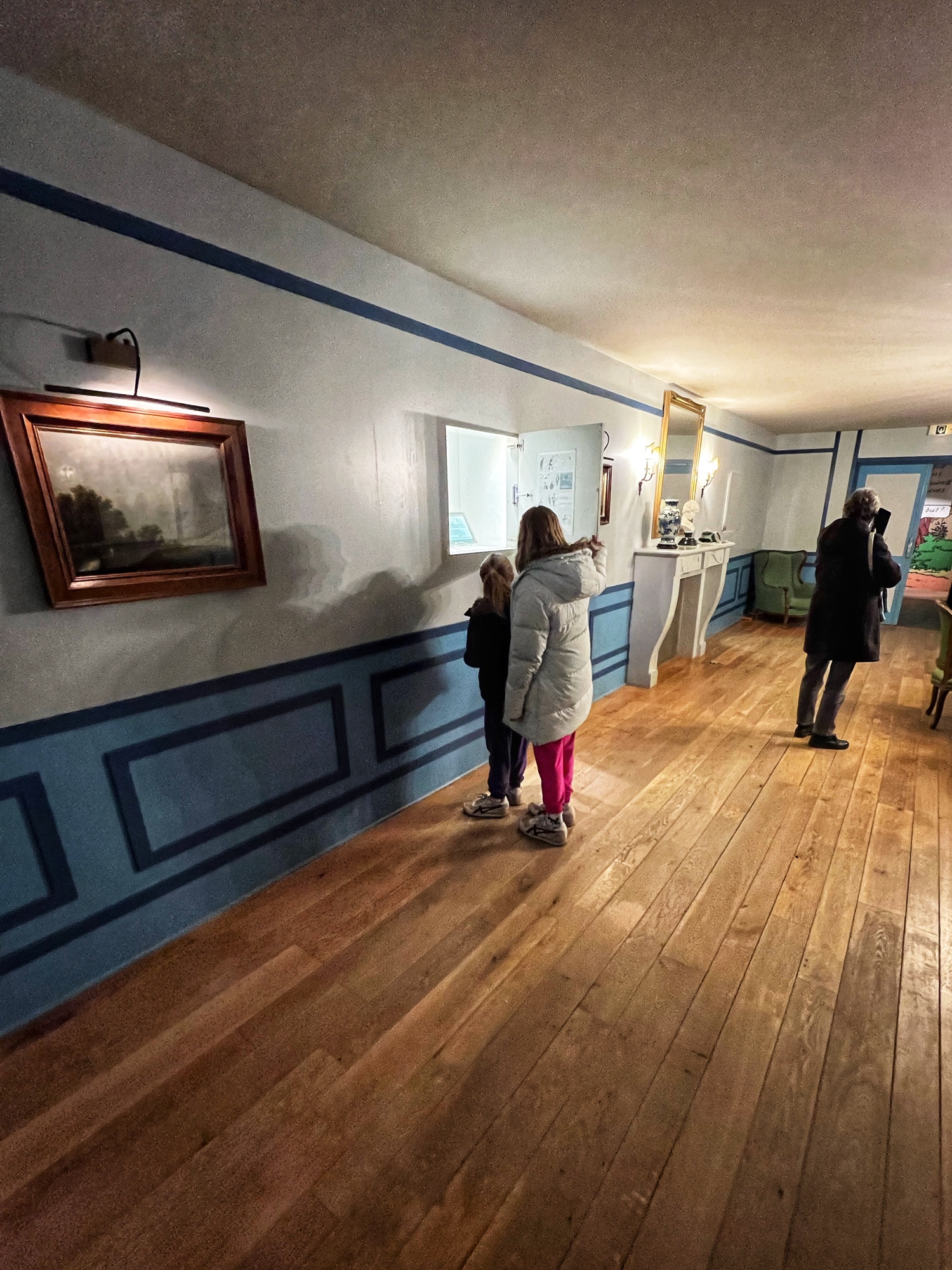 The tour will take you through the extensive rooms of the castle, then outside to a few notable spots (chapel, cave, prison, carriage house in the stables, and gardens). Most notable perhaps is the abundant use of mannequins to display period fashion. The girls said it creeped them out, but I thought it was fascinating to see the clothing of the time. Dresses, shoes, gloves, all meticulously crafted. Keep an eye out for tiny versions of things, as this castle was very kid friendly. Also, although the quiz booklet is in French, it was easy for us to decipher the clues and solve the puzzle. The girls loved finding clues and questions in each room!