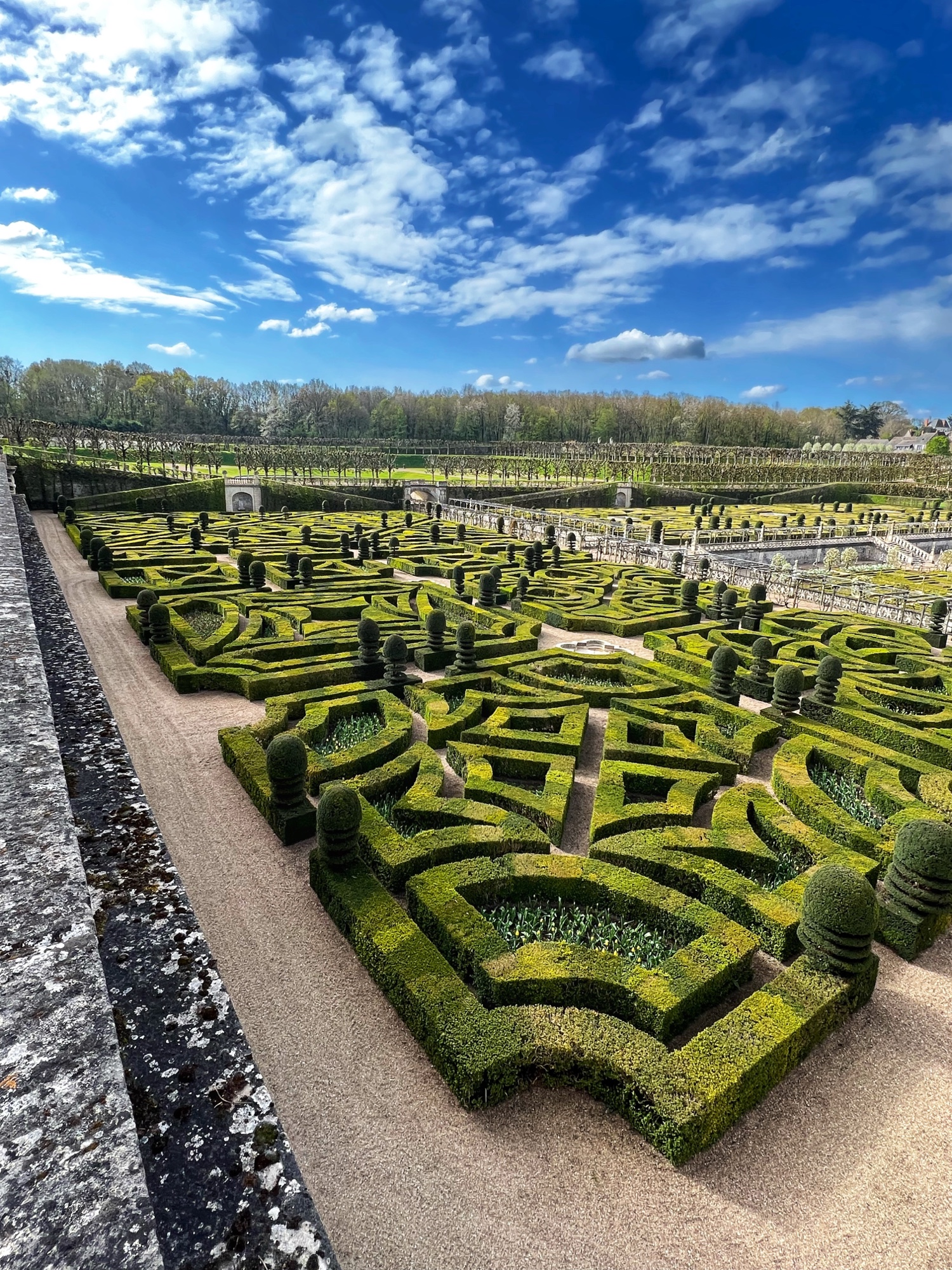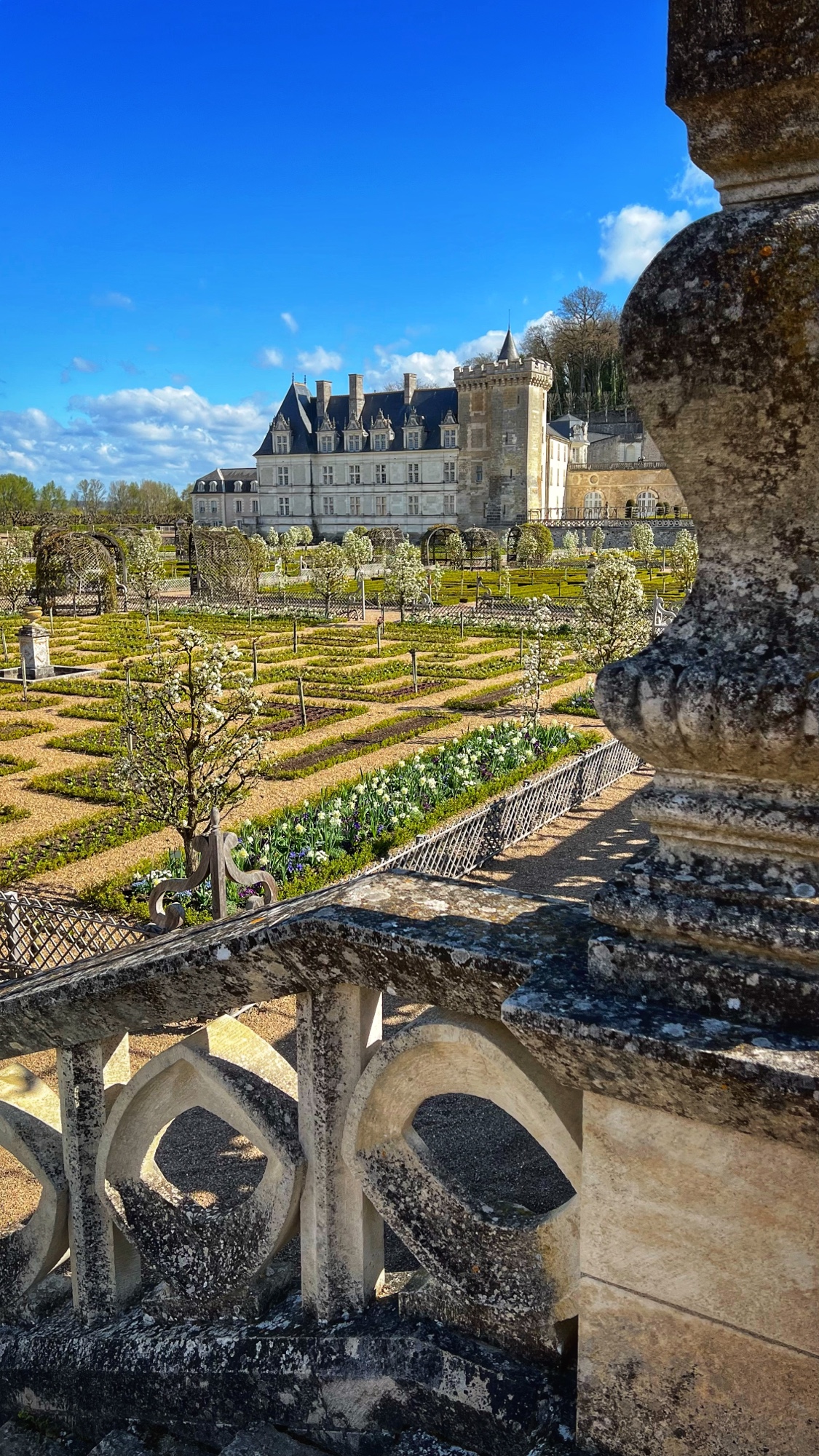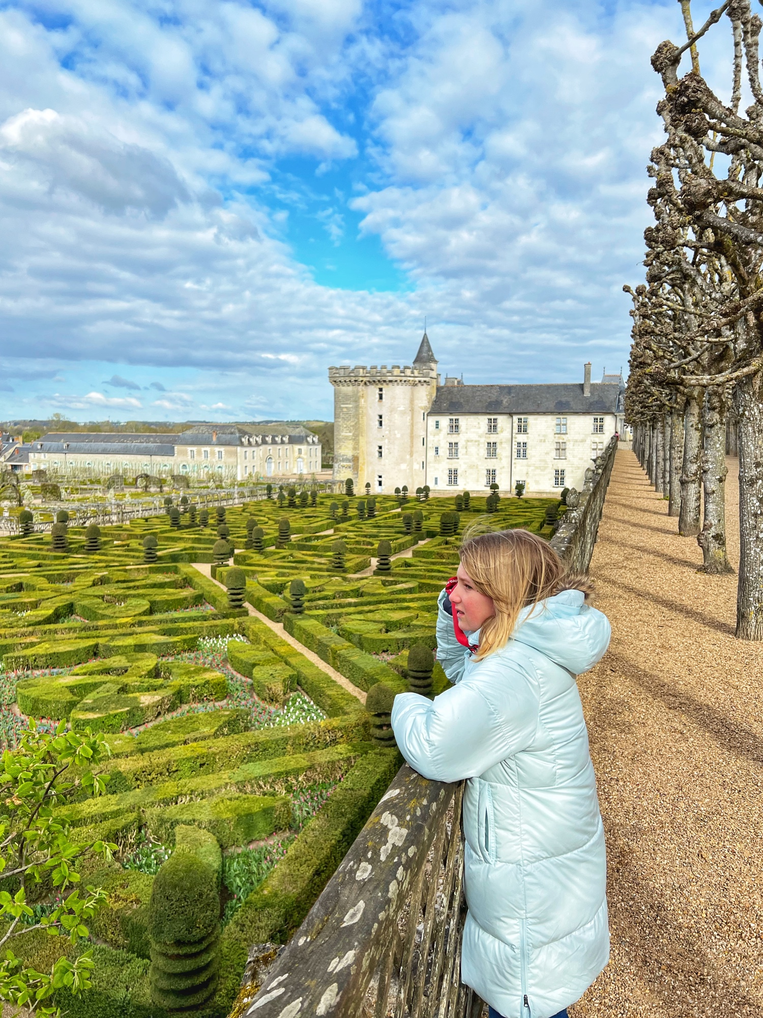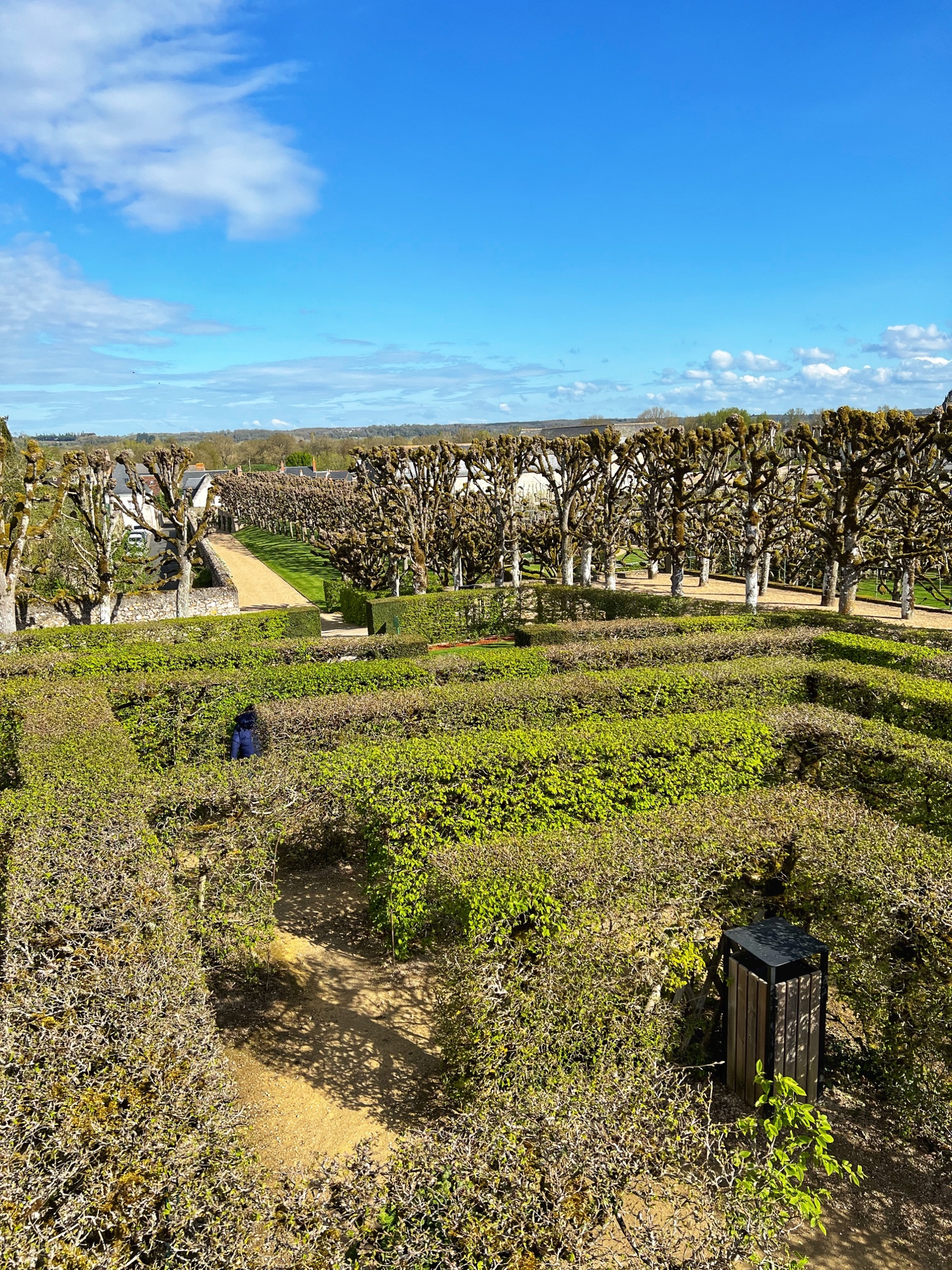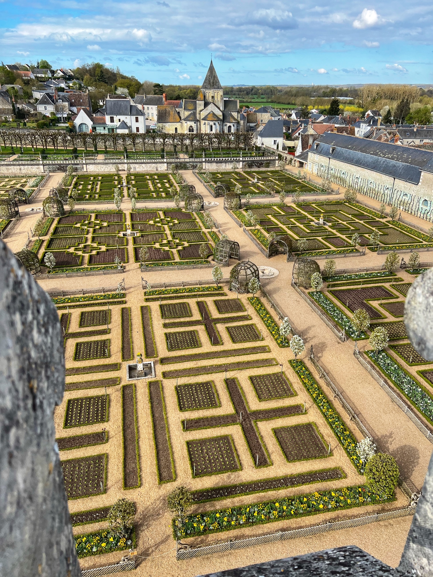 Villandry greeted us bright and early on our first day with free parking, and we noticed a little cafe area at the entrance for light fare. The staff was very friendly and helpful, and we were exploring with our audio guides and pamphlets (one for the château, one for the gardens) in no time. The priority here was to see the gardens of course, but another interesting feature was being able to stand outside on the rooftop of the keep. The views over the grounds were beautiful from there, and unique, as most castles don’t allow for this kind of rooftop view.