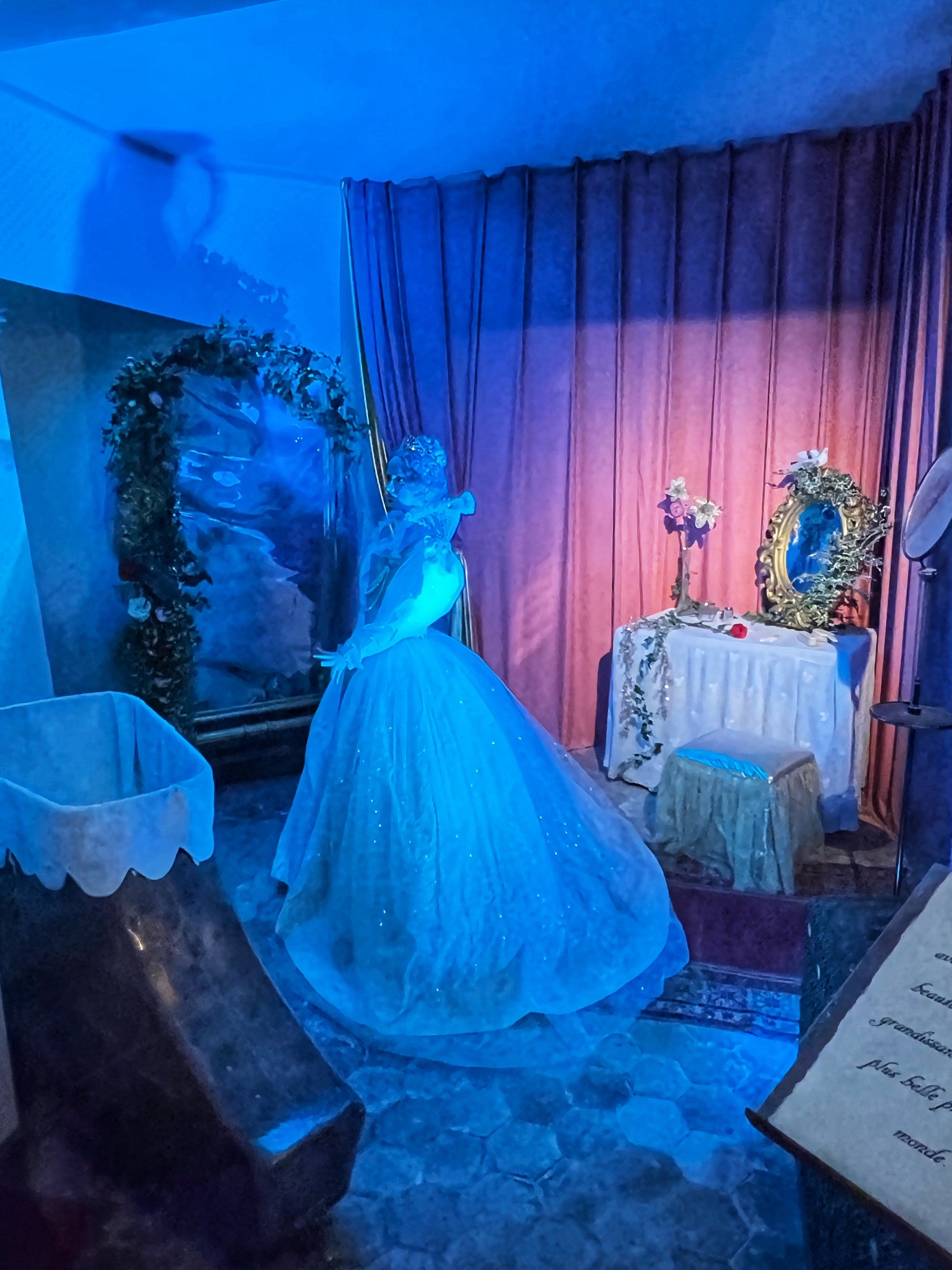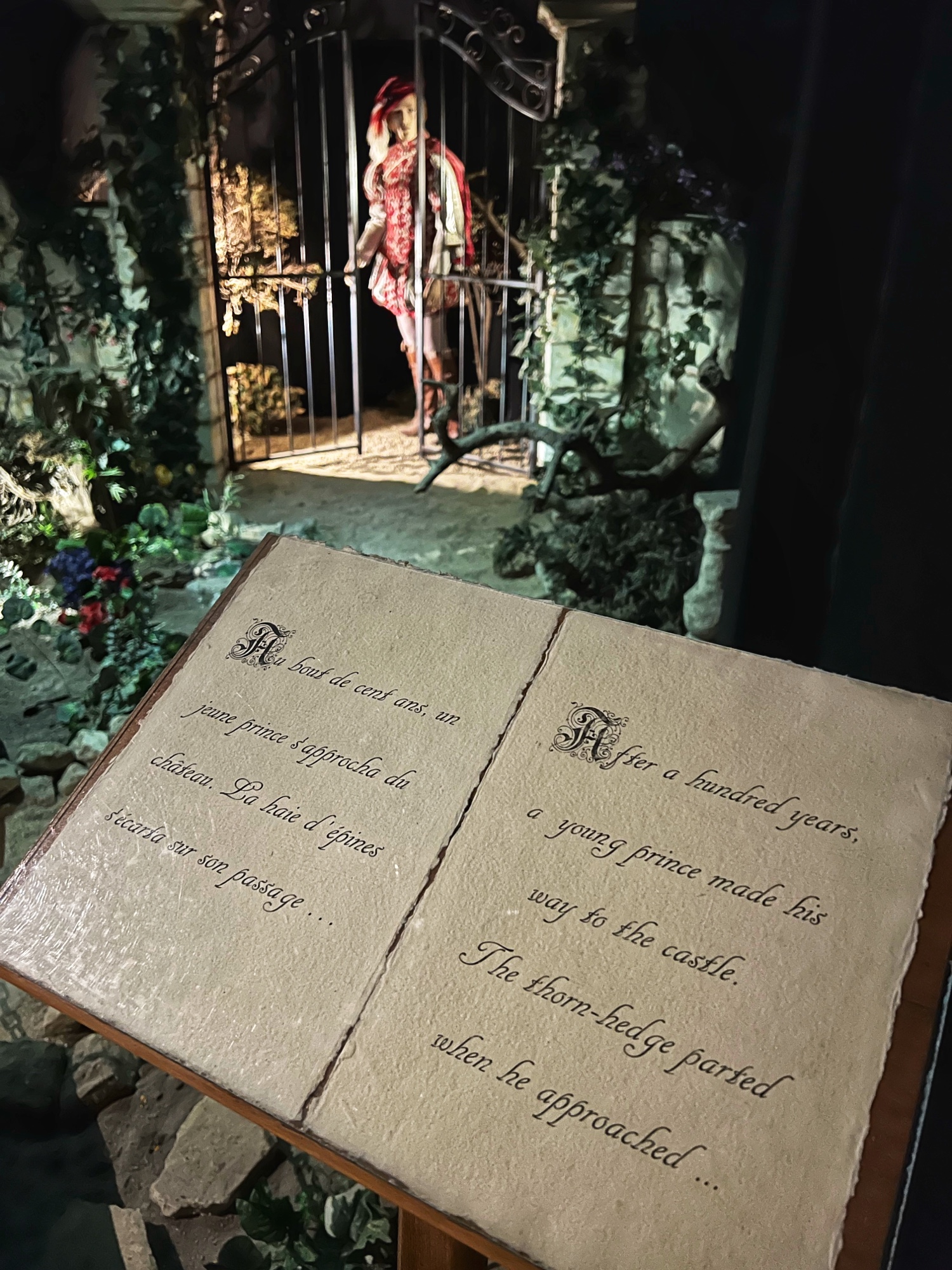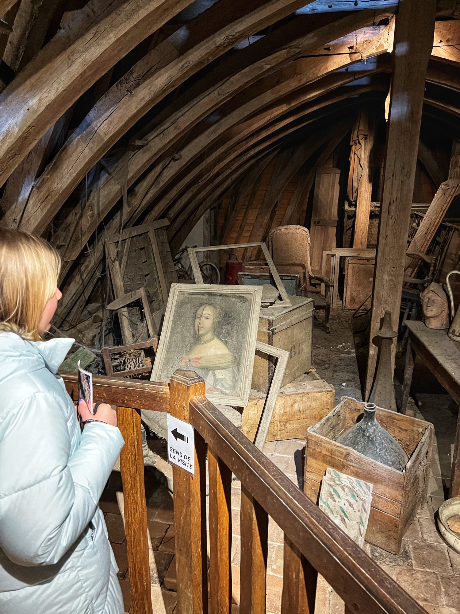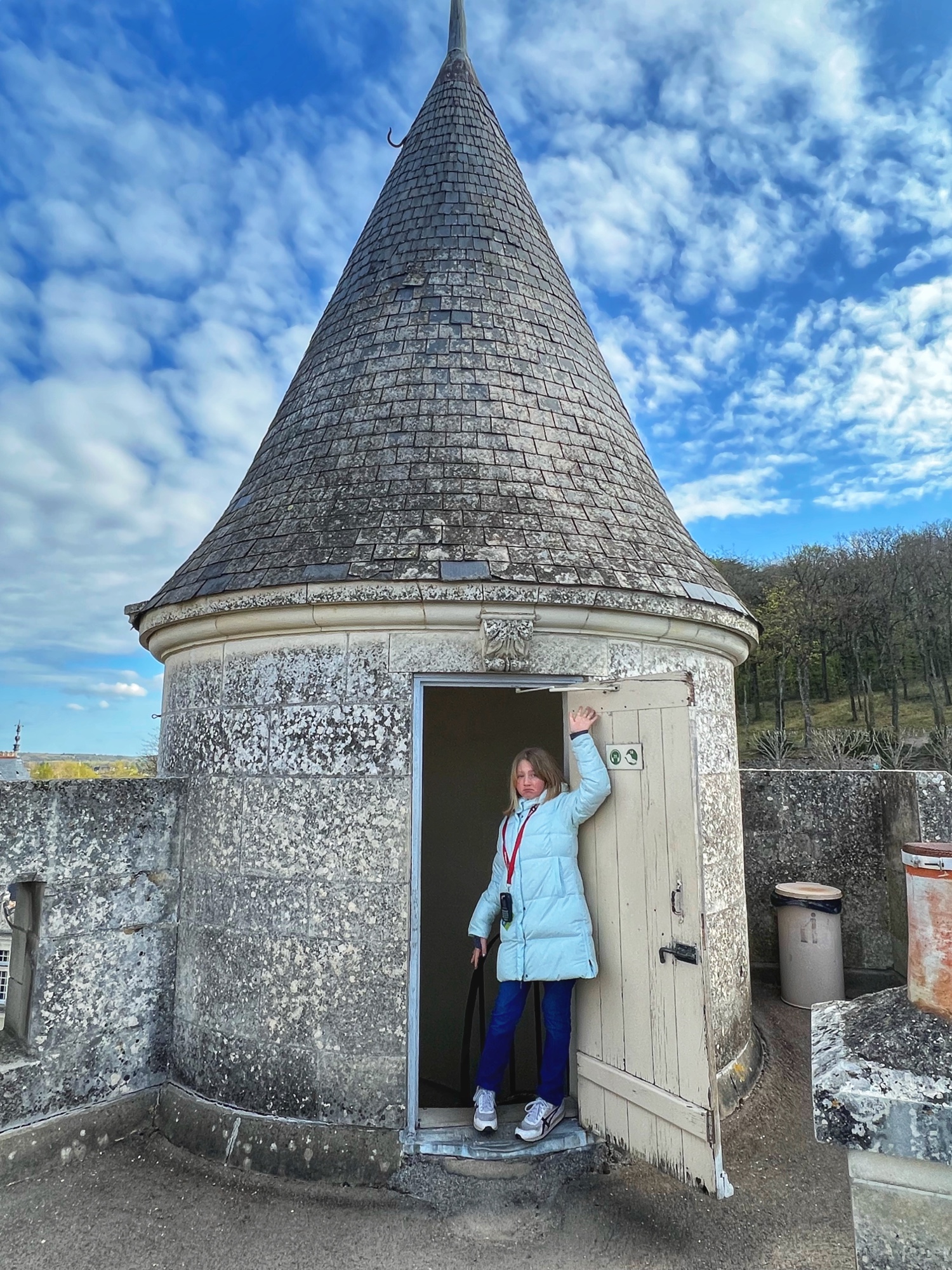 After viewing the various dining rooms, galleries, and fancy bedrooms, the tour will take you up into the towers and along the open air ramparts. Here you can peer into closed rooms, each one telling a portion of the story of Sleeping Beauty. I admit it’s a little bit kitschy (and by then I had had my fill of mannequins), but the girls thought it was cool and immediately wanted to re-watch Disney’s Sleeping Beauty. You also walk through the attic in this castle and it is NOT pristine like in Azay-le-Rideau. Instead it is a creepy, dusty old attic filled with broken memorabilia and cobwebs. It lent itself well to the fairytale story though, giving us the chills as we walked through!