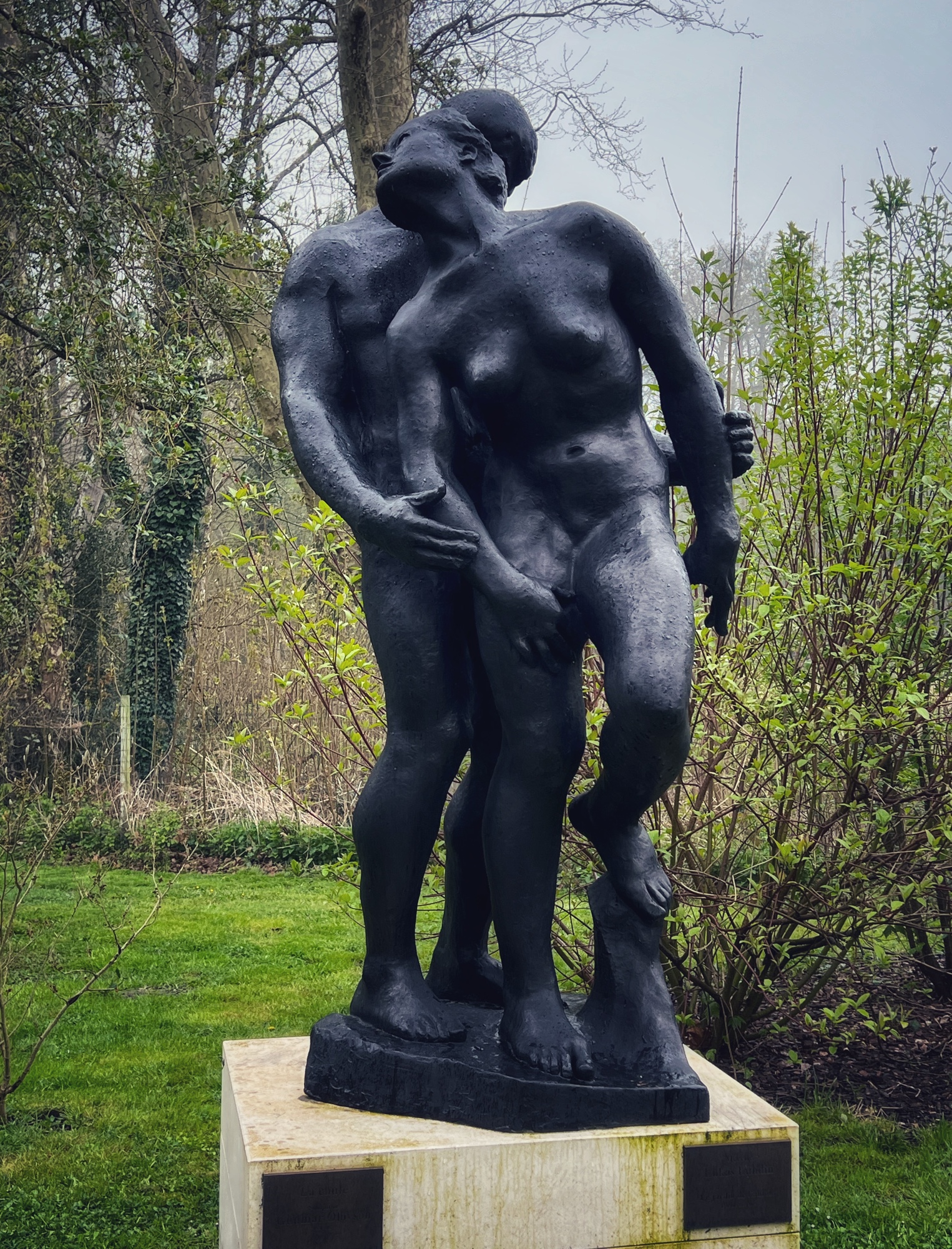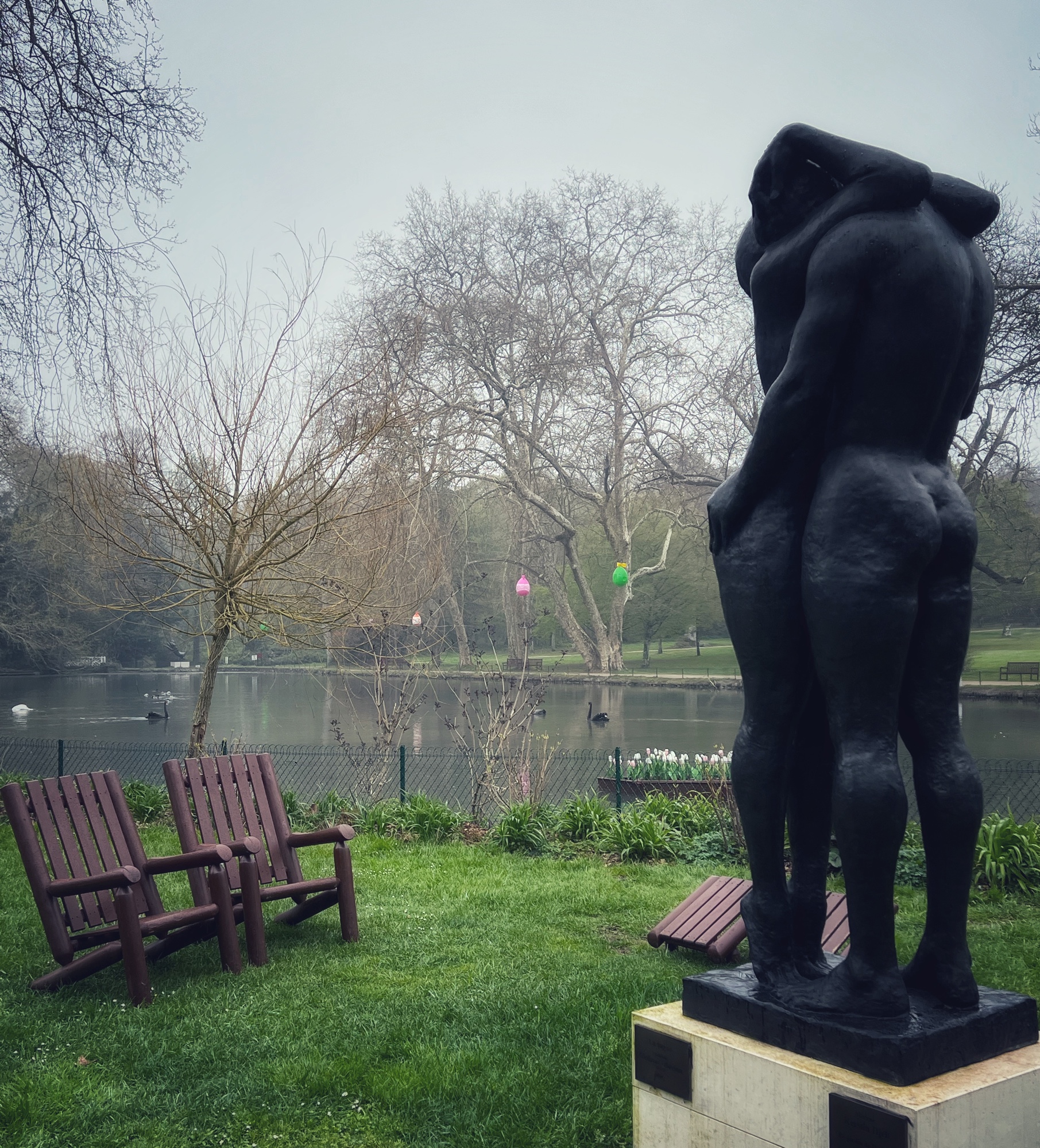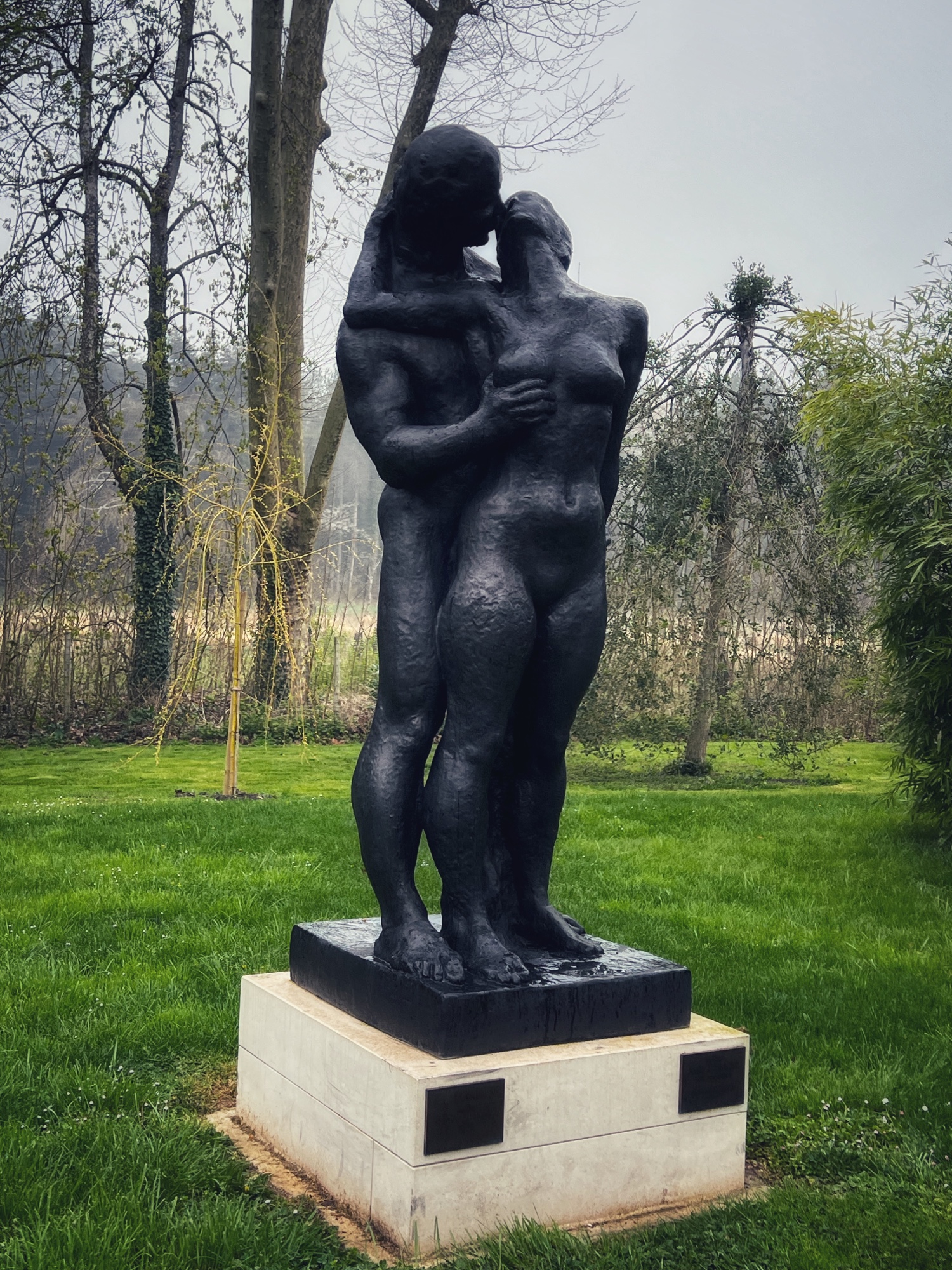 Next we moved along the gardens and “extraordinary trees” towards the Orangerie (not open when we went, but looks beautiful and is famous for its ice cream) and then the maze. I will admit I tried this labyrinth and didn’t have any luck! The girls eventually made it through and it helped warm them up to race and run through the very high hedges. Also here at Cheverny I saw my first black swans! Many castles and places in Europe have swans but I have never seen black ones…and they were nesting! So cool. Next to the pond and along the trails is an erotic “love garden” with various statues of lovers.