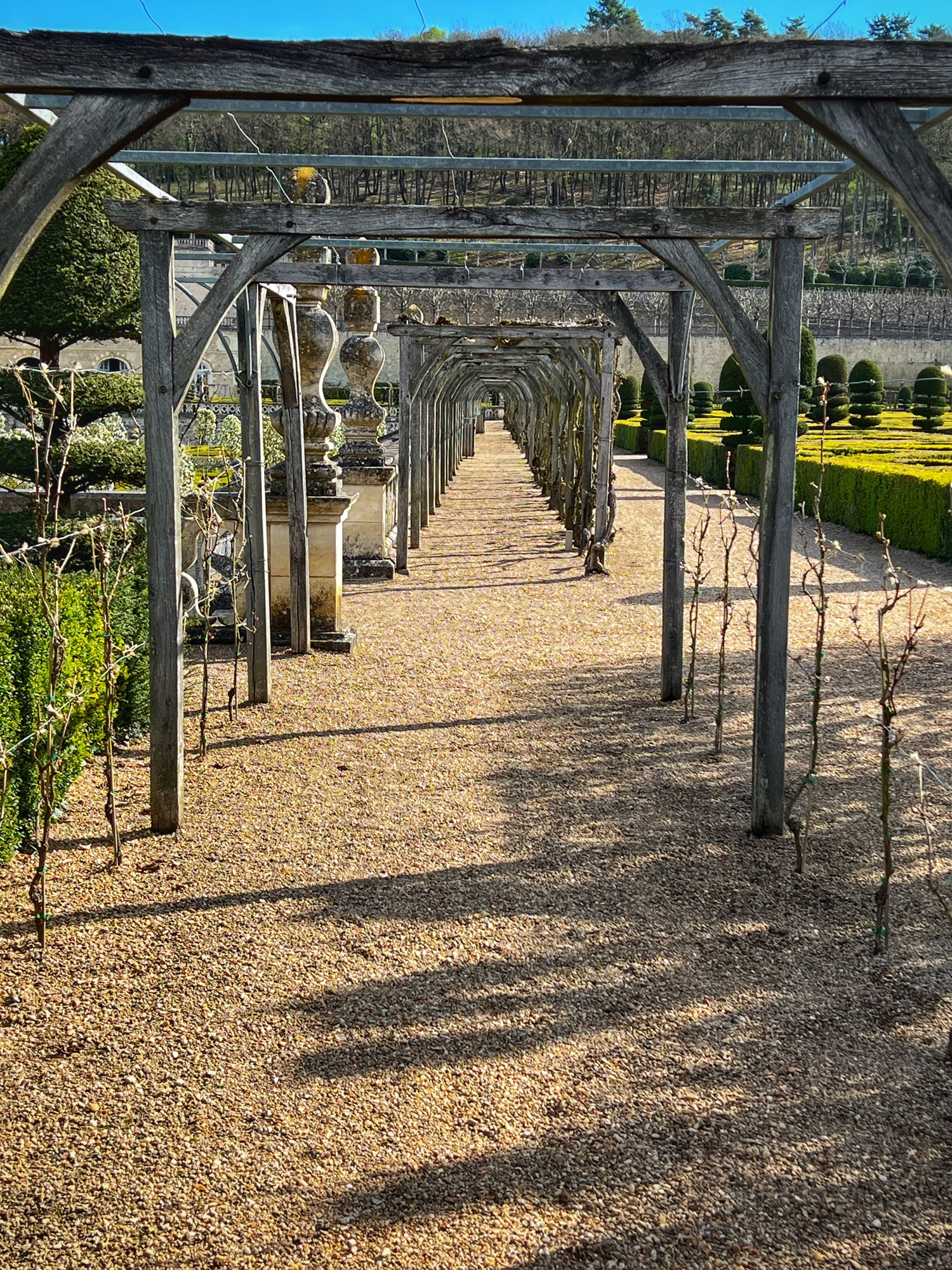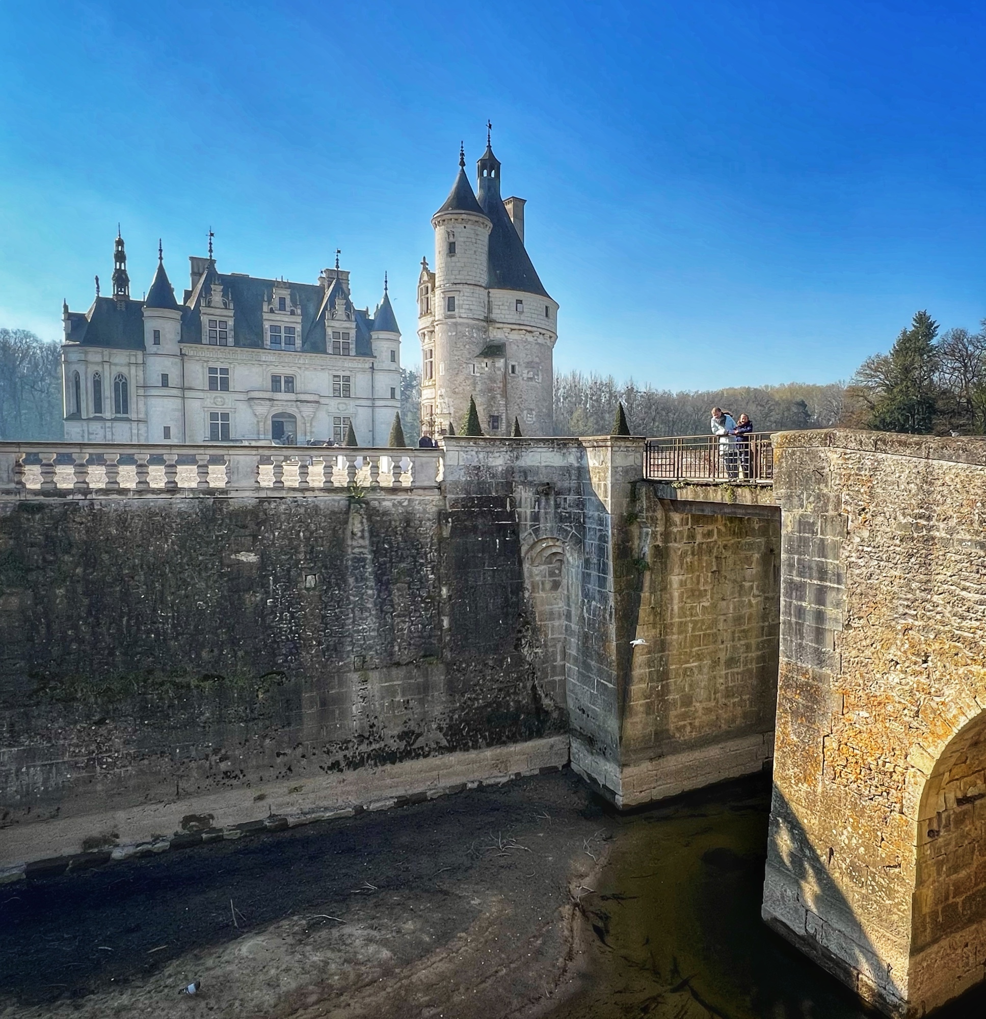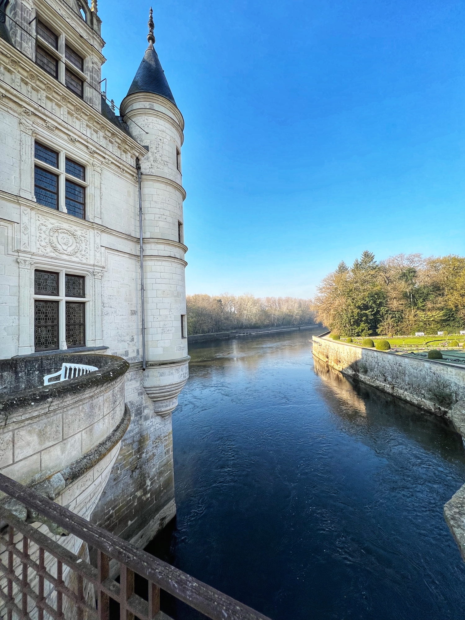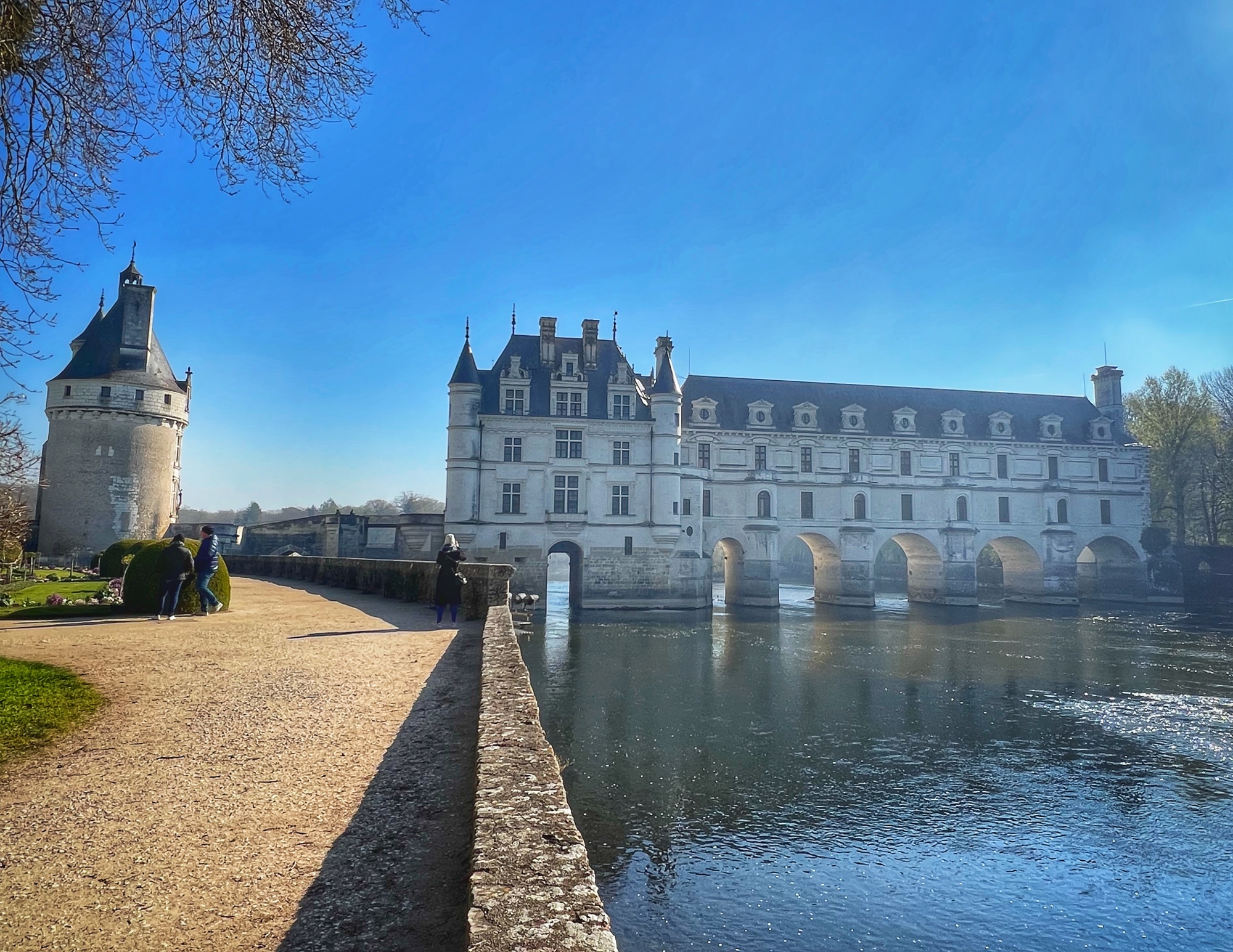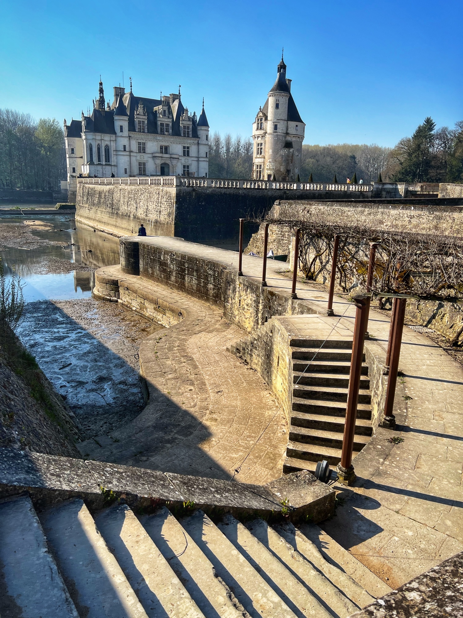 Outside we loved wandering the gardens – one for Diane (the mistress) and one for Catherine (the queen). We noticed the wisteria here are going to be blooming soon and will be absolutely glorious. We love wisteria! It was neat to see where boats would have come and docked at various places around the castle from the river.